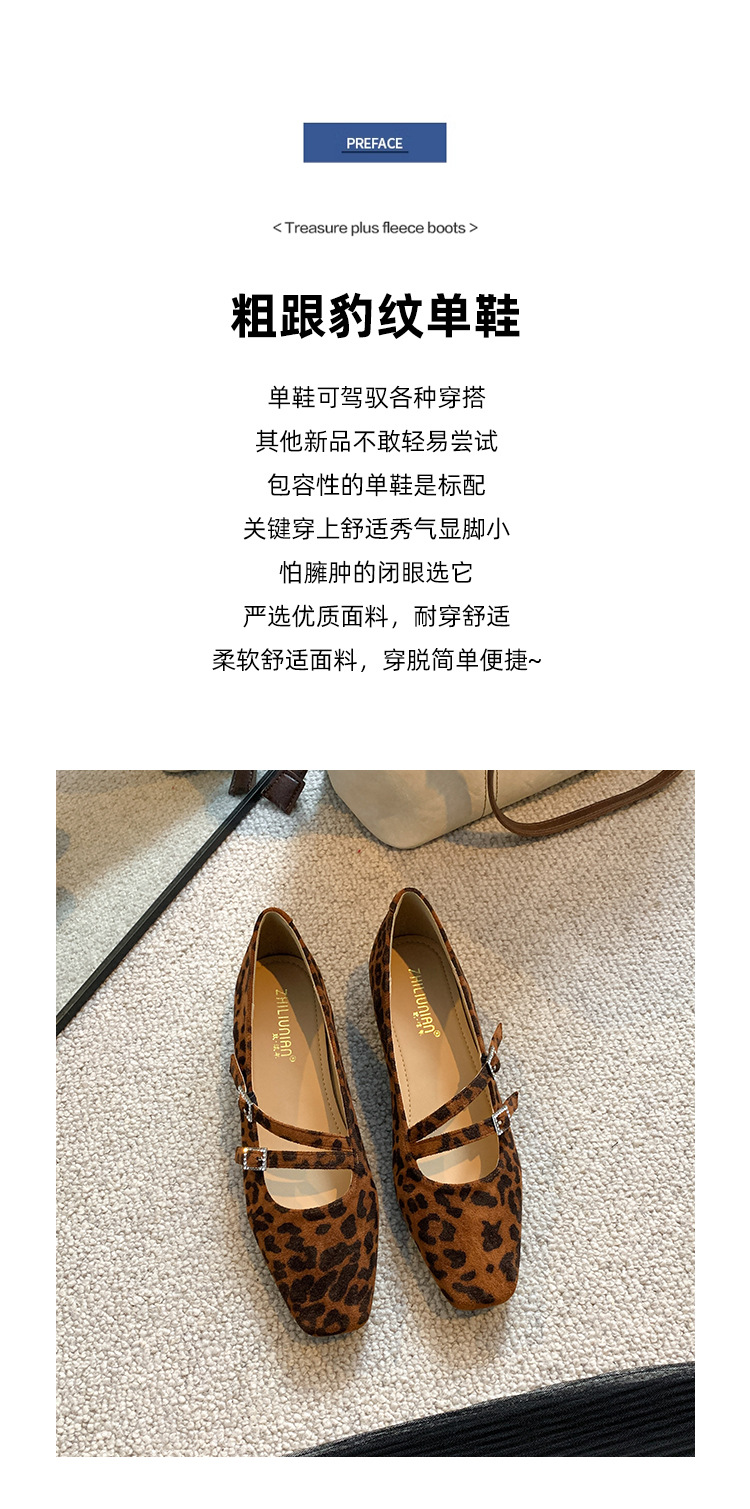 222-1 봄 뉴 2025 레오파드 무늬 한국식 로우 힐 샤로우 입 조커 스퀘어 발가락 싱글 신발 메리 제인 플러스 사이즈 여성 신발스토어 가기