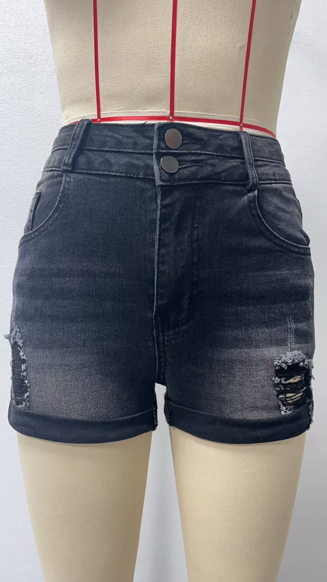 2025 유럽과 미국 여성 의류 새로운 스타일 Amazon 여성 하이 엔드 찢어진 3 점 바지 여성용 하이 웨이스트 스트레이트 청바지스토어 가기