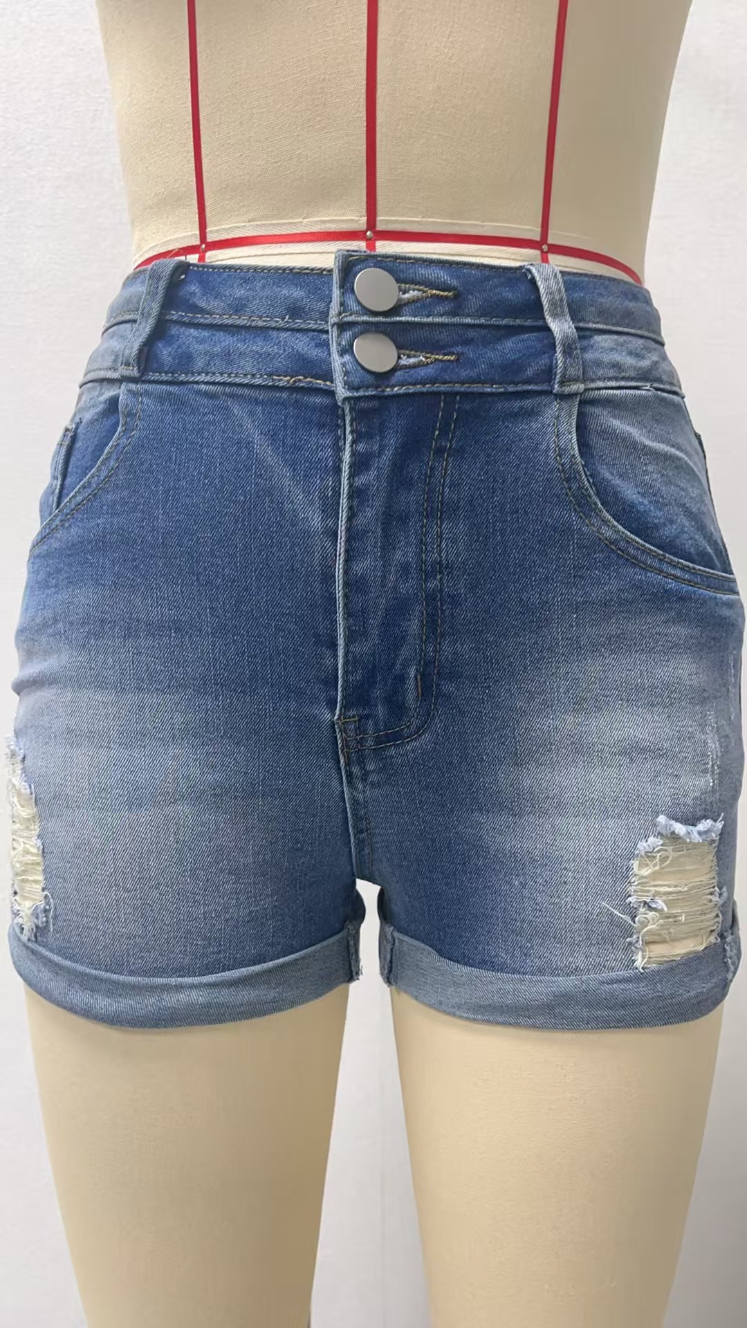 2025 유럽과 미국 여성 의류 새로운 스타일 Amazon 여성 하이 엔드 찢어진 3 점 바지 여성용 하이 웨이스트 스트레이트 청바지