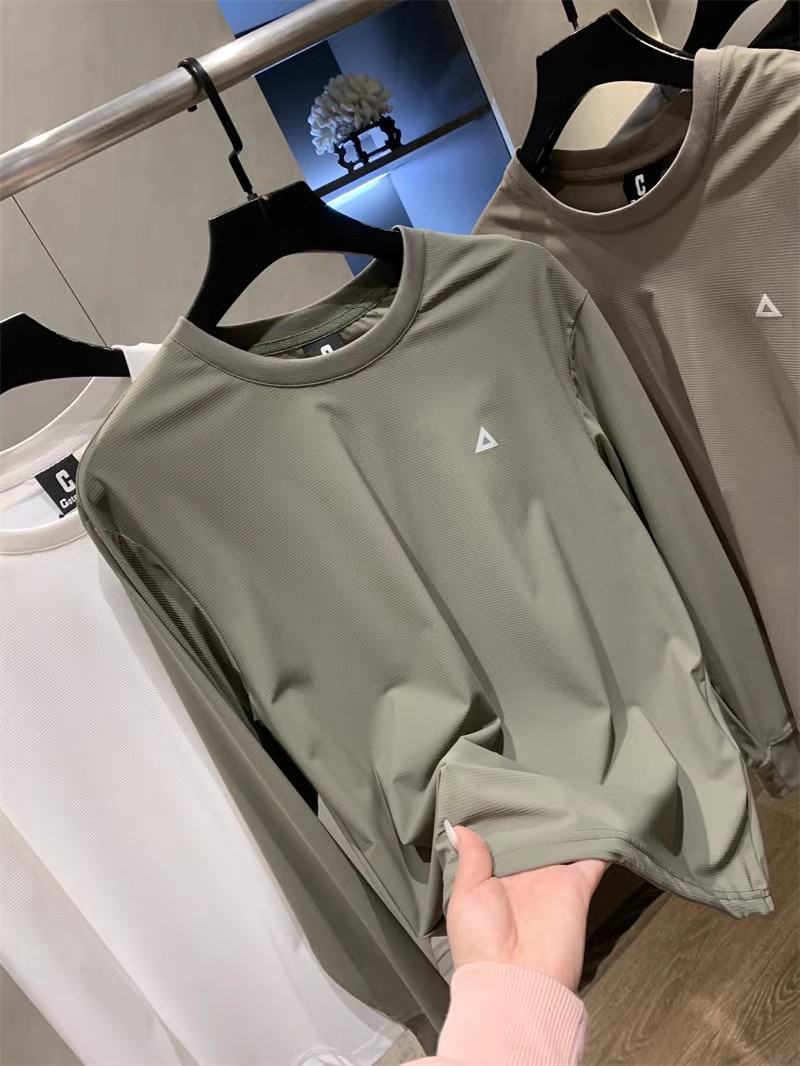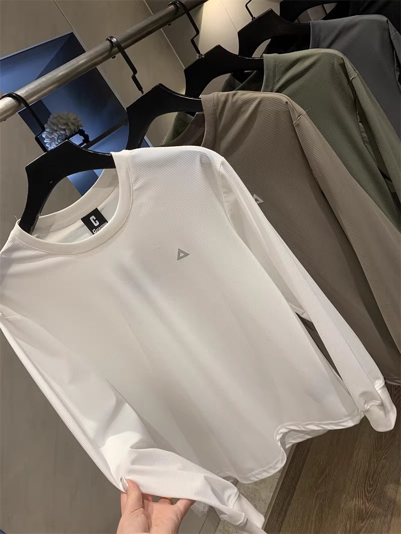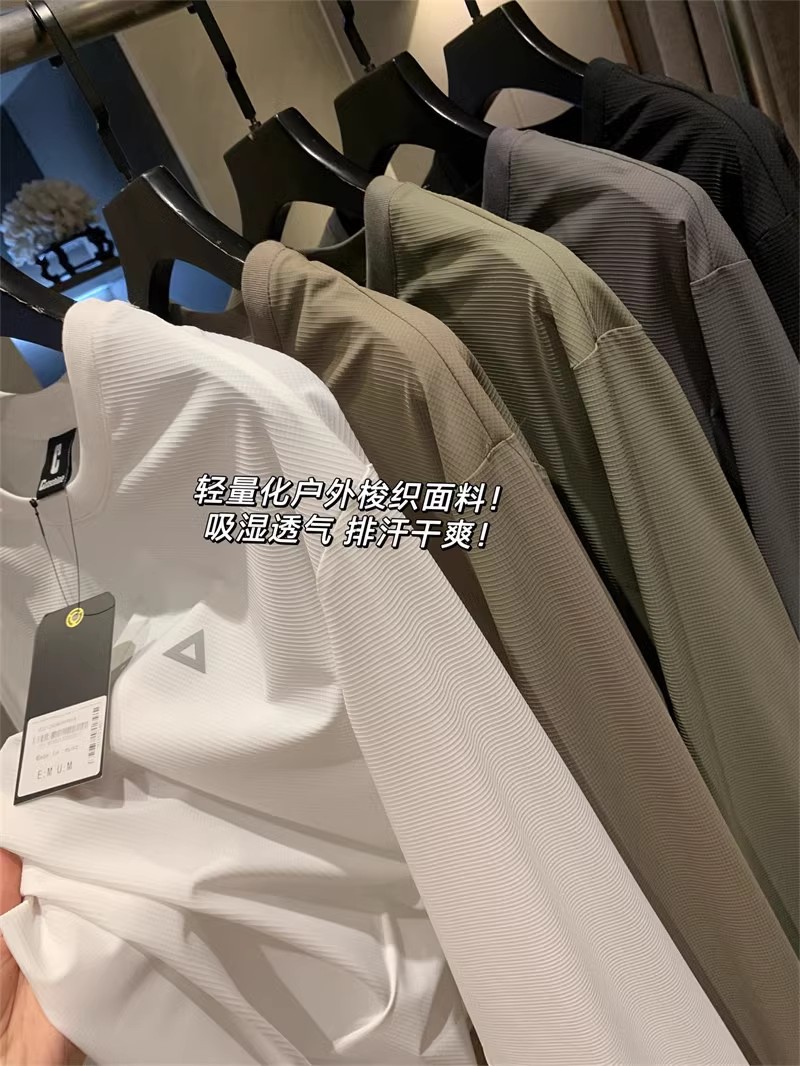 이탈리아로 수출! 야외 산 4 면 탄성 빠른 건조 통기성 스포츠 격자 무늬 방수 긴팔 티셔츠베이스 셔츠스토어 가기
