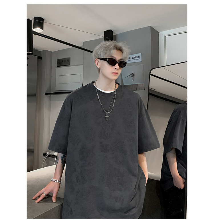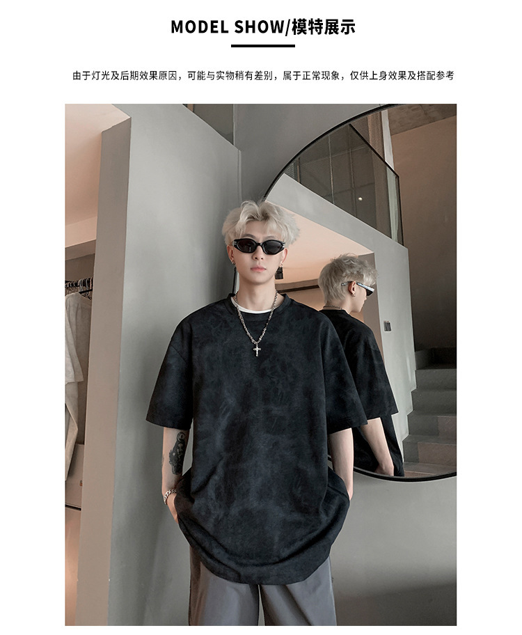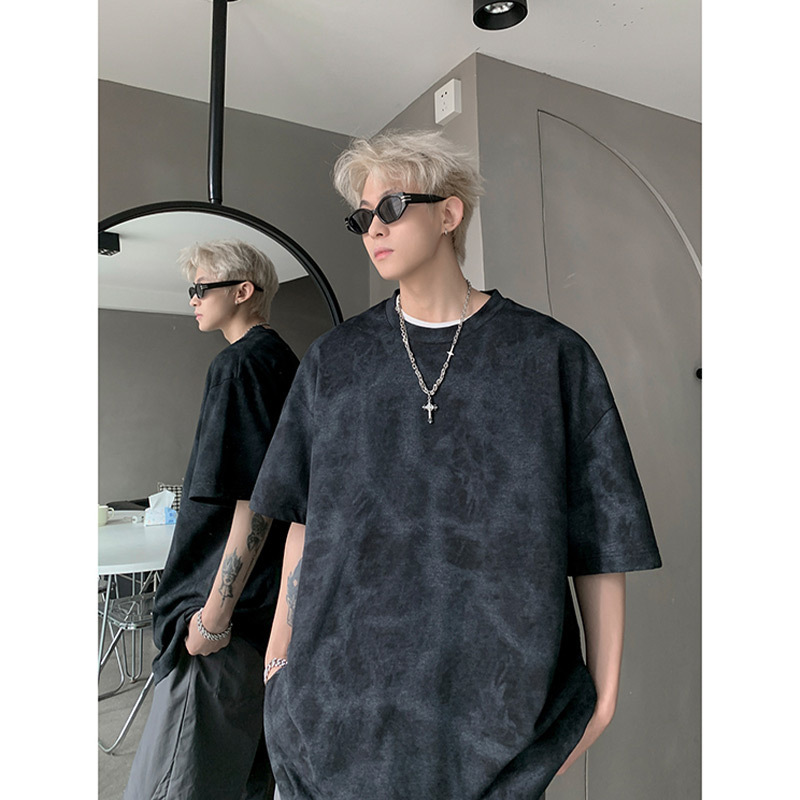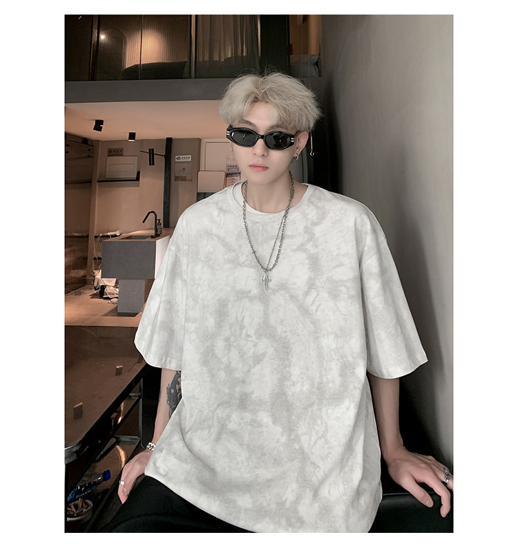 넥타이-염료 모조 코튼 티셔츠 남성용 반소매 여름 얇은 아메리칸 스타일 레트로 반소매 화이트 트렌디 브랜드 라운드 넥 루즈 티셔츠