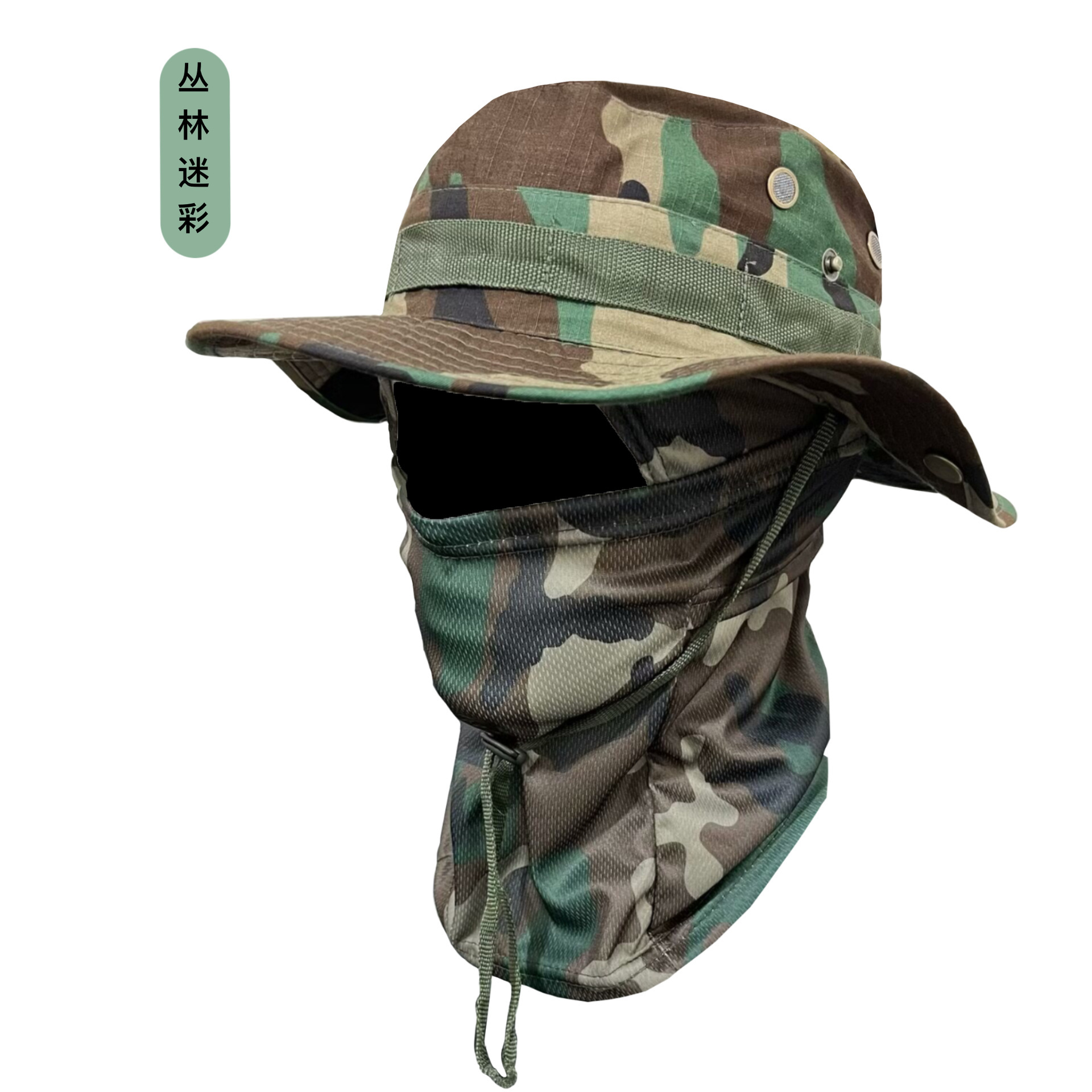 둥근 가장자리 모자 머리 세트 역 위장 야외 등산 캠핑 낚시 선 스크린 어부 모자 풀 페이스 스테이션 마스크