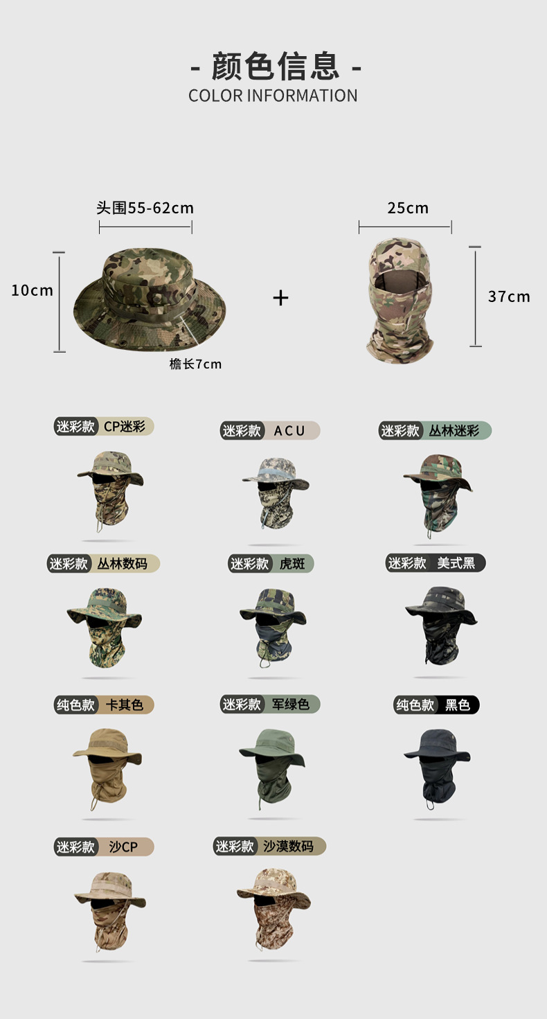 둥근 가장자리 모자 머리 세트 역 위장 야외 등산 캠핑 낚시 선 스크린 어부 모자 풀 페이스 스테이션 마스크스토어 가기