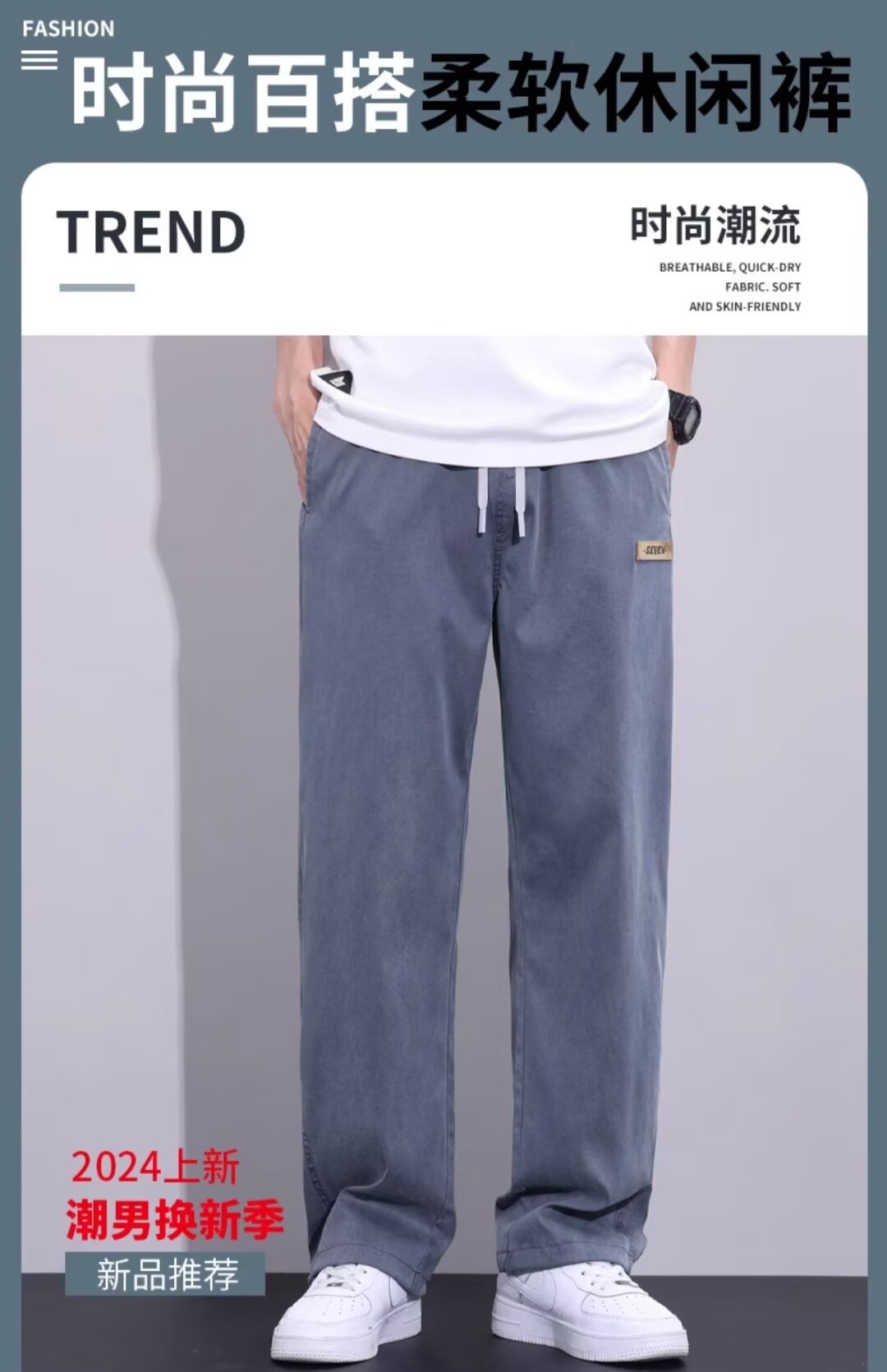 2024 새로운 도착 느슨한 캐주얼 바지 남자 한국 스타일 유행 올 매치 바지 여름 얇은 펜던트 넓은 다리 바지