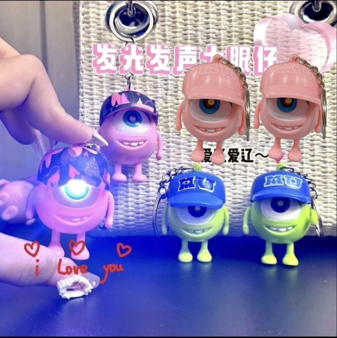 새로운 고백 큰 눈 키 체인 빛나는 소리 말하기 iloveyou 만화 크리 에이 티브 선물 학교 가방 펜던트스토어 가기