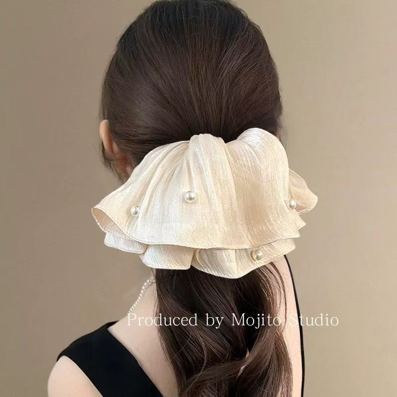 슈퍼 요정 진주 mercerized 패브릭 대장 헤어 루프 헤드 로프 기질 우아한 말꼬리 볼 헤드 고급 고무 밴드 헤어 로프