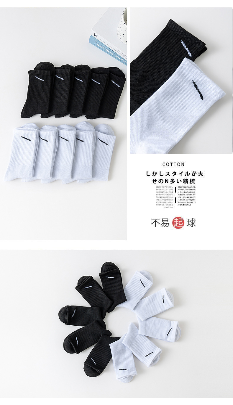 국경 새 봄과 가을 레저 단색면 양말 흑백 중간 및 긴 튜브 남성과 여성 수건 바닥 스포츠 농구 도매
