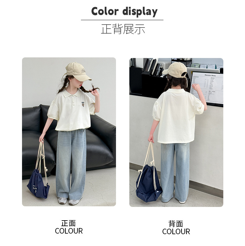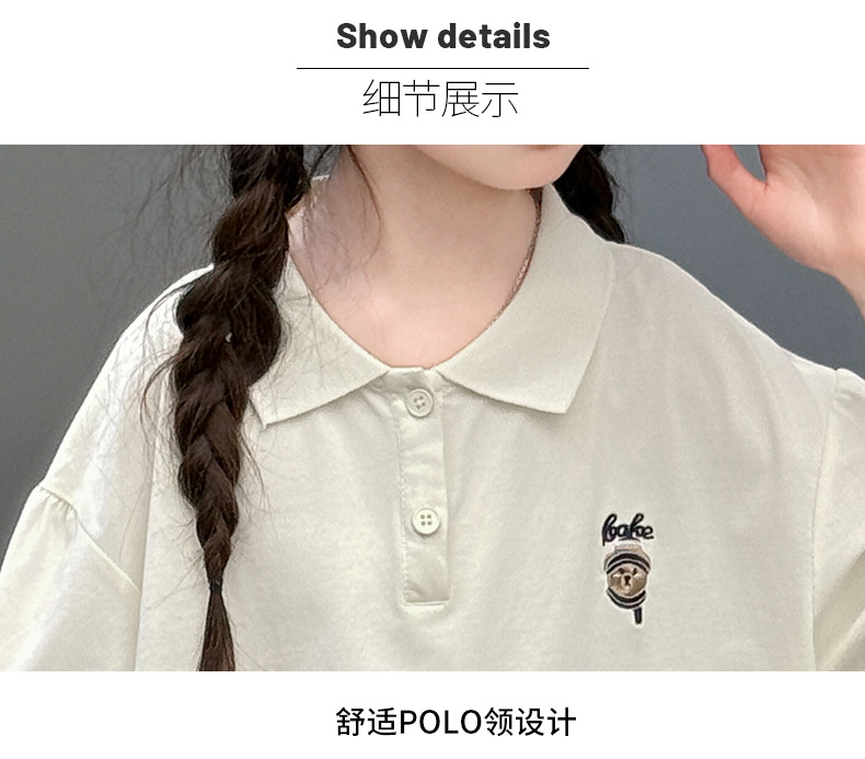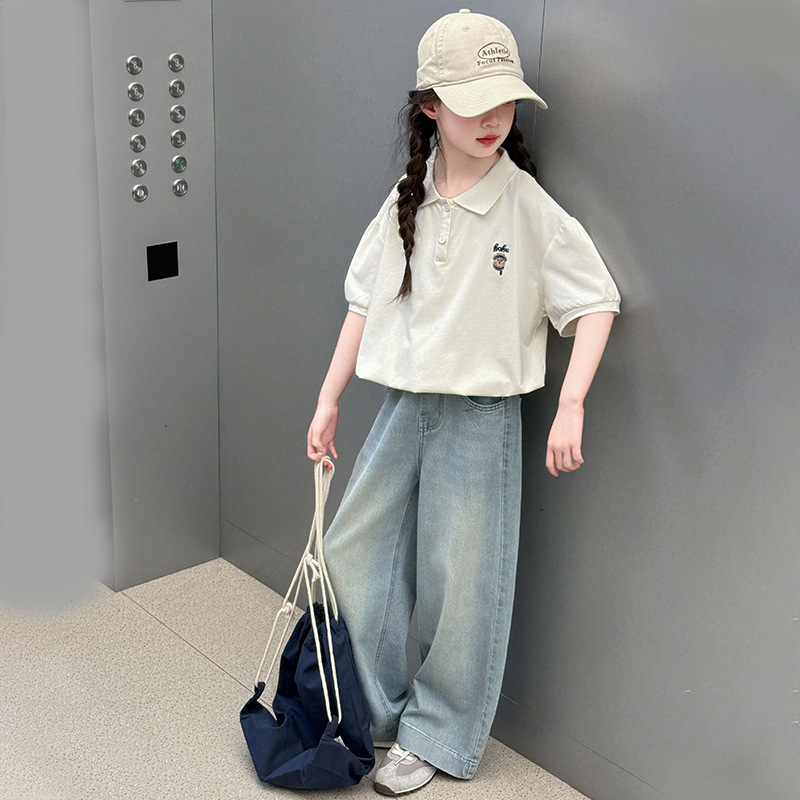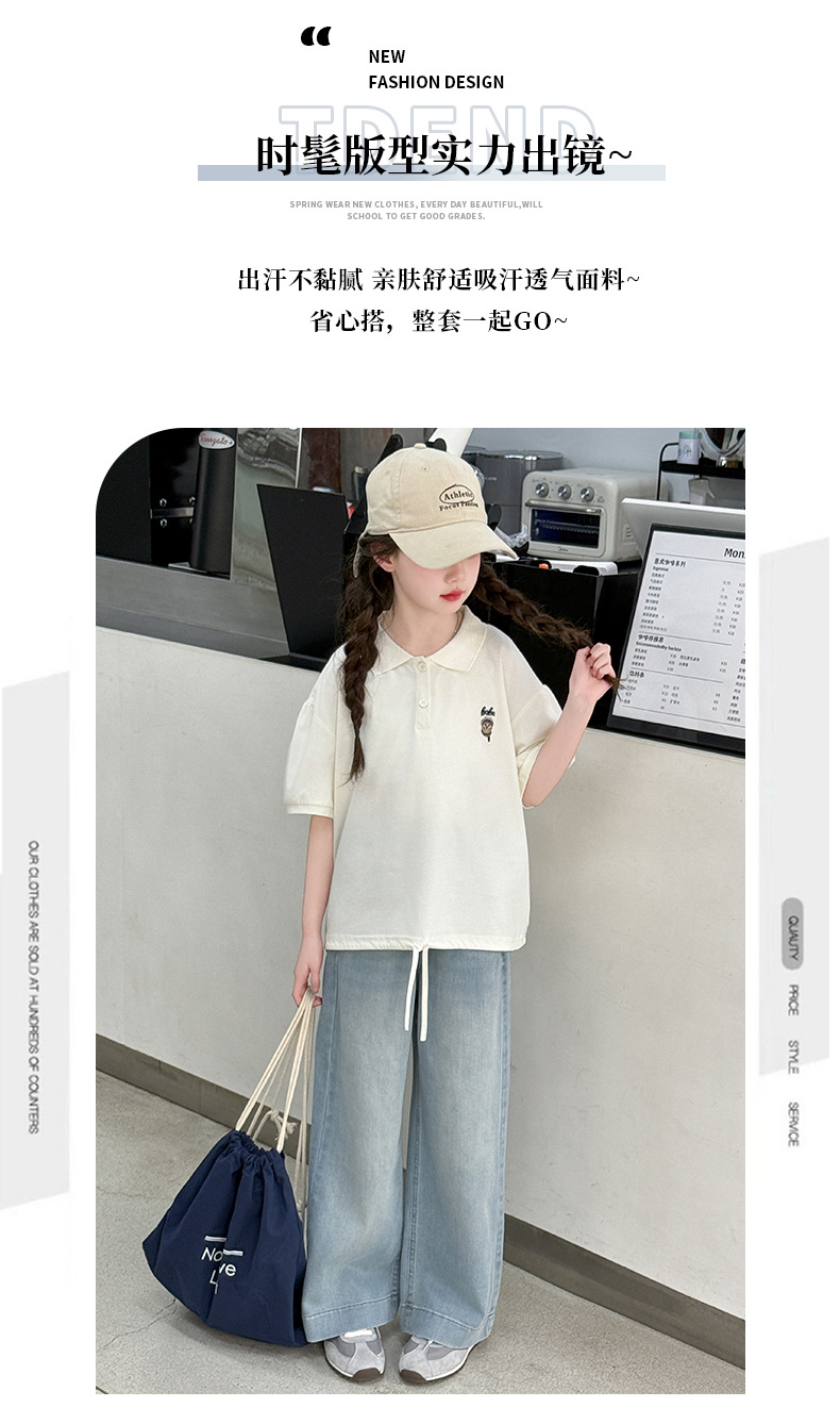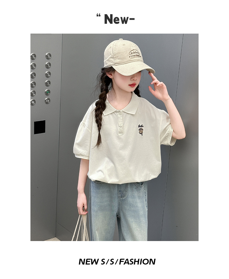 소녀의 여름 땀 세트 2025 새로운 스타일 큰 소년의 여름 어린이 옷깃 옷 소녀의 느슨한 탑스토어 가기