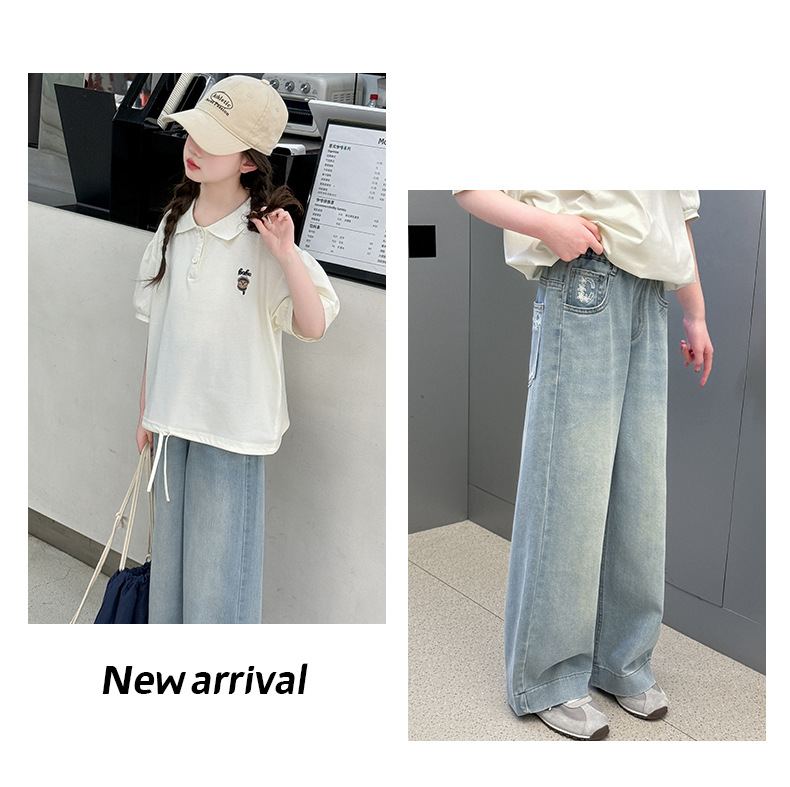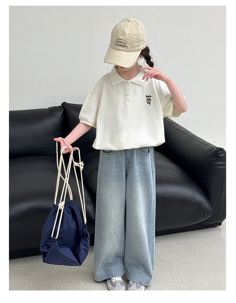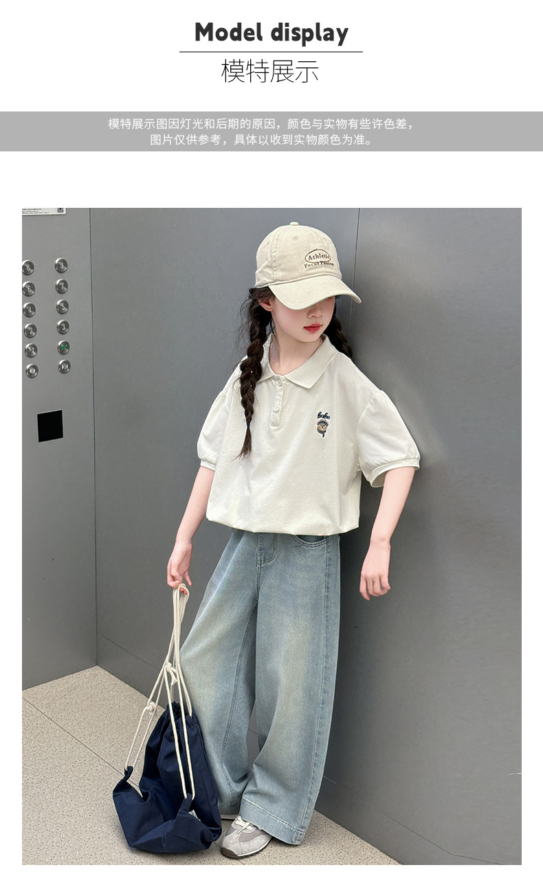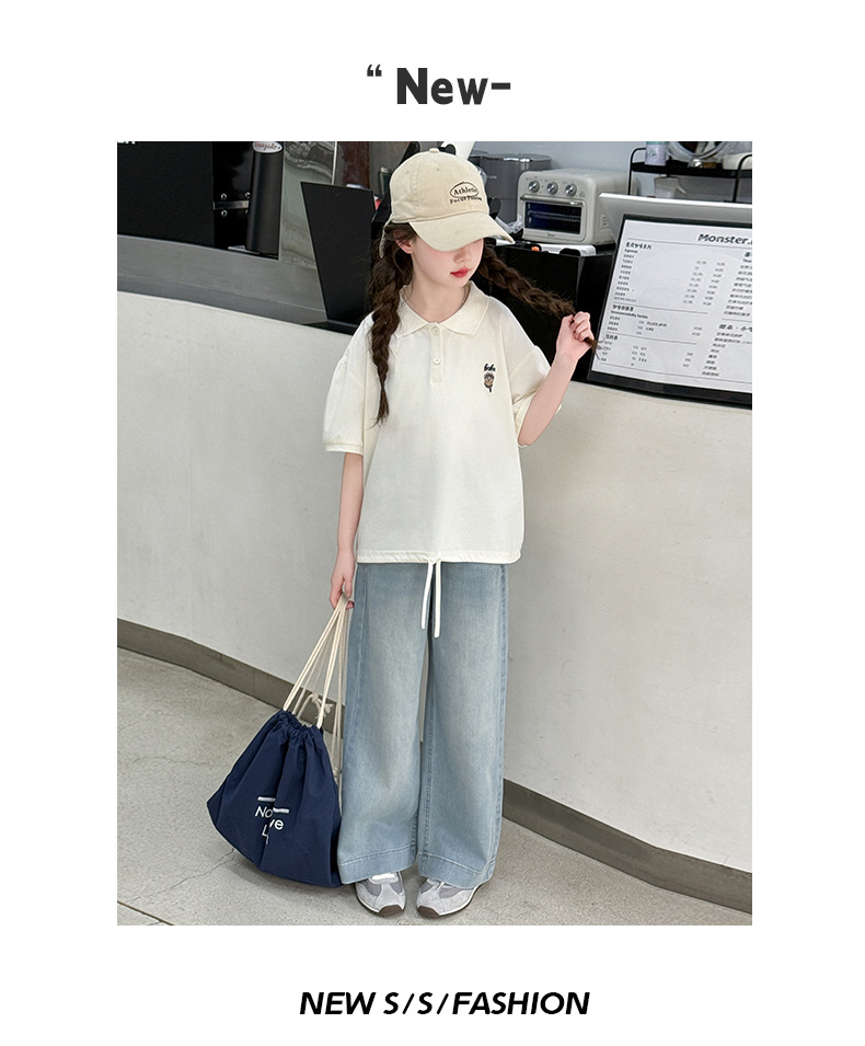 소녀의 여름 땀 세트 2025 새로운 스타일 큰 소년의 여름 어린이 옷깃 옷 소녀의 느슨한 탑스토어 가기