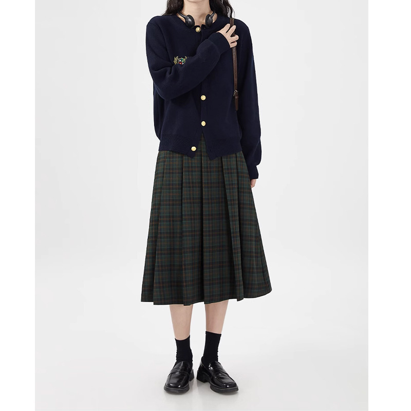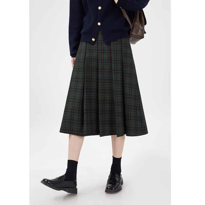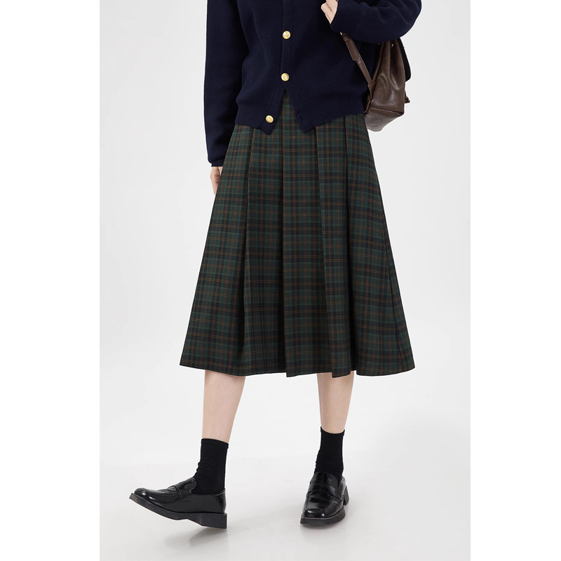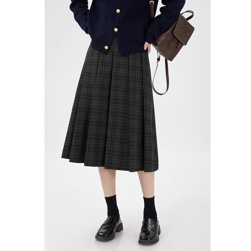 원사 염색 된 짠 빈티지 체크 스커트 여성 틈새 대학 스타일 슬리밍 높은 허리 슬리밍 A 라인 주름 치마