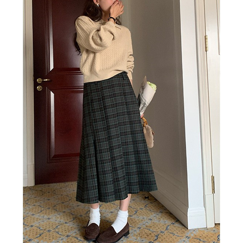 원사 염색 된 짠 빈티지 체크 스커트 여성 틈새 대학 스타일 슬리밍 높은 허리 슬리밍 A 라인 주름 치마스토어 가기