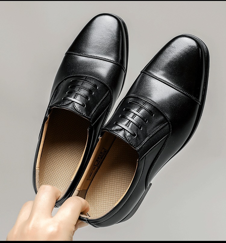 남성용 정품 삼중 가죽 신발, 정품 가죽 비즈니스 정장, 삼중 뾰족한 신랑 결혼식 가죽 신발, 전문 레이스 업 더비 신발