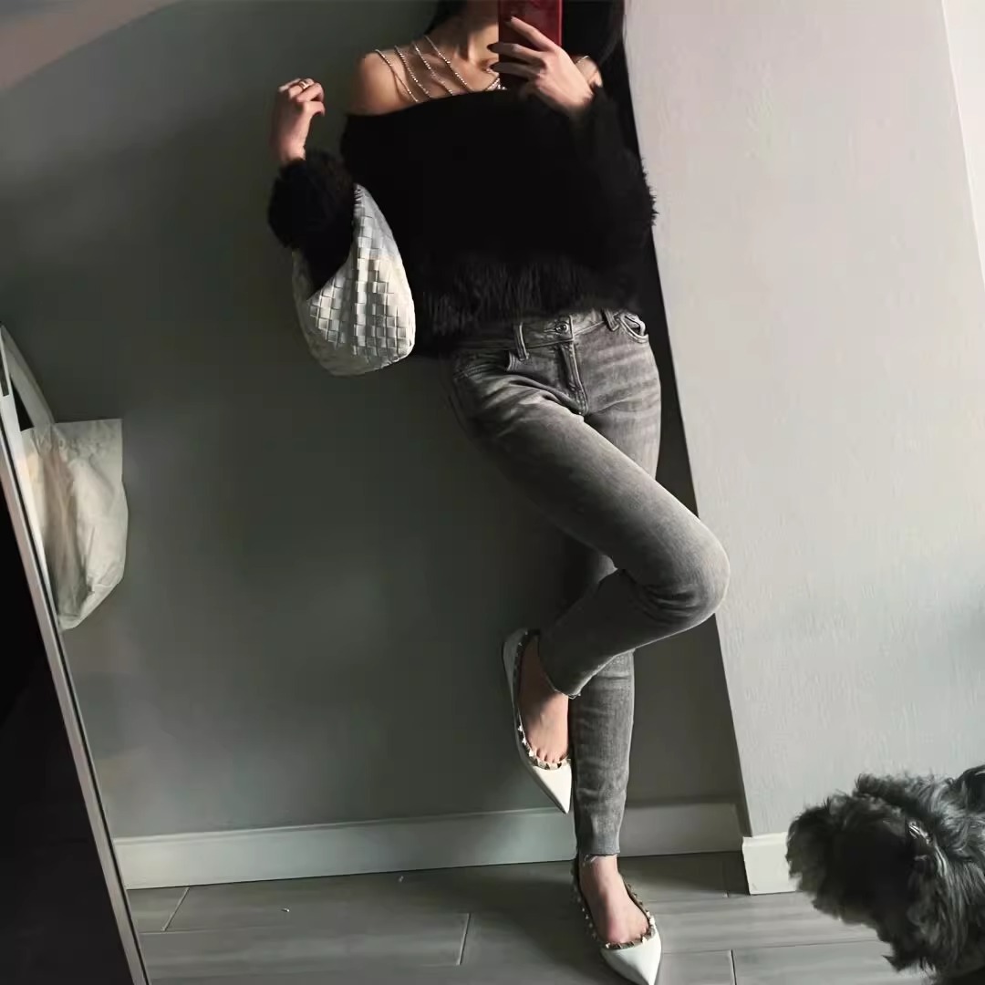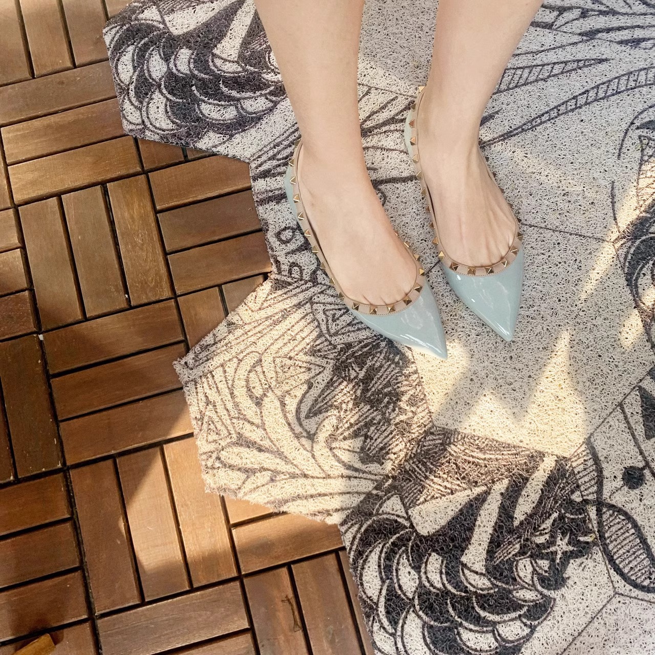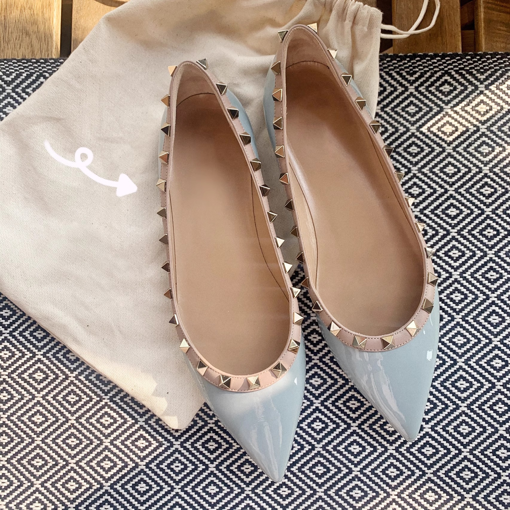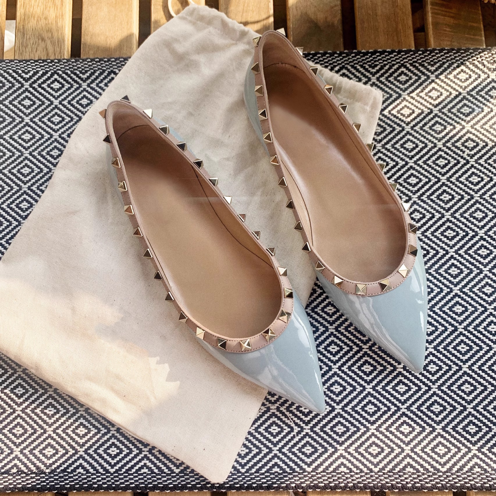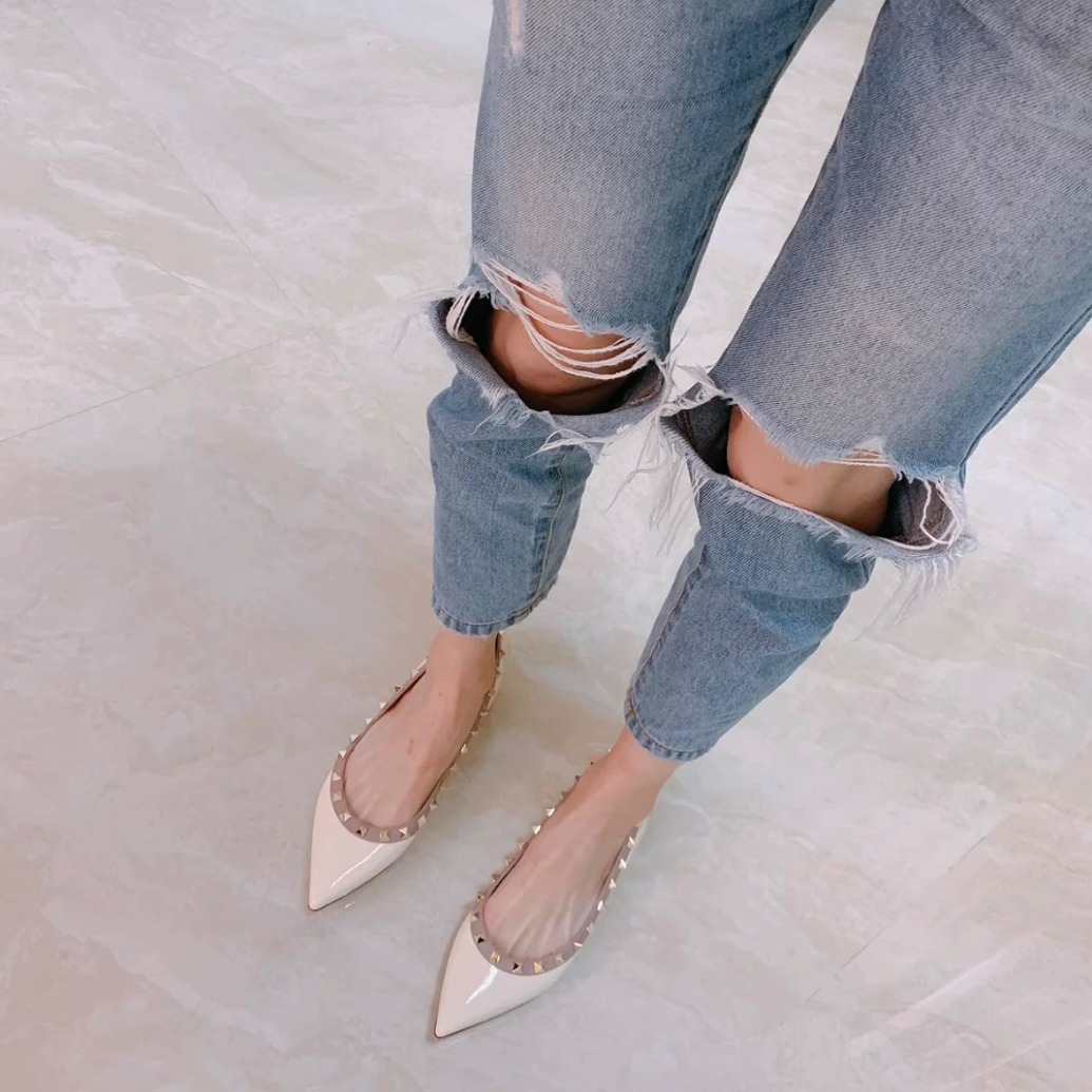 1층 소가죽~ 이브닝바람 천연가죽 리벳 포인티드 토 플랫 슈즈 여성 프렌치 메리제인 슈즈 OL 슈즈 스몰 가죽슈즈