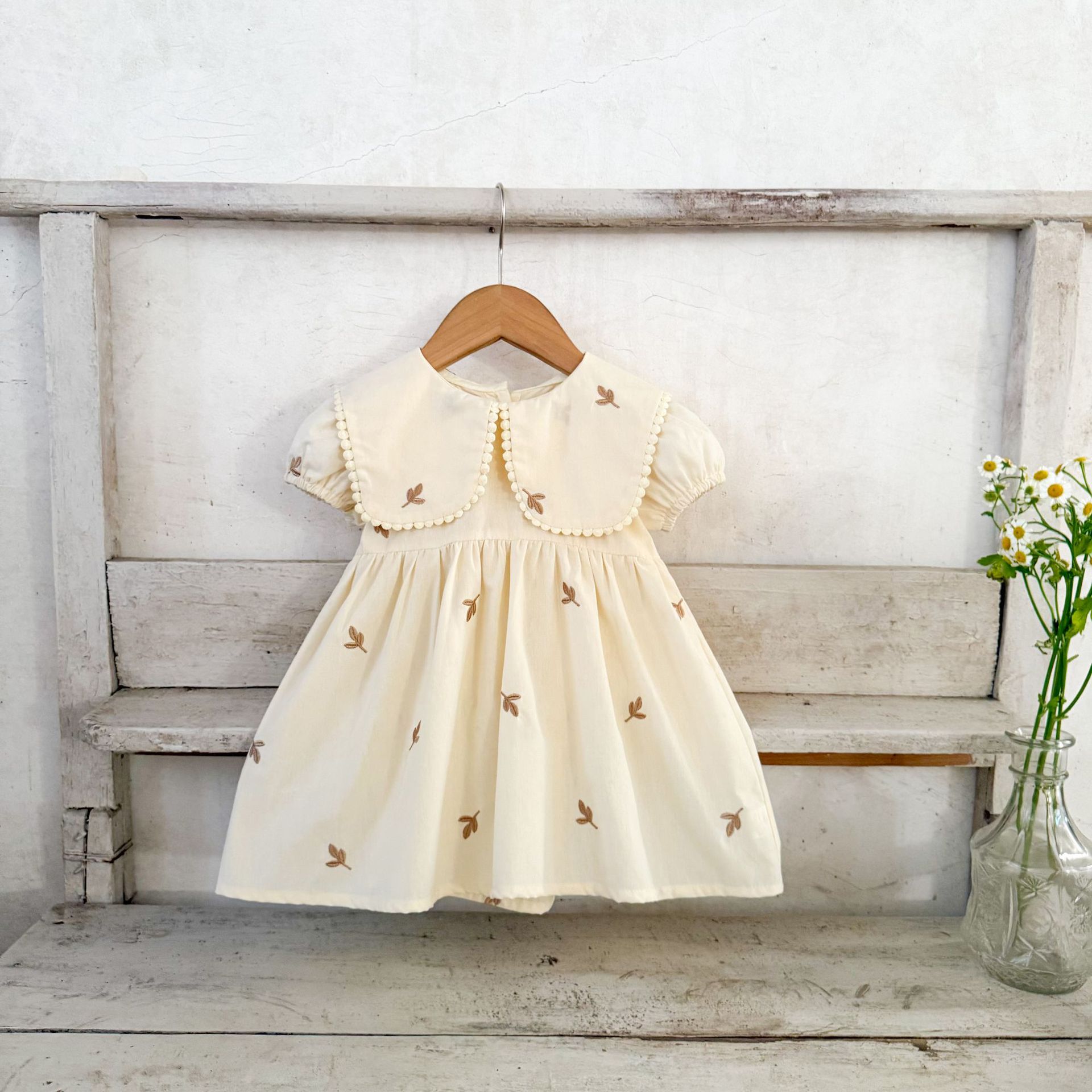 인즈 한국 스타일 소녀 코튼 만화 자수 옷깃 반팔 원피스 어린이 여름 올매치 귀여운 원피스