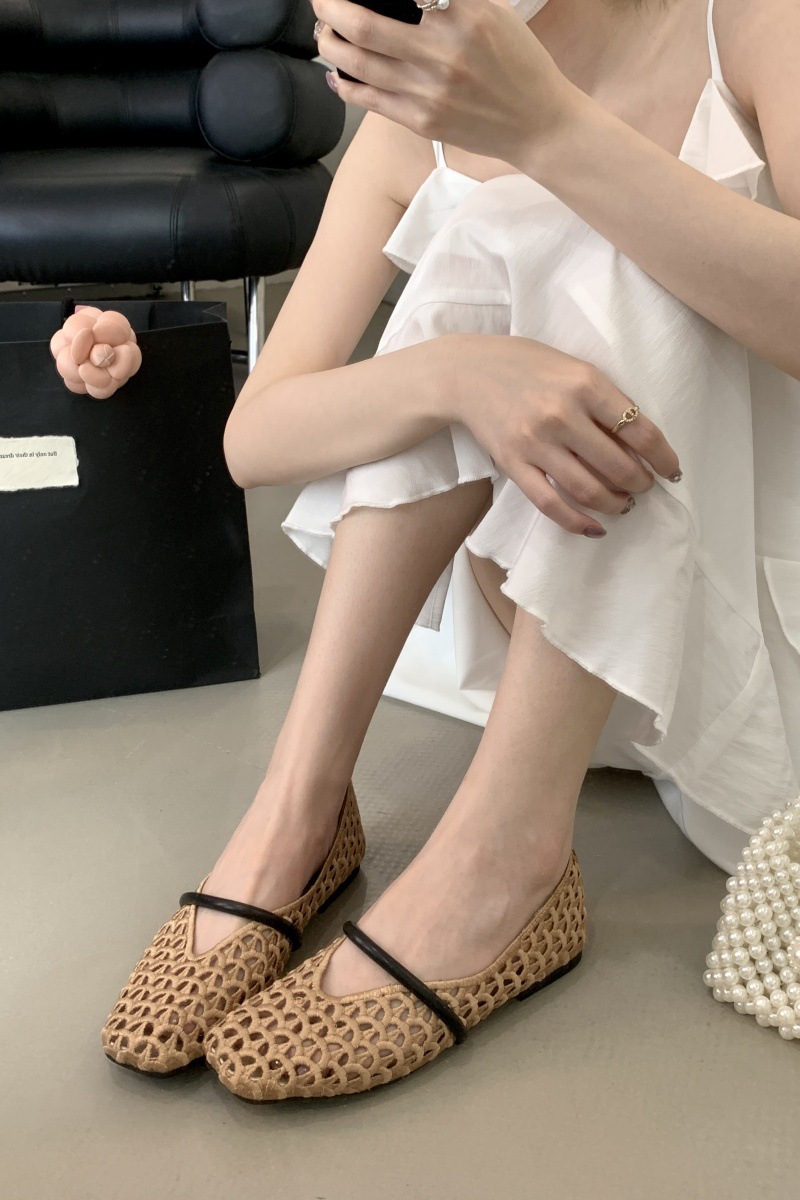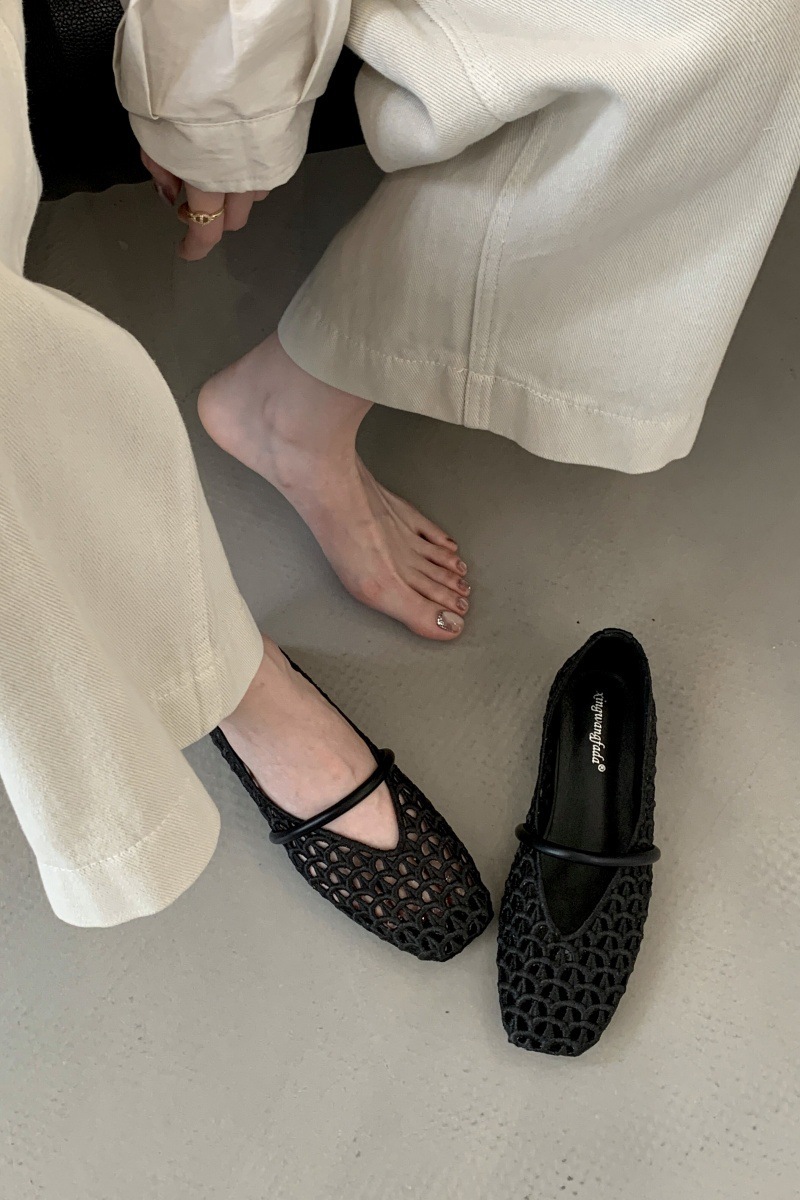 중공 짠 메쉬 샌들 여성용 2025 년 여름 새 스타일 플랫 로우 힐 메리 제인 신발