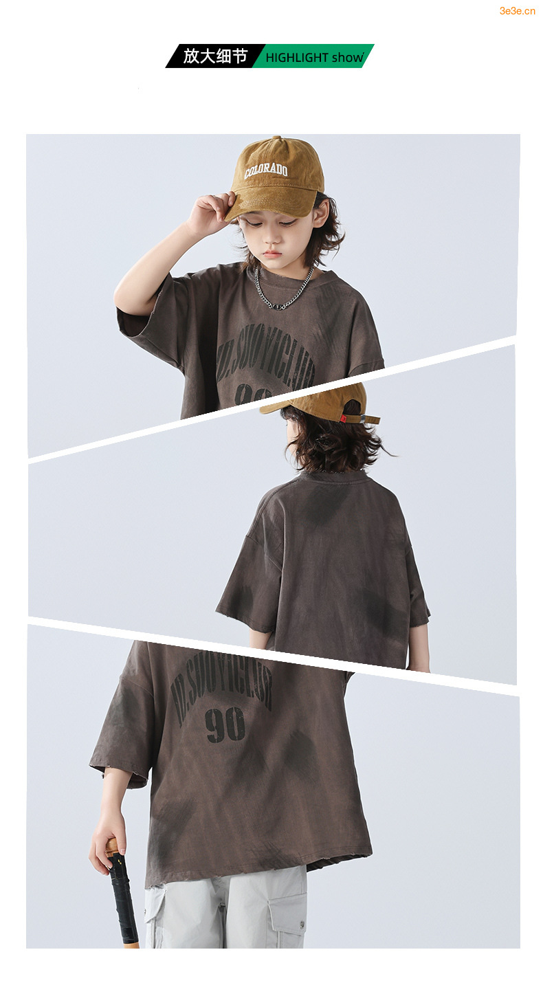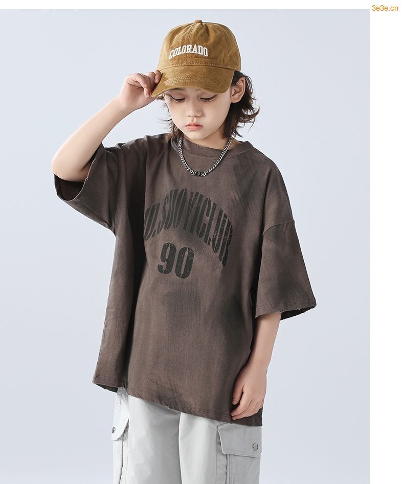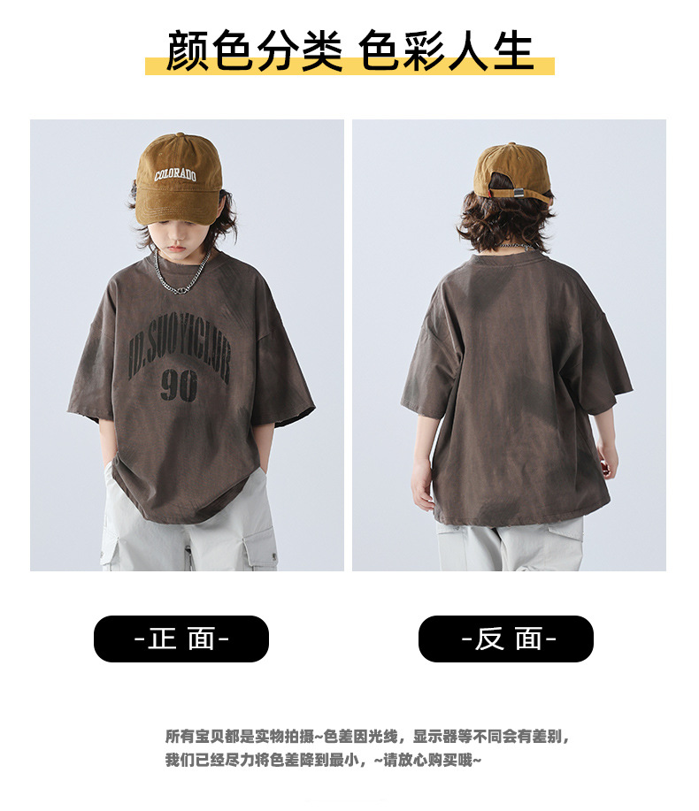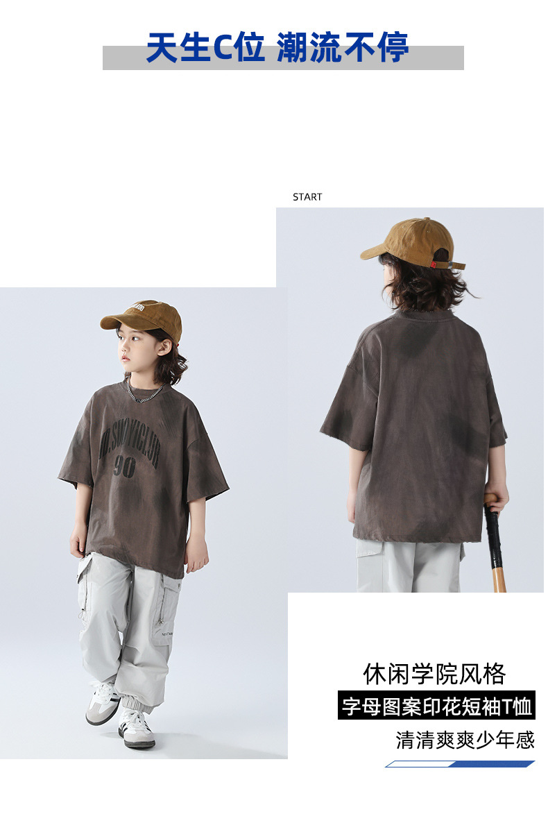 여름 소년 90자 브러시 스타일 티셔츠 2025 새로운 한국어 버전 중대형 아동 패션 반팔스토어 가기