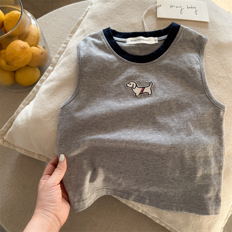 2026년 아동용 민소매 티셔츠, 만화 캐릭터 남아 조끼, 여름 아기옷, 여름 티셔츠, 대비색 칼라 트렌드스토어 가기