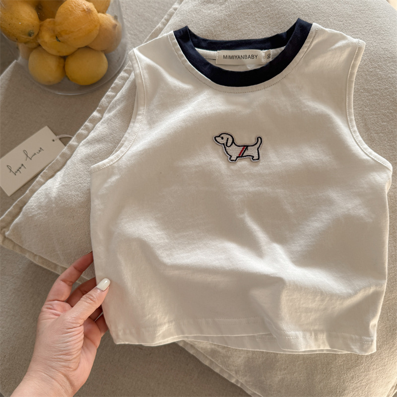 2026년 아동용 민소매 티셔츠, 만화 캐릭터 남아 조끼, 여름 아기옷, 여름 티셔츠, 대비색 칼라 트렌드