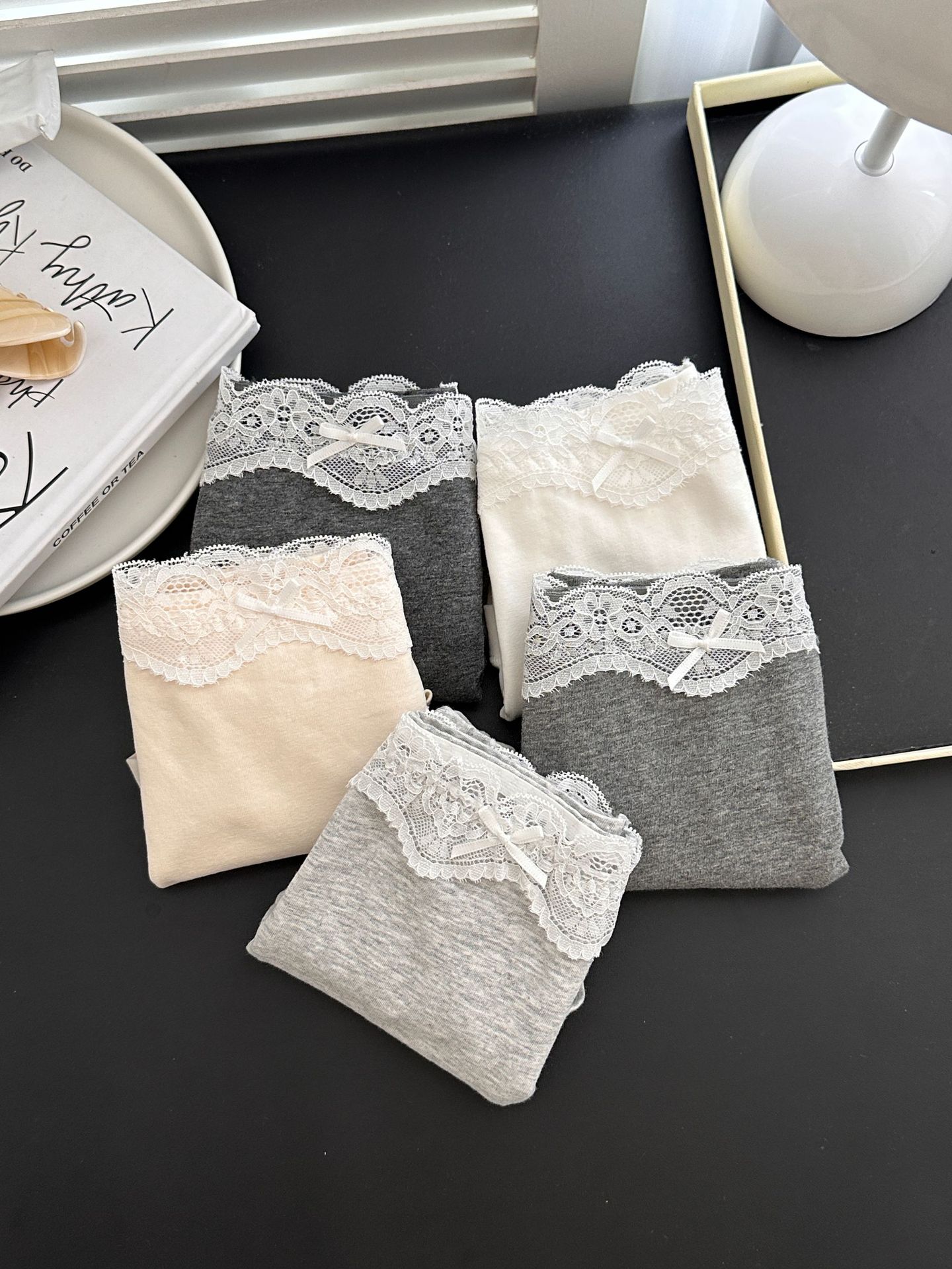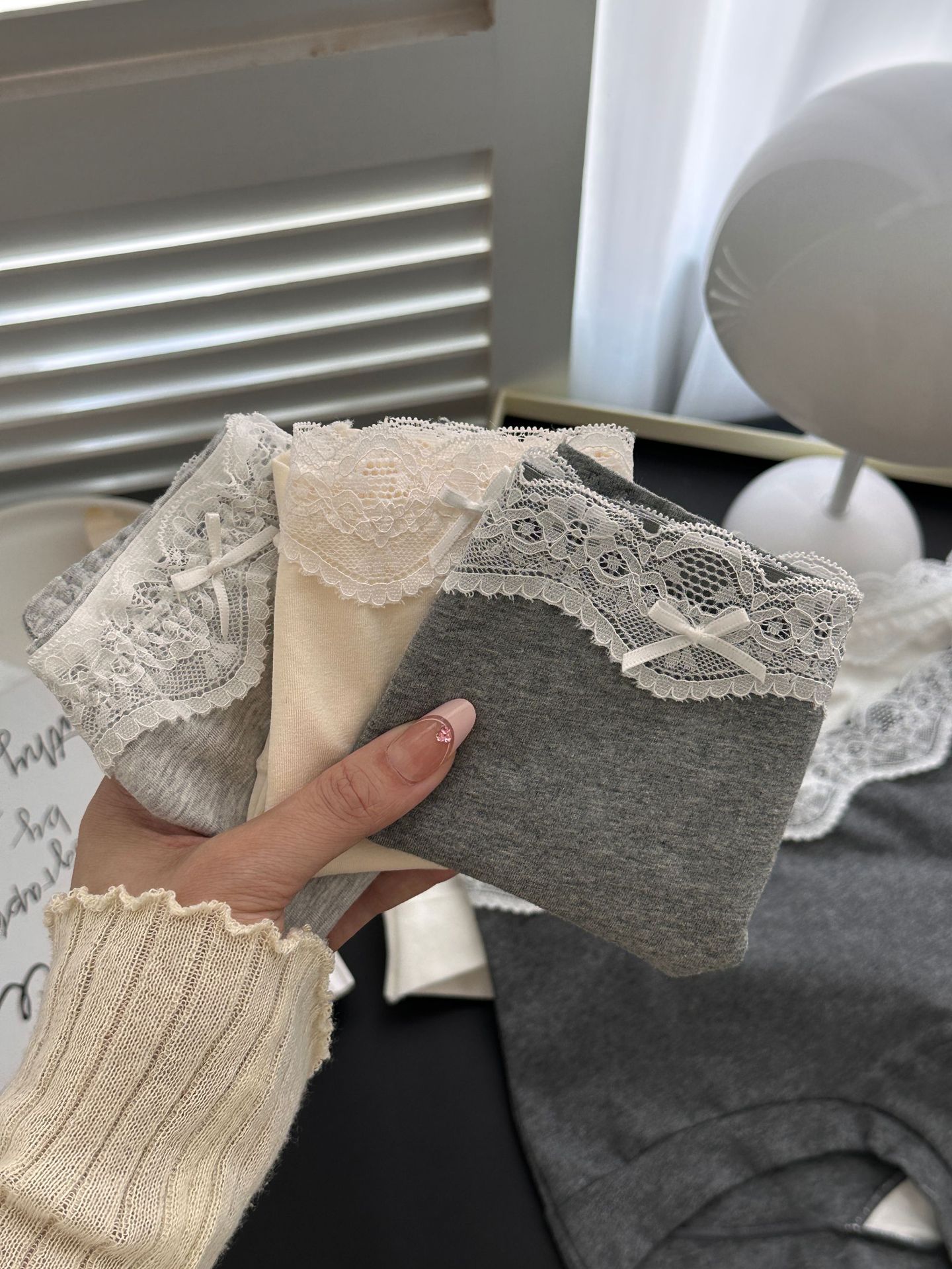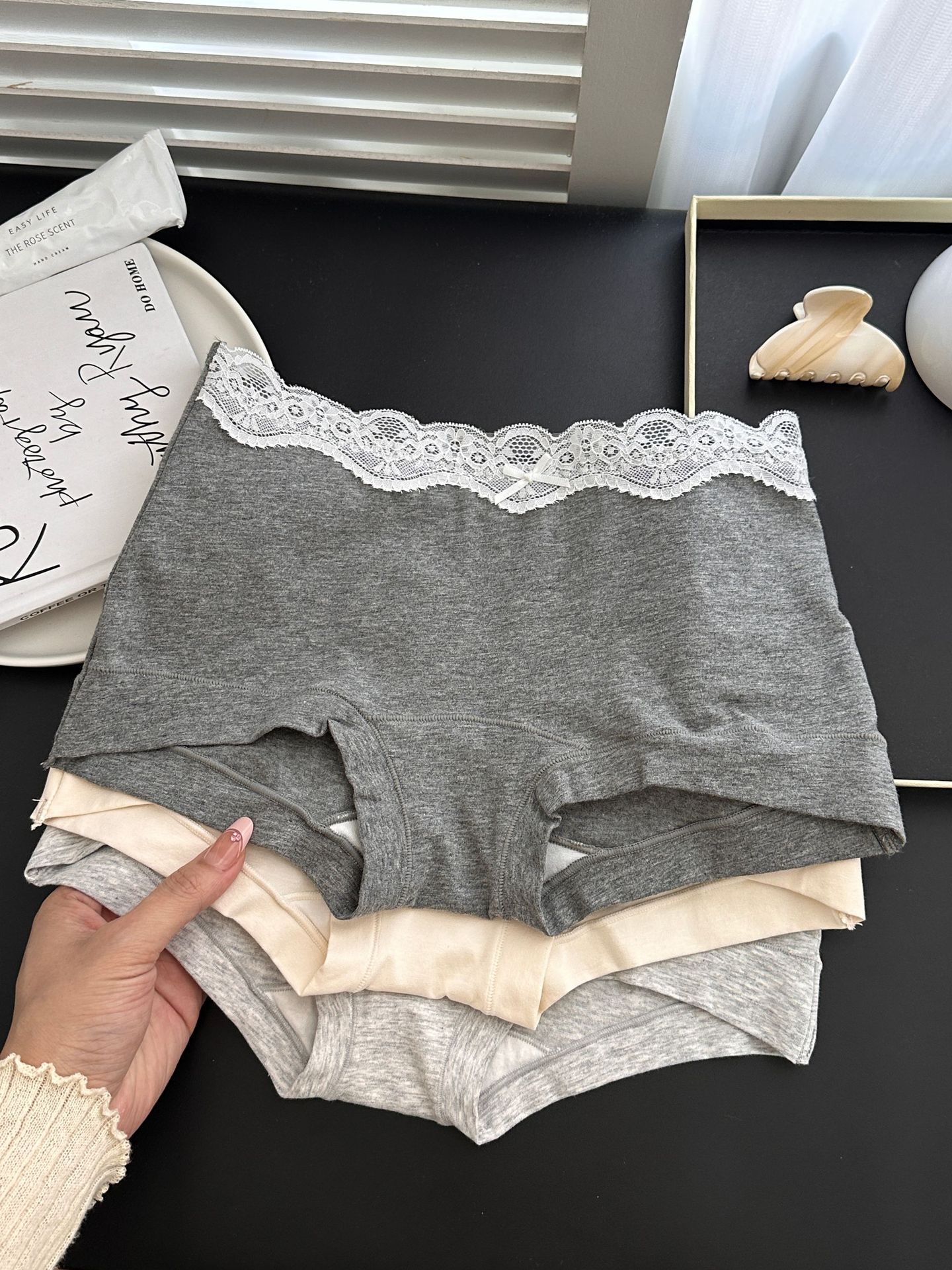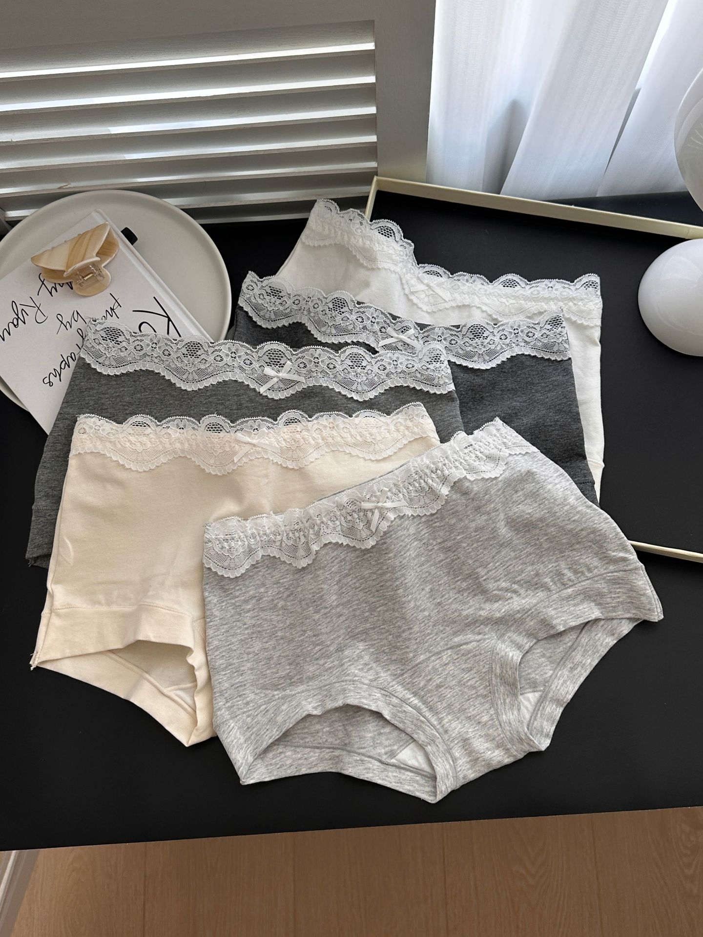 10A 항균 연봉 된 크로 치 순면 보텀 속옷 여성의 중간 허리 레이스 소녀 바람 플랫 다리 4 코너 안전 속옷스토어 가기