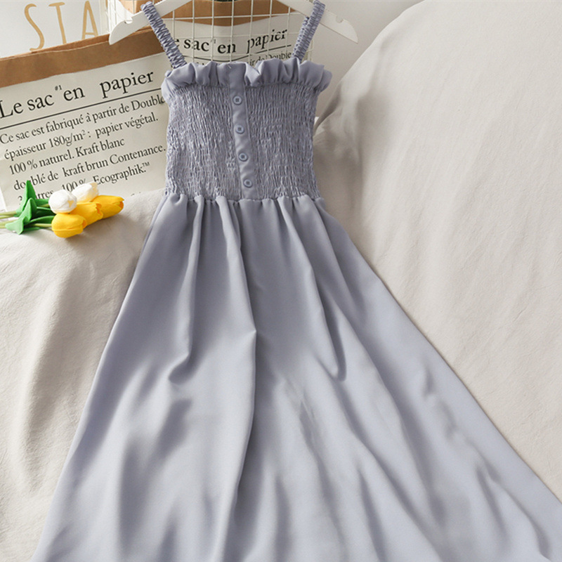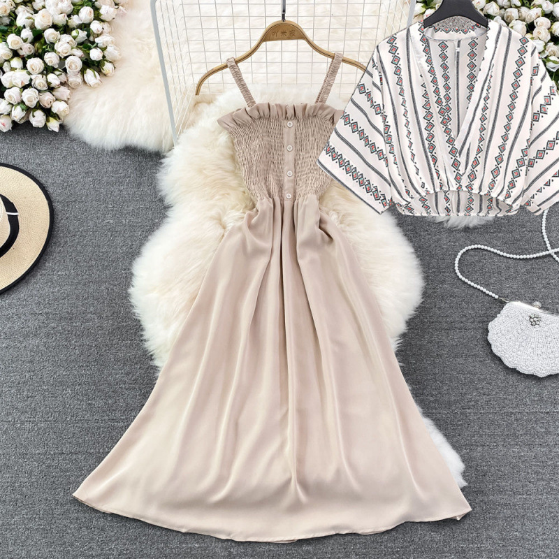 2025 새로운 한국어 버전 여름 요정 달콤한 중간 길이 쉬폰 서스펜더 스커트 학생 유행 투피스 양복스토어 가기