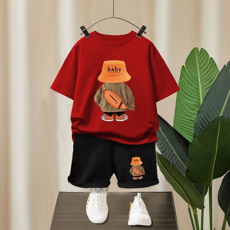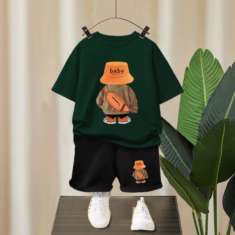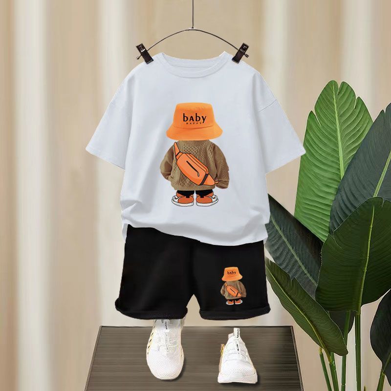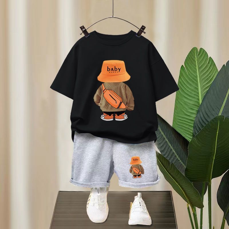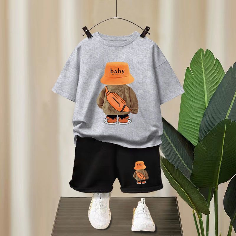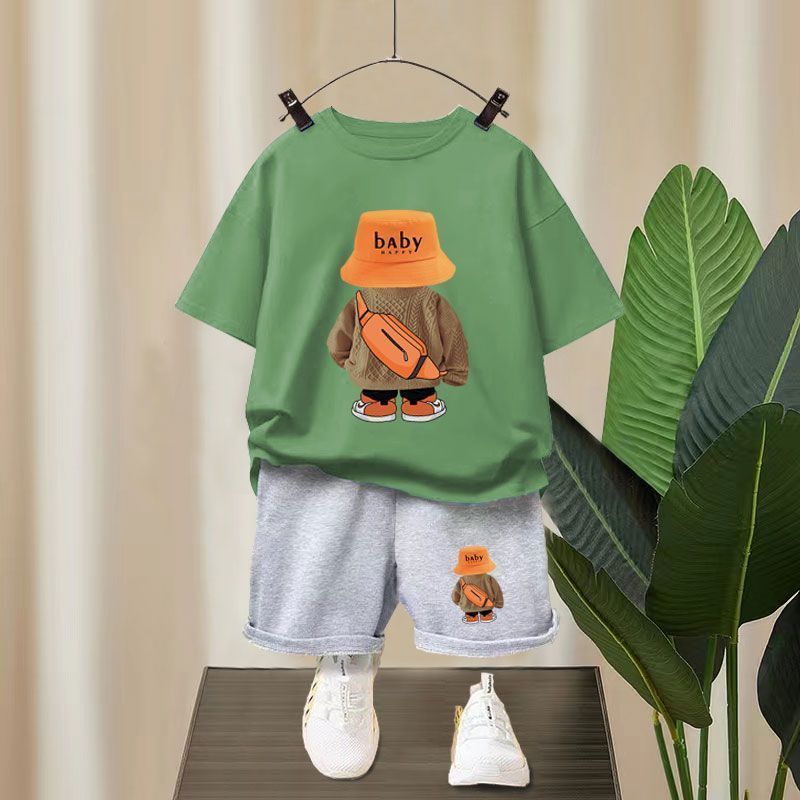 어린이 속건 반팔 반바지 세트 2024 여름 새로운 스타일 한국 스타일 소년과 소녀를위한 얇은 투피스 세트