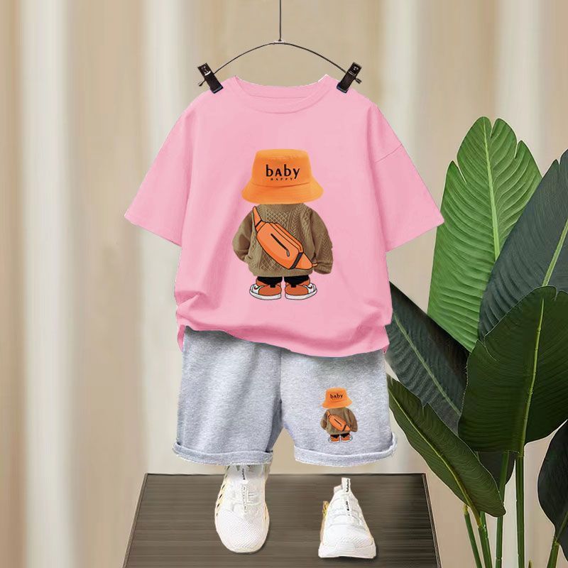 어린이 속건 반팔 반바지 세트 2024 여름 새로운 스타일 한국 스타일 소년과 소녀를위한 얇은 투피스 세트스토어 가기