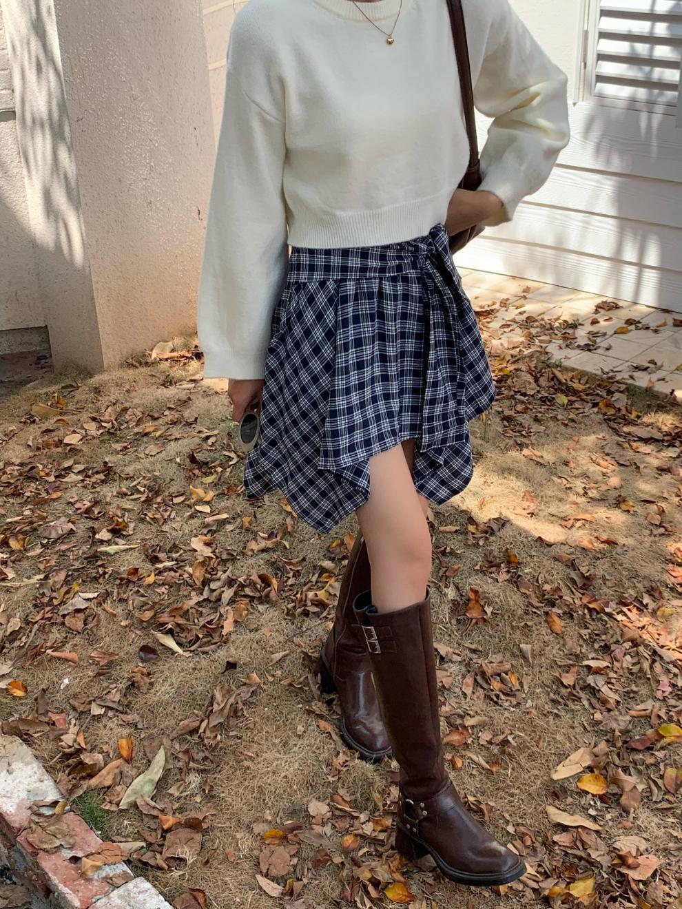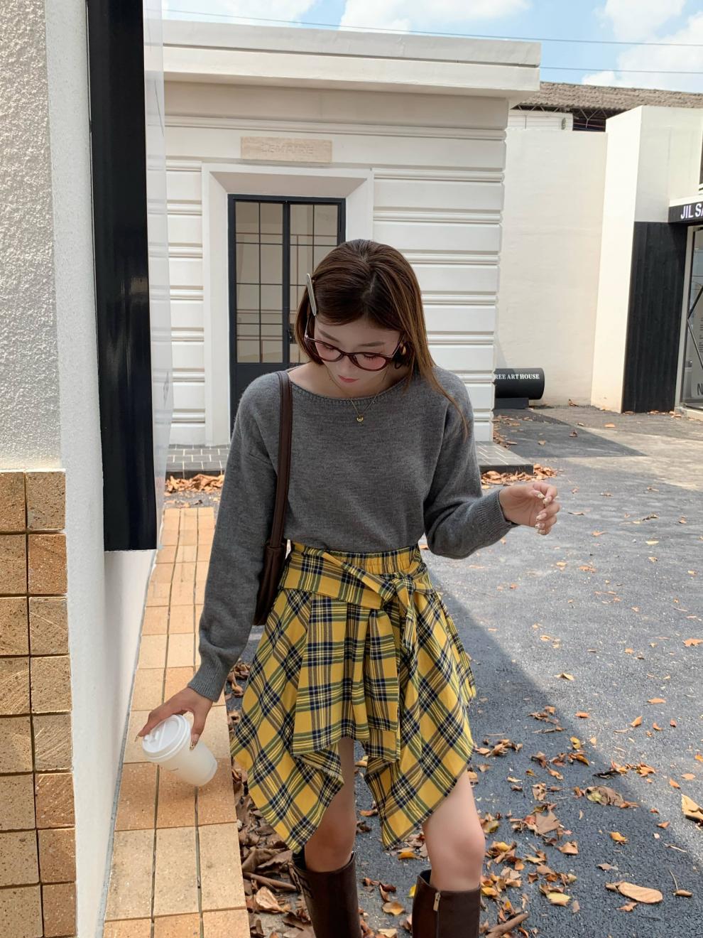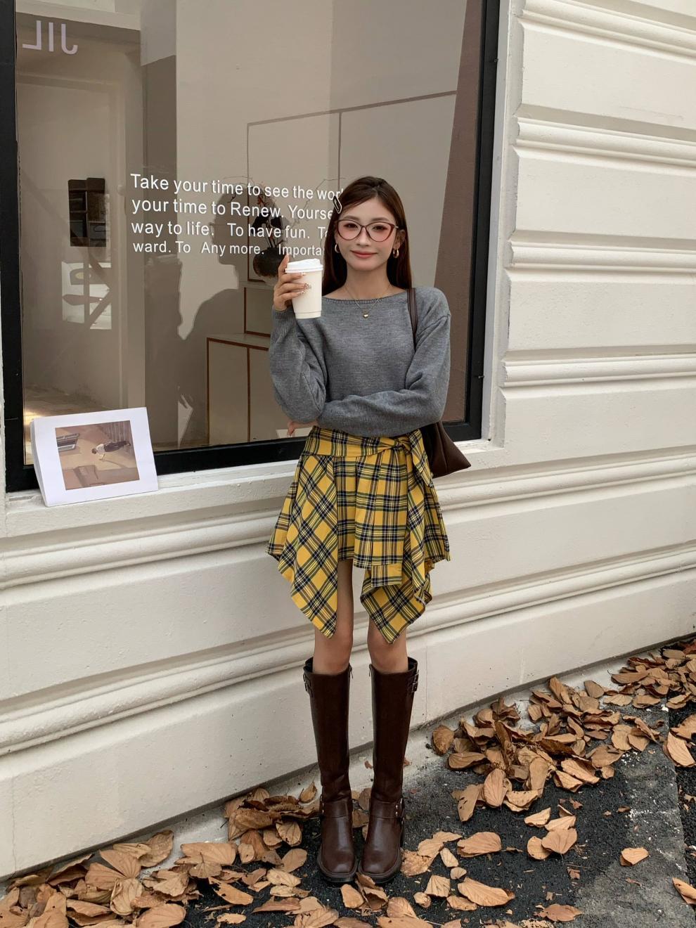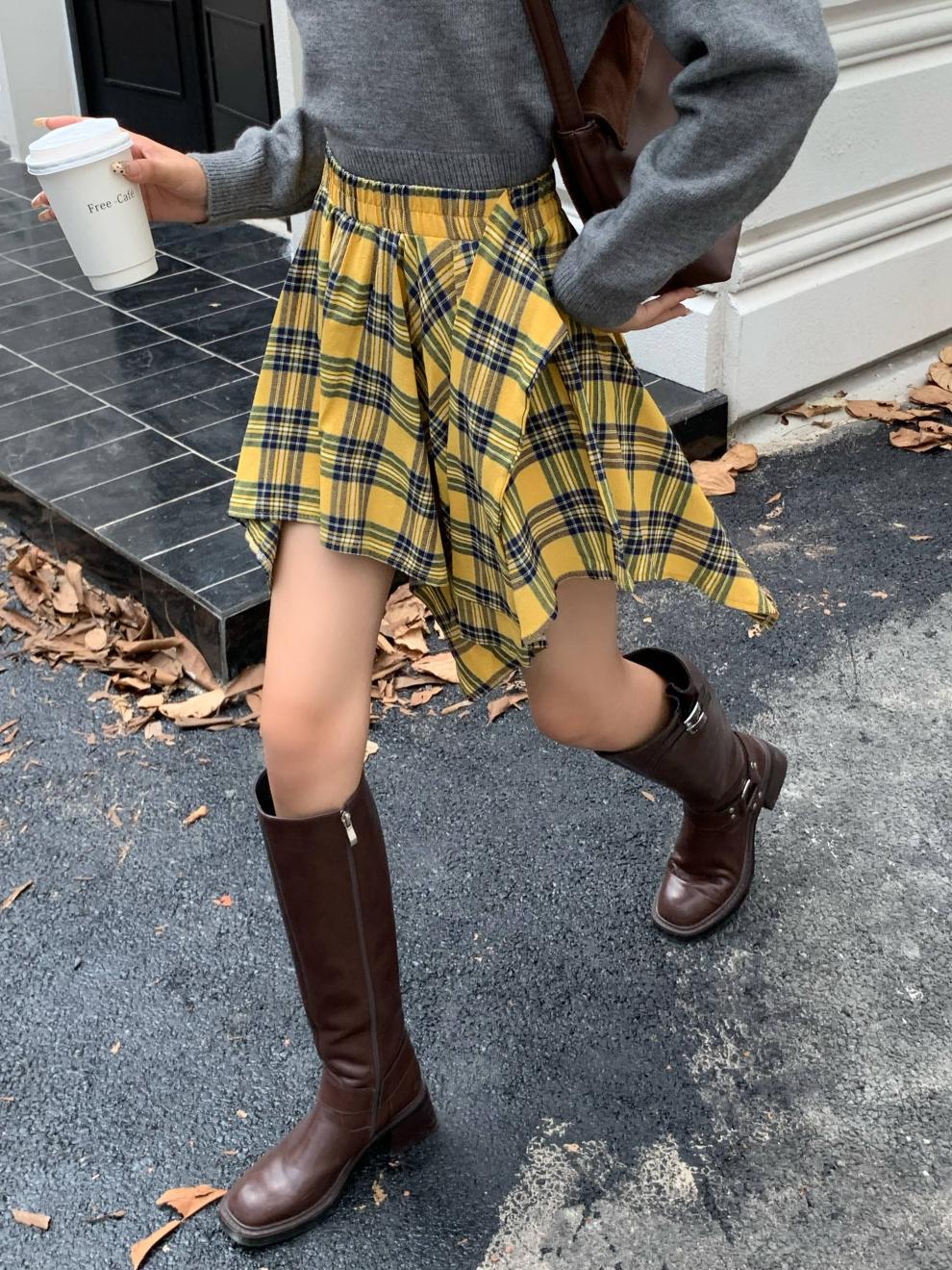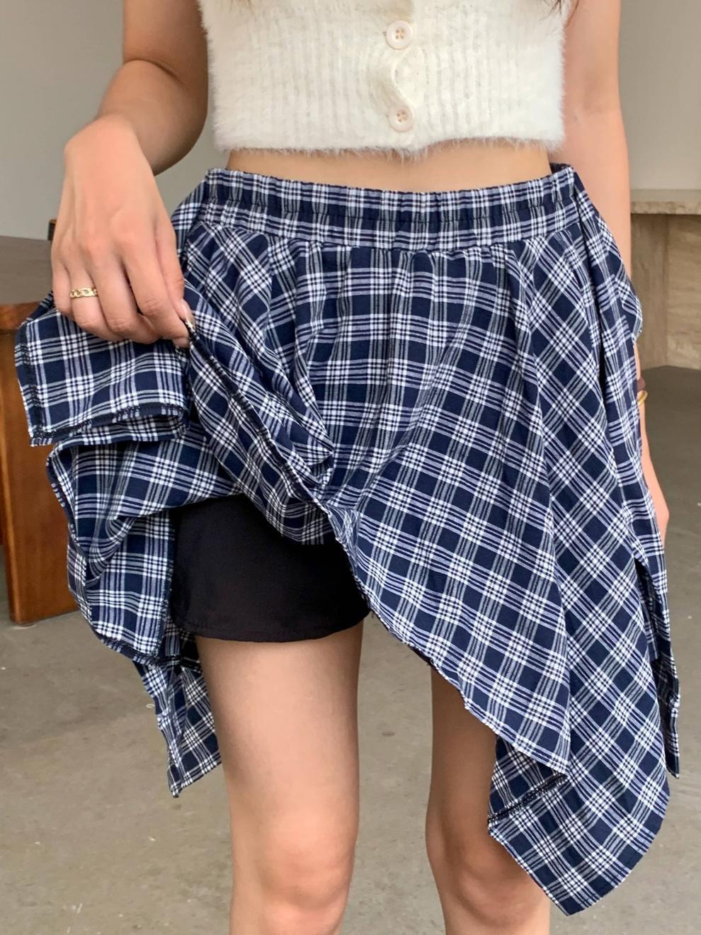 2024 년 가을 새로운 도착 불규칙한 격자 무늬 스커트 A 라인 느슨한 허리 격자 무늬 레이스 업 보우 슬리밍 올매치스토어 가기