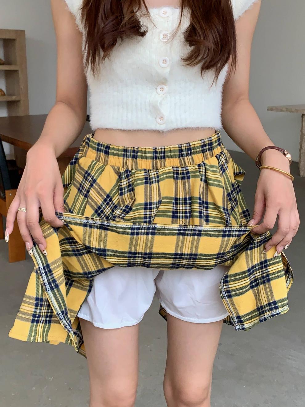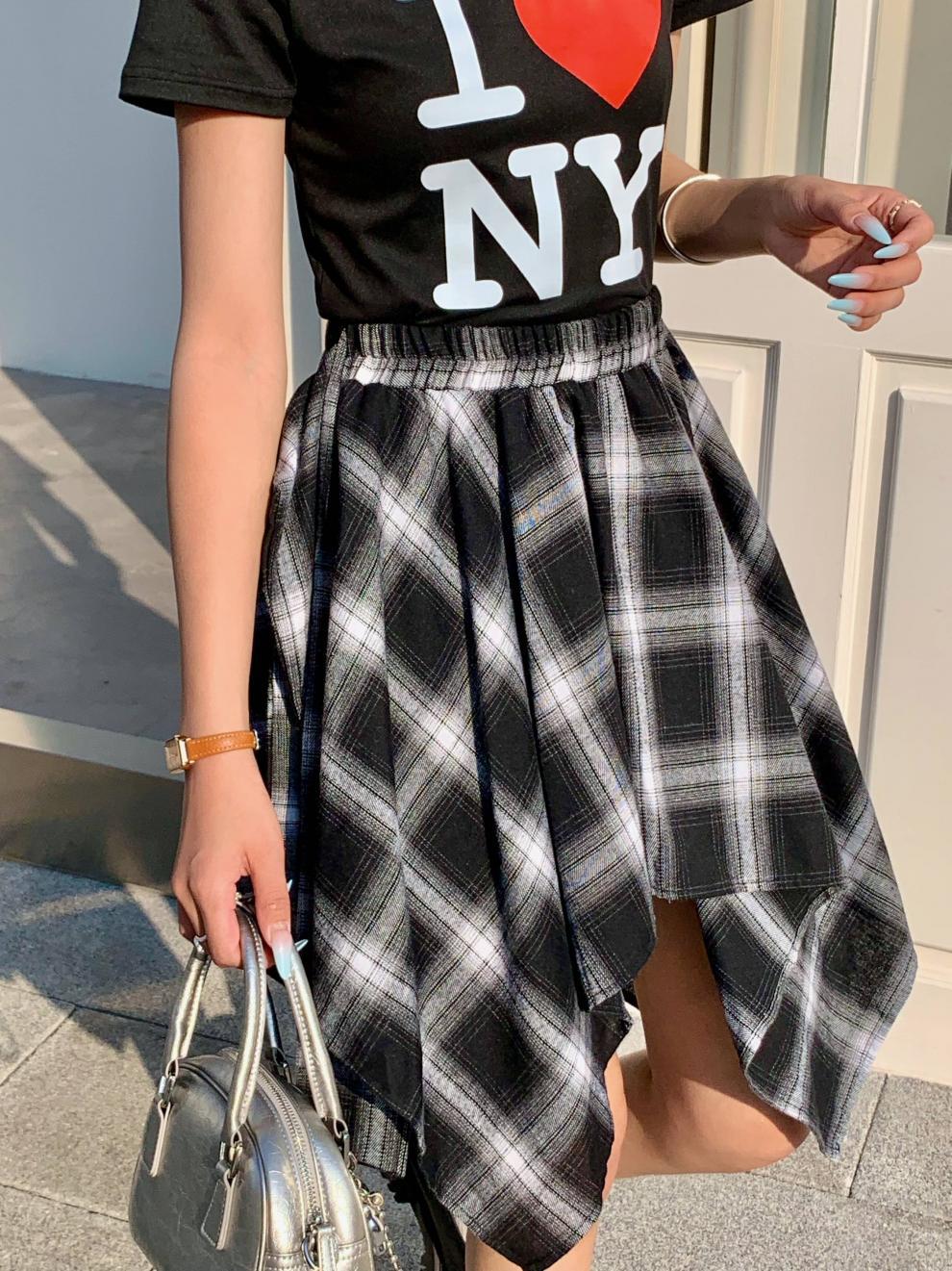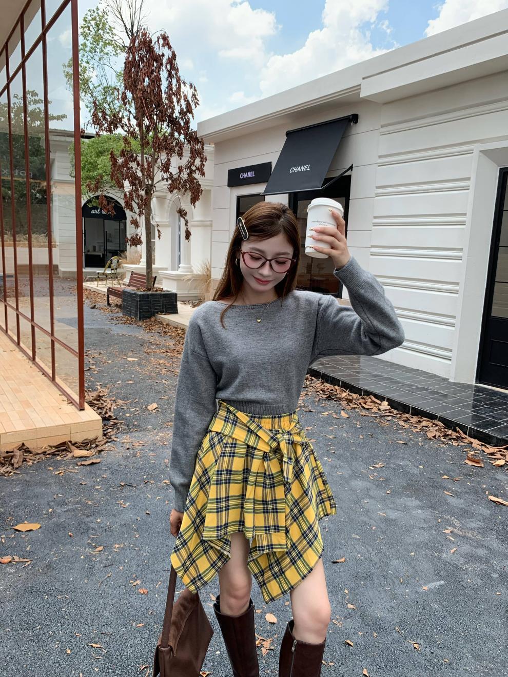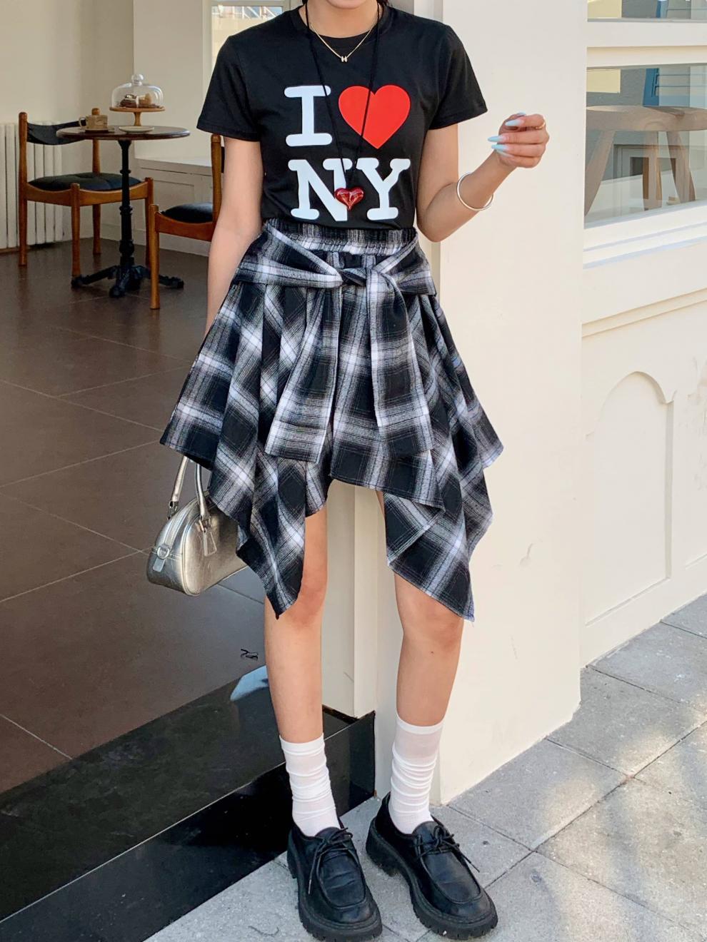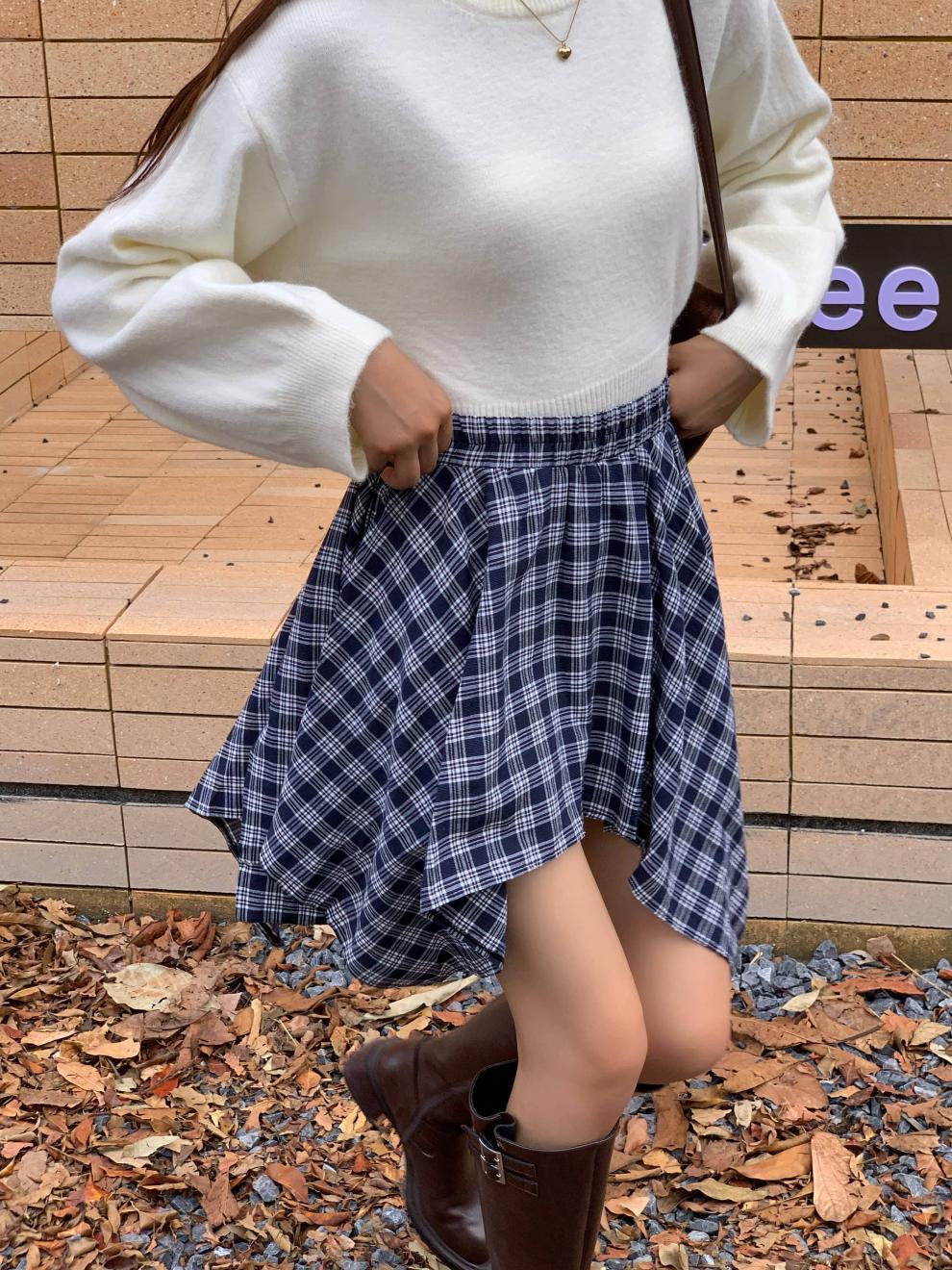 2024 년 가을 새로운 도착 불규칙한 격자 무늬 스커트 A 라인 느슨한 허리 격자 무늬 레이스 업 보우 슬리밍 올매치스토어 가기