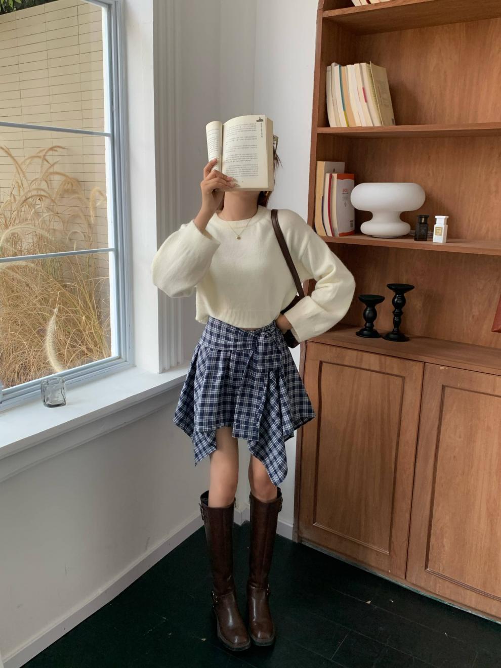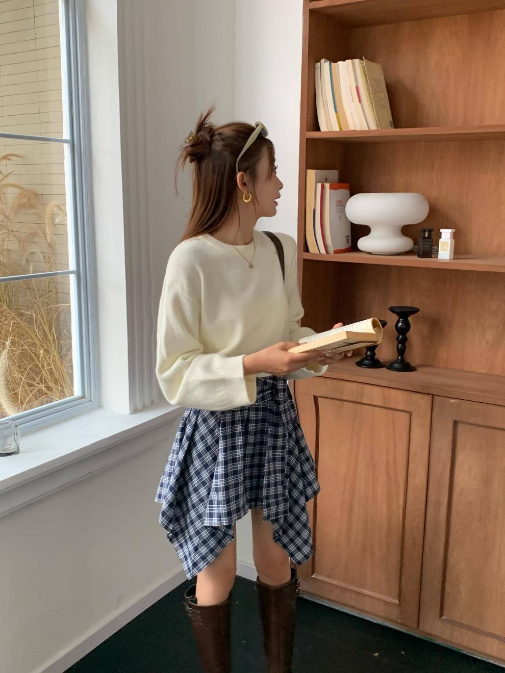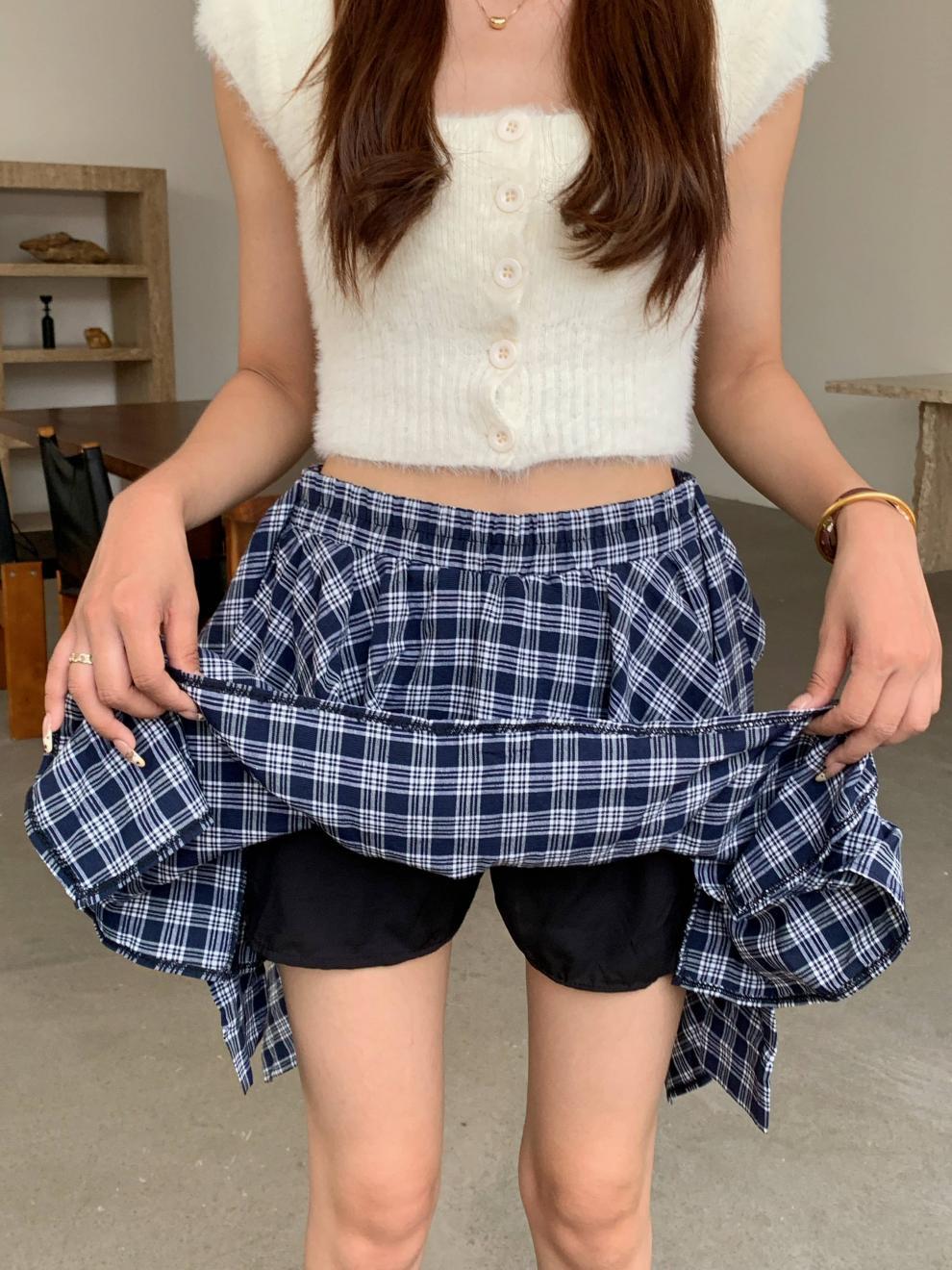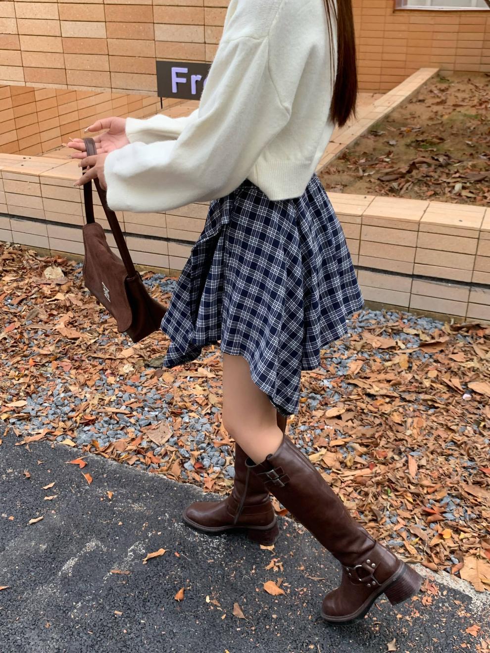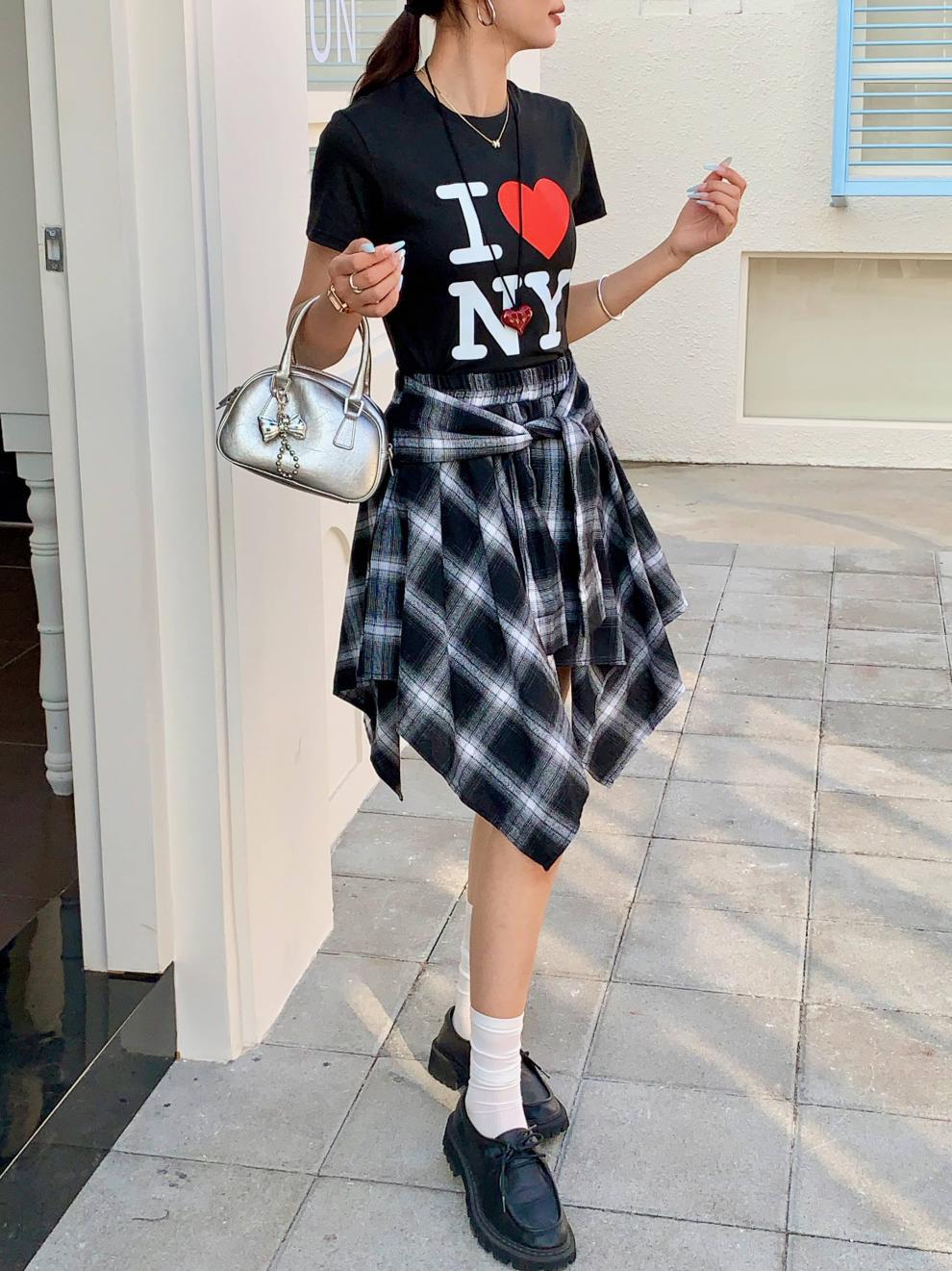 2024 년 가을 새로운 도착 불규칙한 격자 무늬 스커트 A 라인 느슨한 허리 격자 무늬 레이스 업 보우 슬리밍 올매치스토어 가기