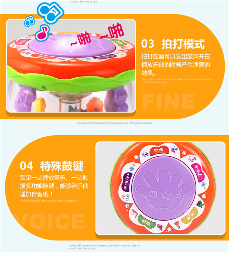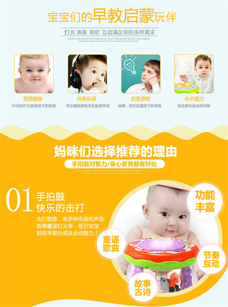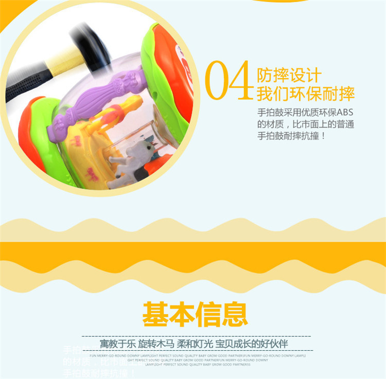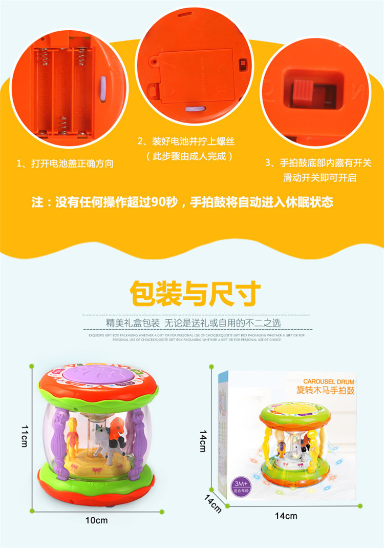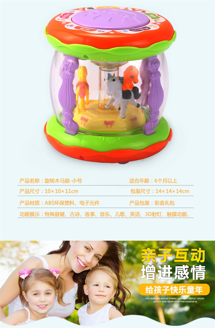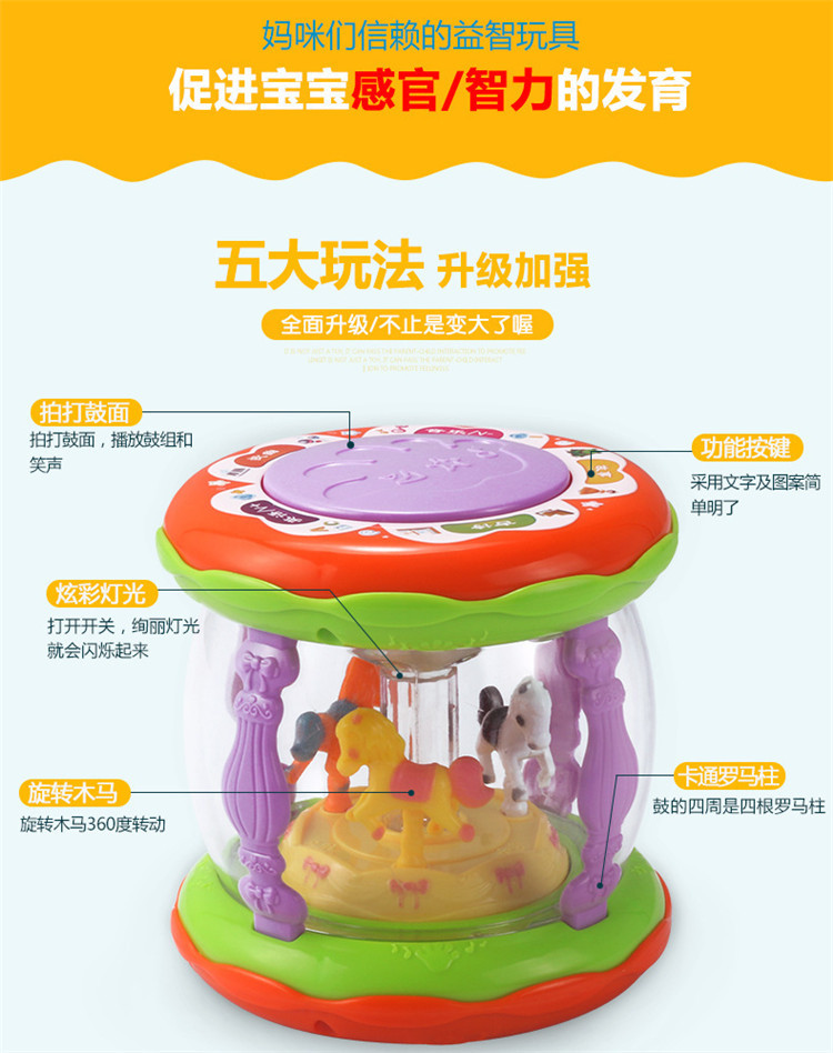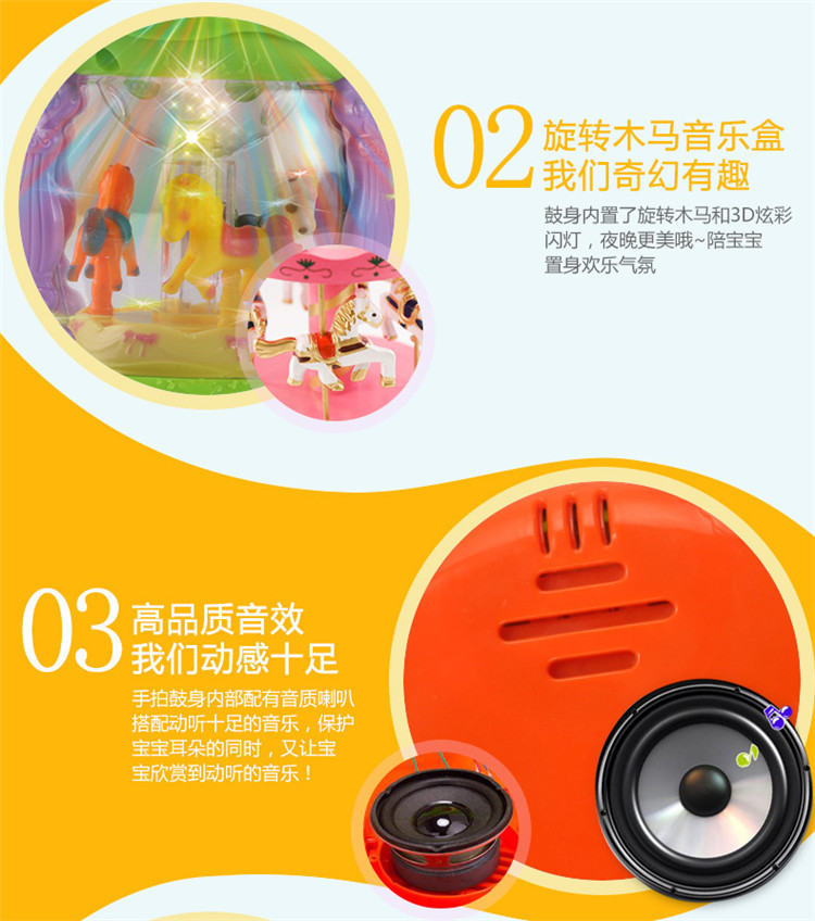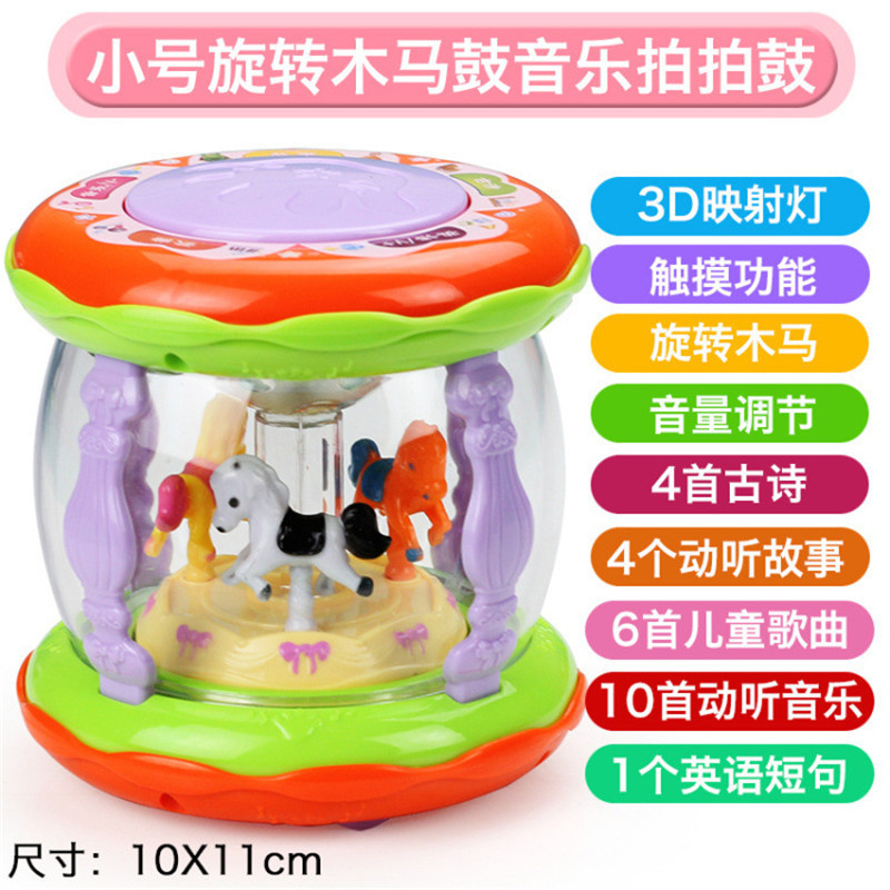 어린이 장난감 팻 드럼 아기 교육 조기 교육 드럼 다기능 소형 회전 목마 음악 드럼 소리와 빛 손 팻 드럼스토어 가기