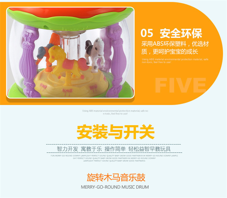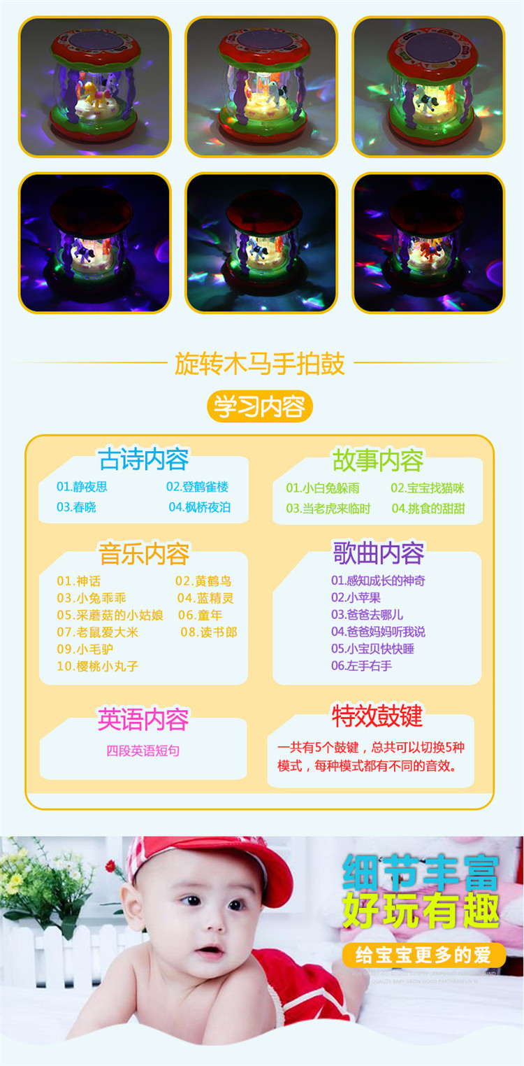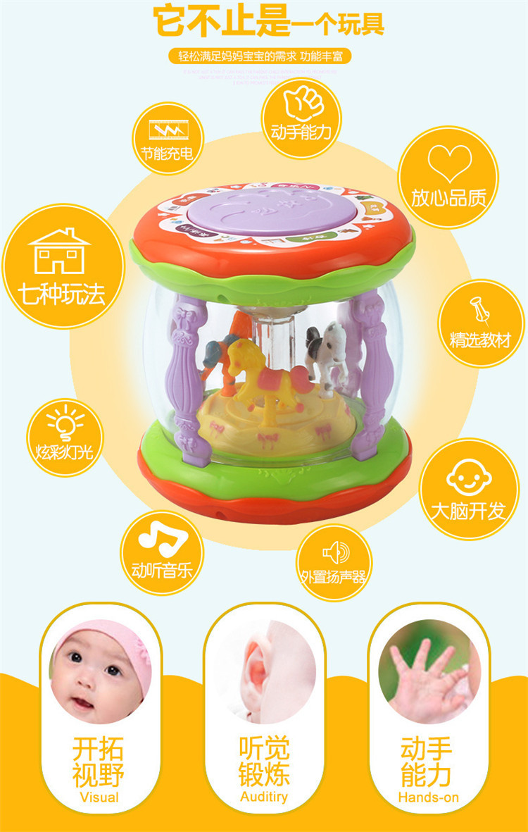 어린이 장난감 팻 드럼 아기 교육 조기 교육 드럼 다기능 소형 회전 목마 음악 드럼 소리와 빛 손 팻 드럼