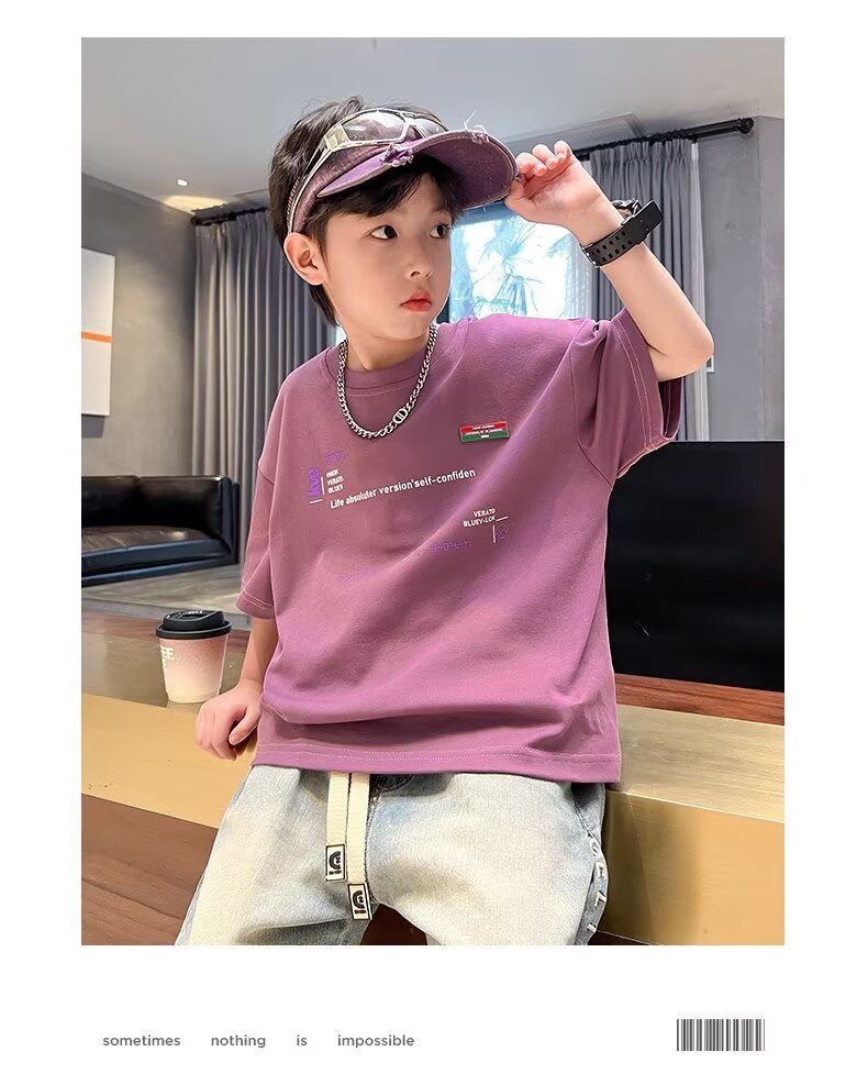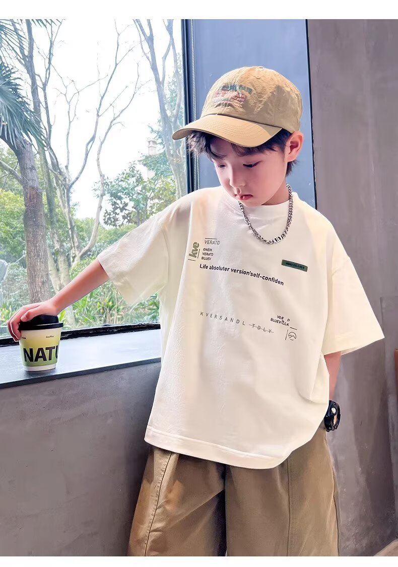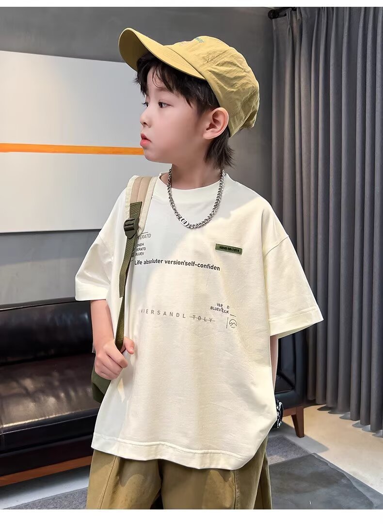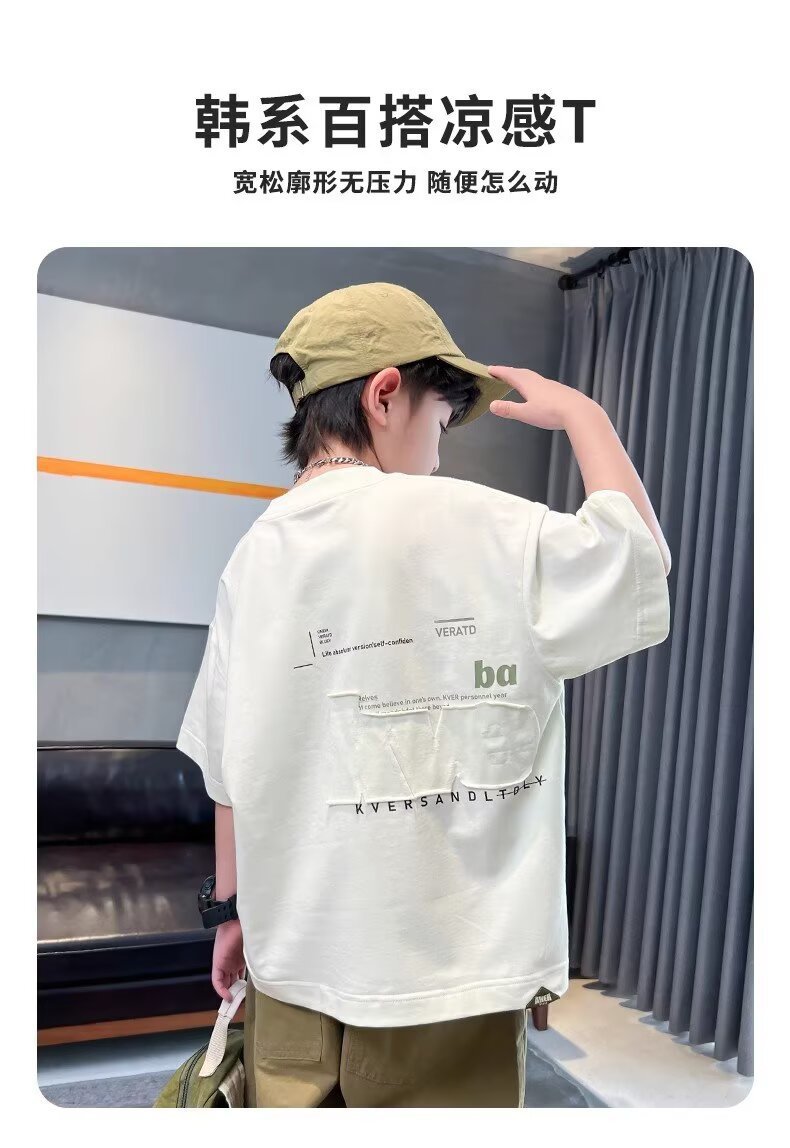 남학생 반소매 티셔츠 여름 2025 한국식 신식 어린이 여름 탑 소년 중 · 대형 어린이 오리지널 반소매 트렌디 티셔츠