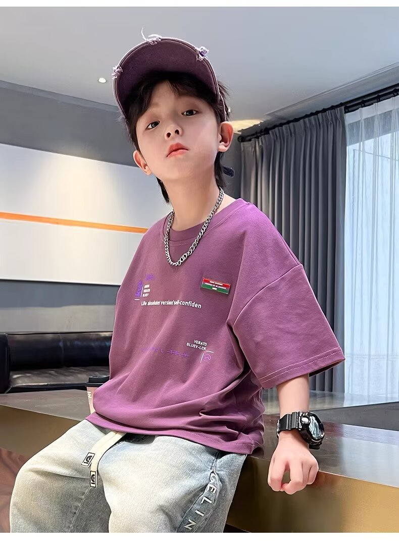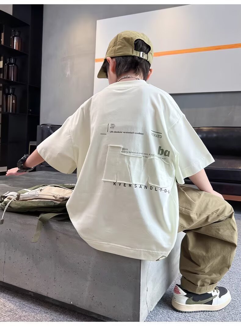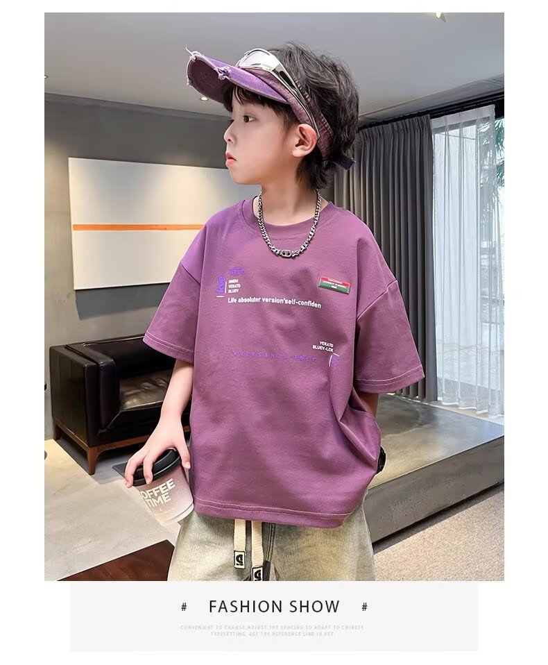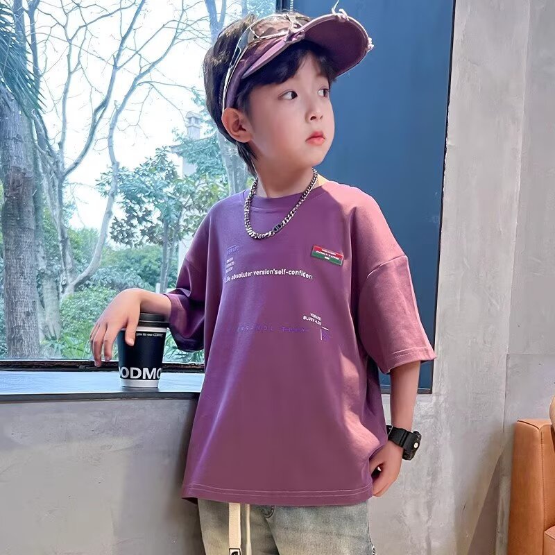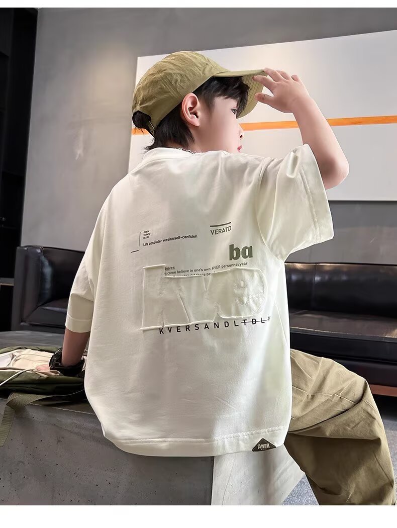 남학생 반소매 티셔츠 여름 2025 한국식 신식 어린이 여름 탑 소년 중 · 대형 어린이 오리지널 반소매 트렌디 티셔츠