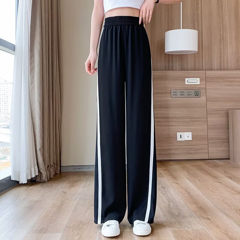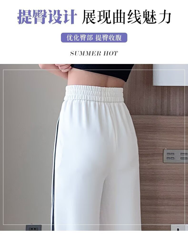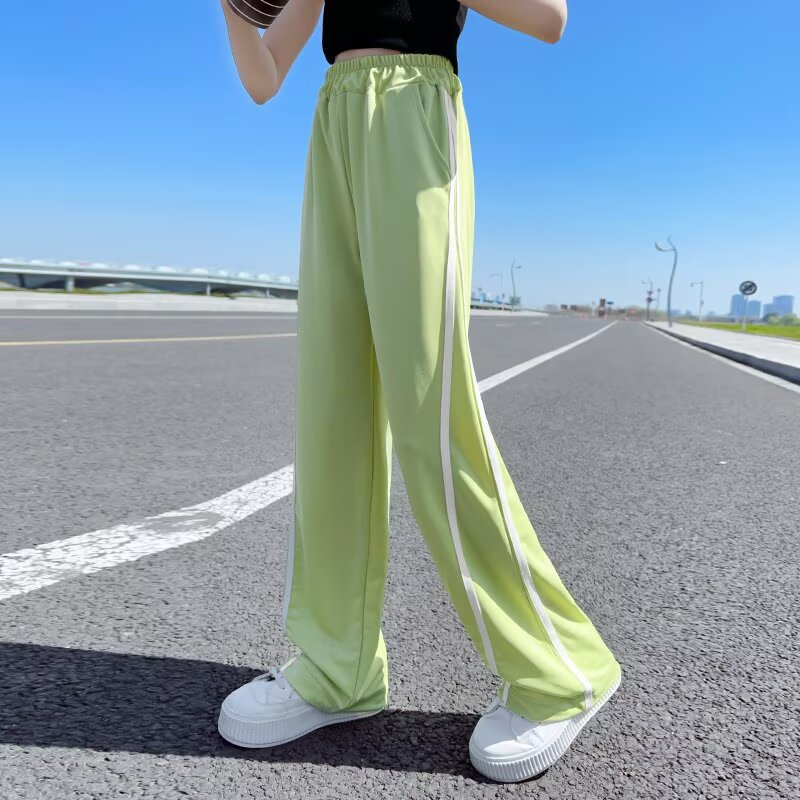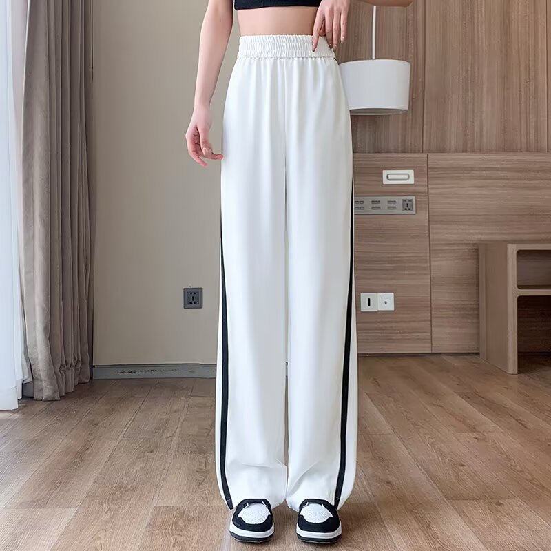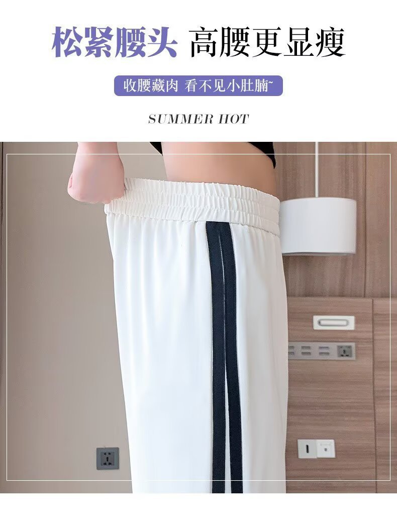 아이스 실크 세트 바지 여자 여름 2025 새로운 중학교 고등학생 얇은 높은 허리 캐주얼 바닥 바지 여성