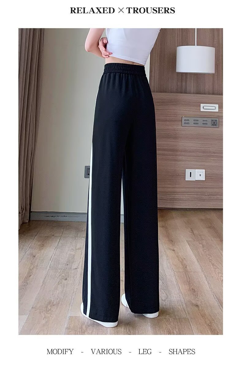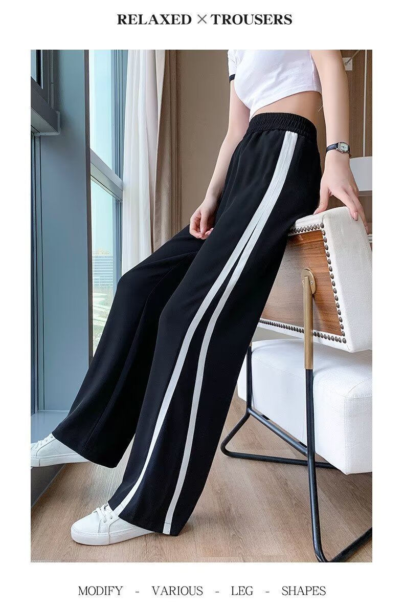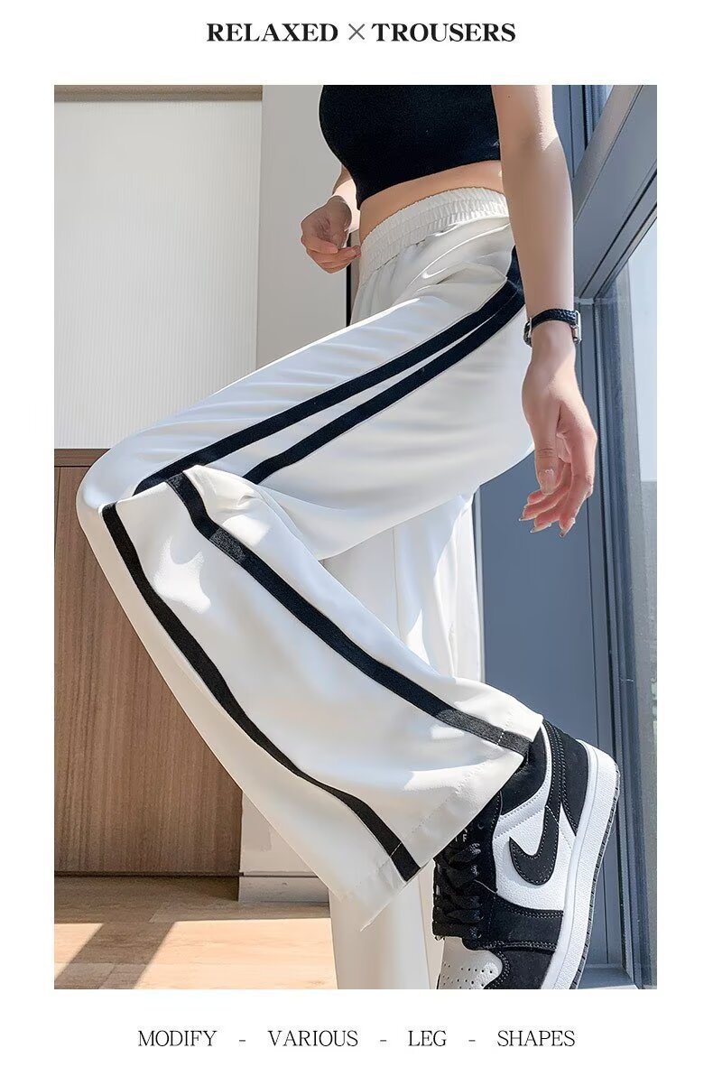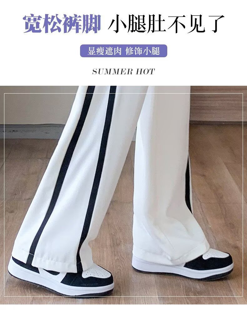 아이스 실크 세트 바지 여자 여름 2025 새로운 중학교 고등학생 얇은 높은 허리 캐주얼 바닥 바지 여성