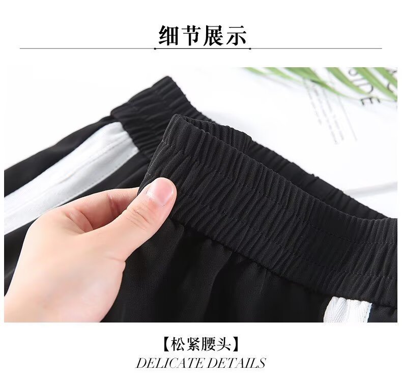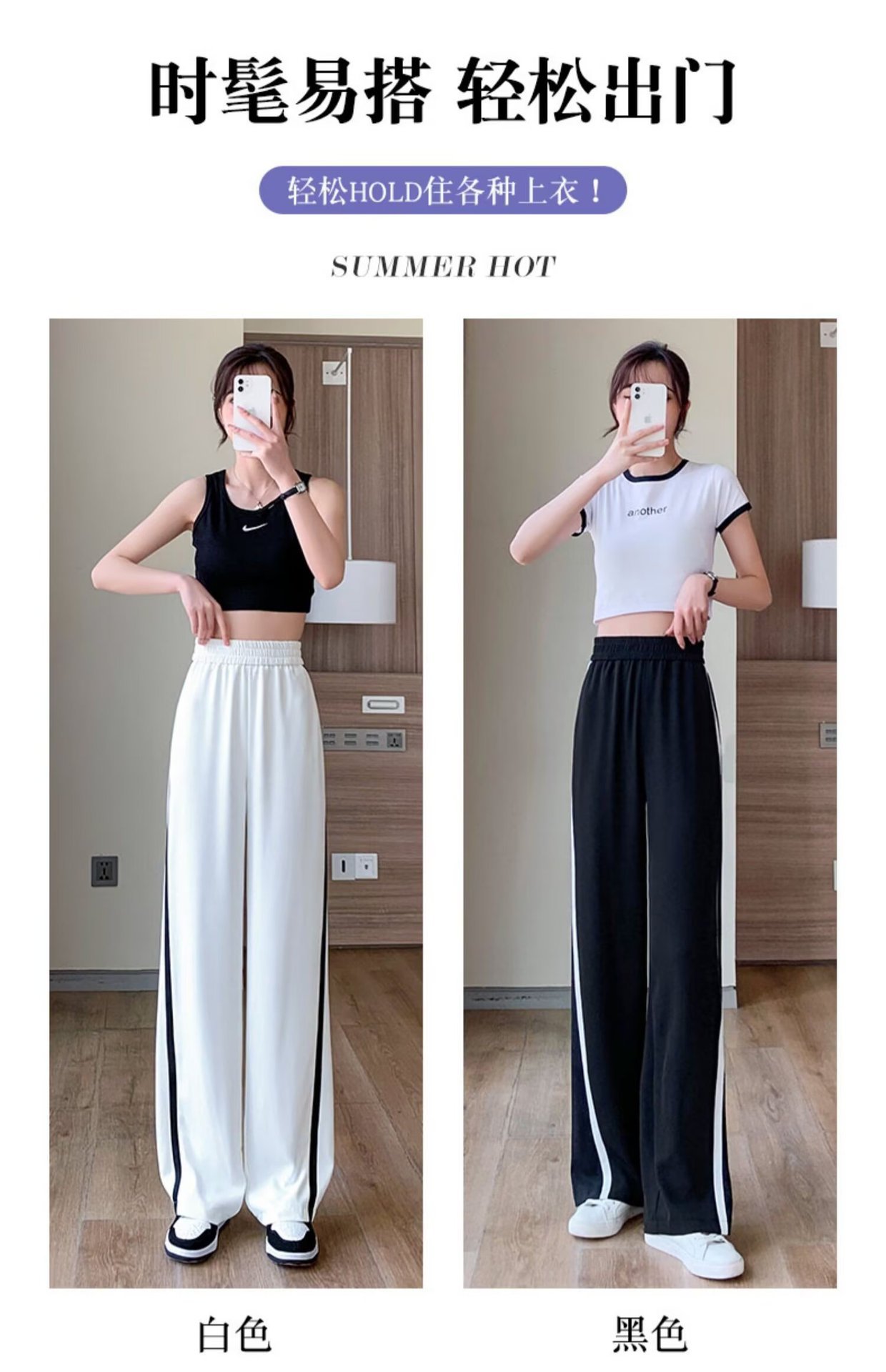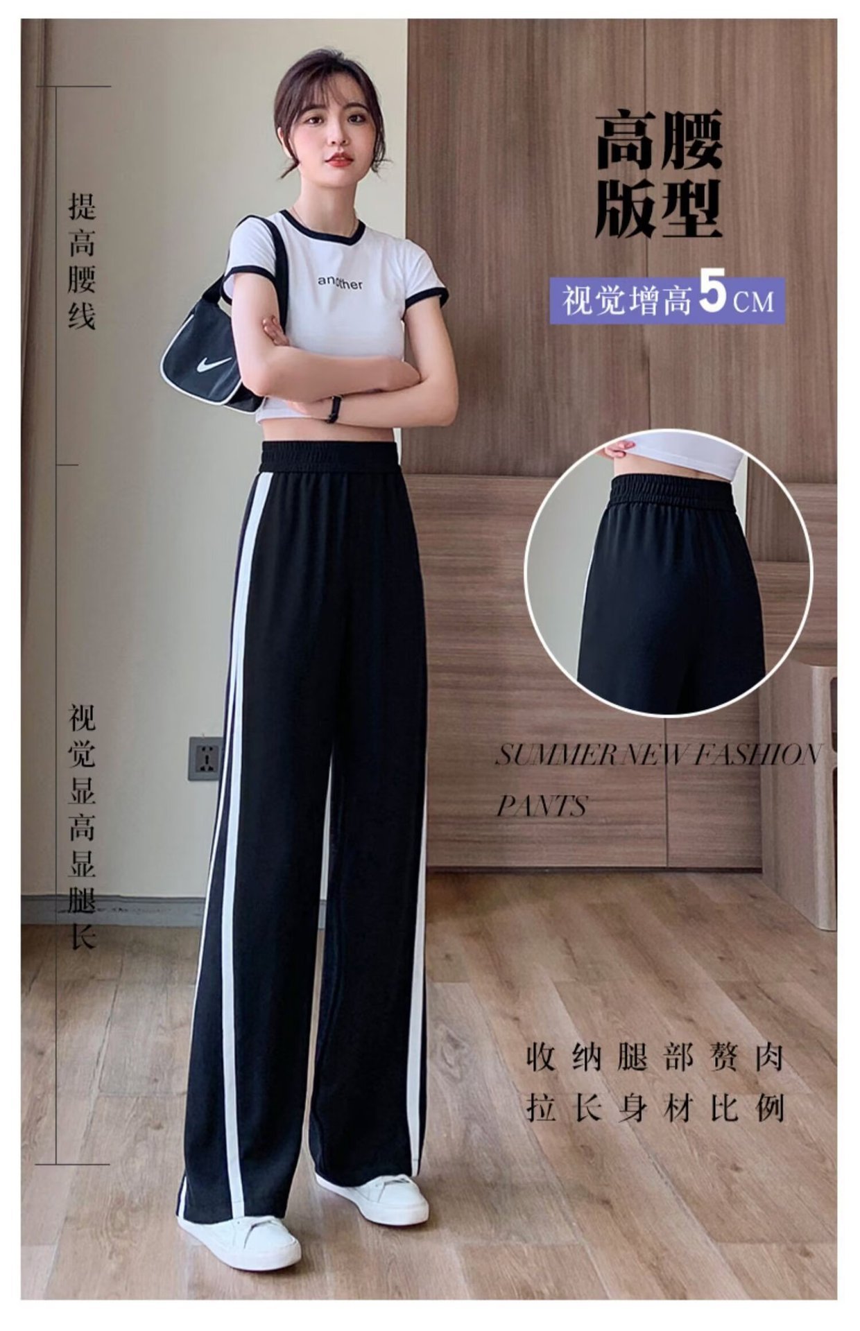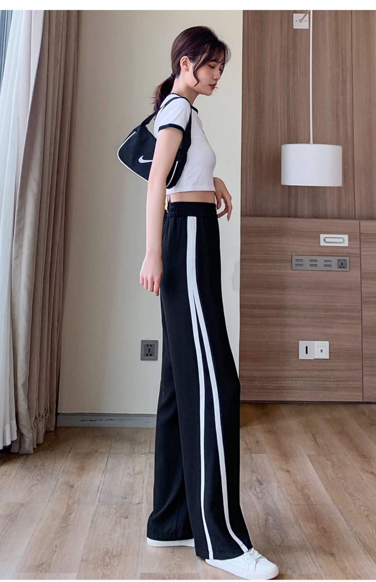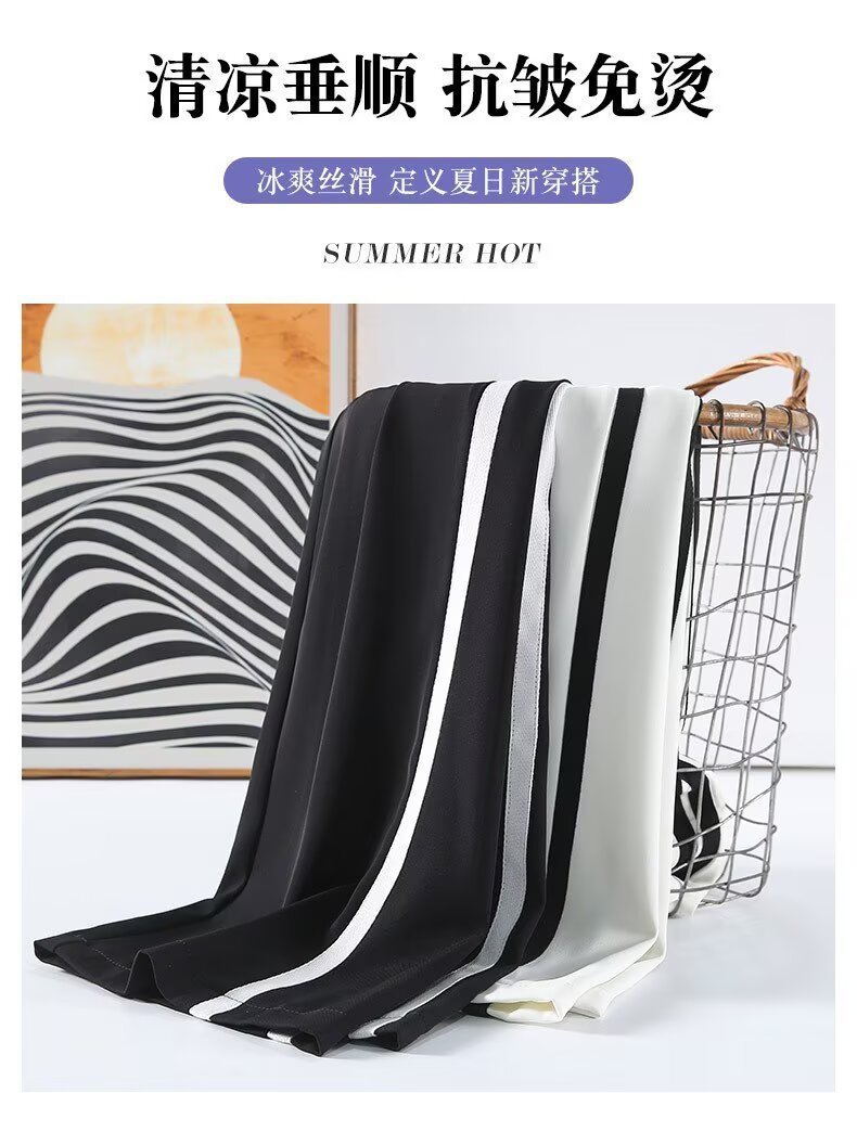 아이스 실크 세트 바지 여자 여름 2025 새로운 중학교 고등학생 얇은 높은 허리 캐주얼 바닥 바지 여성스토어 가기