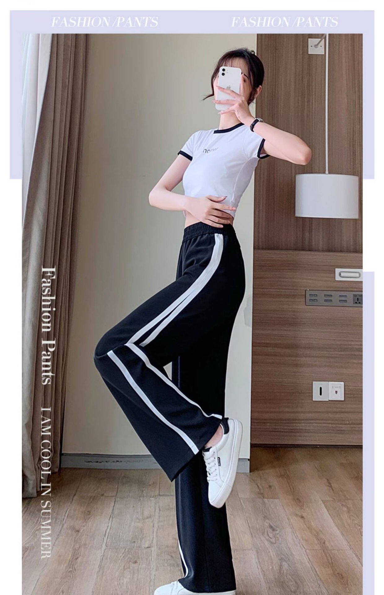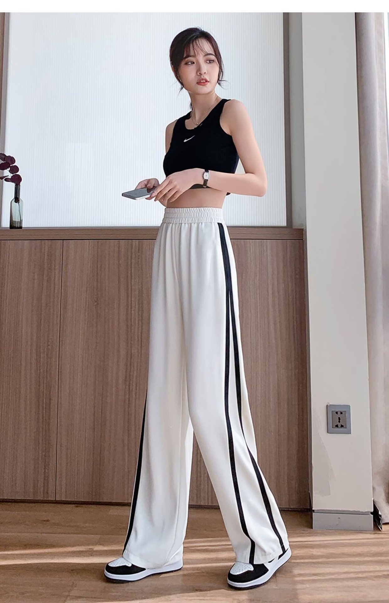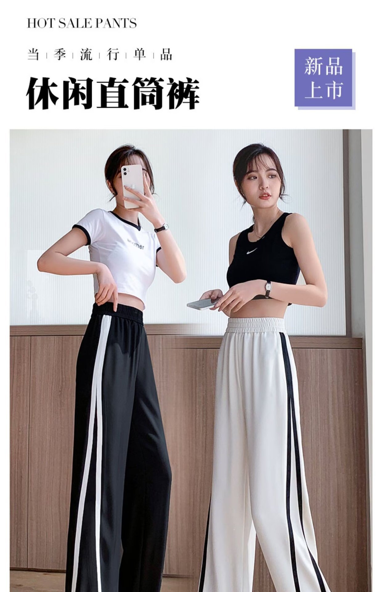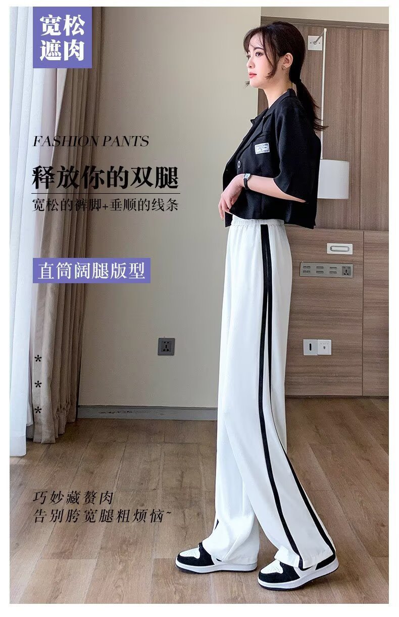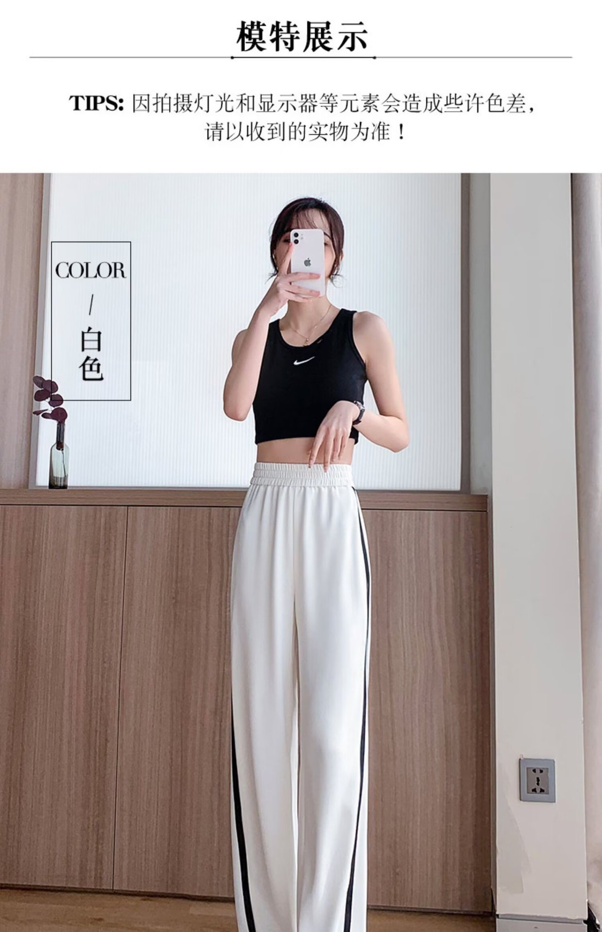 아이스 실크 세트 바지 여자 여름 2025 새로운 중학교 고등학생 얇은 높은 허리 캐주얼 바닥 바지 여성스토어 가기
