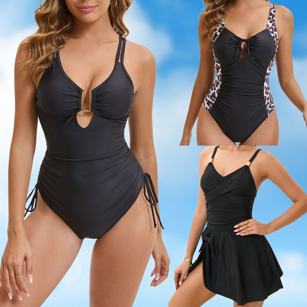2025 Amazon 유럽과 미국의 U 넥 원피스 수영복 케이크 스커트 민소매 솔리드 컬러 새 드레스 수영복 세트스토어 가기