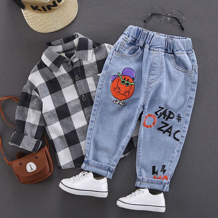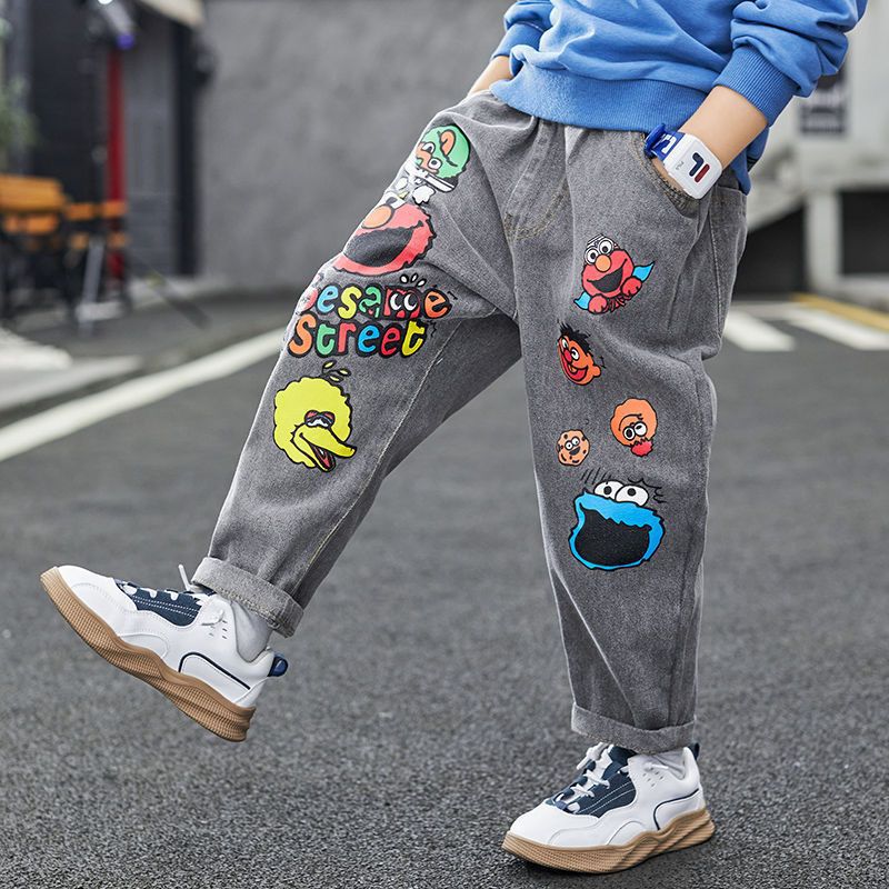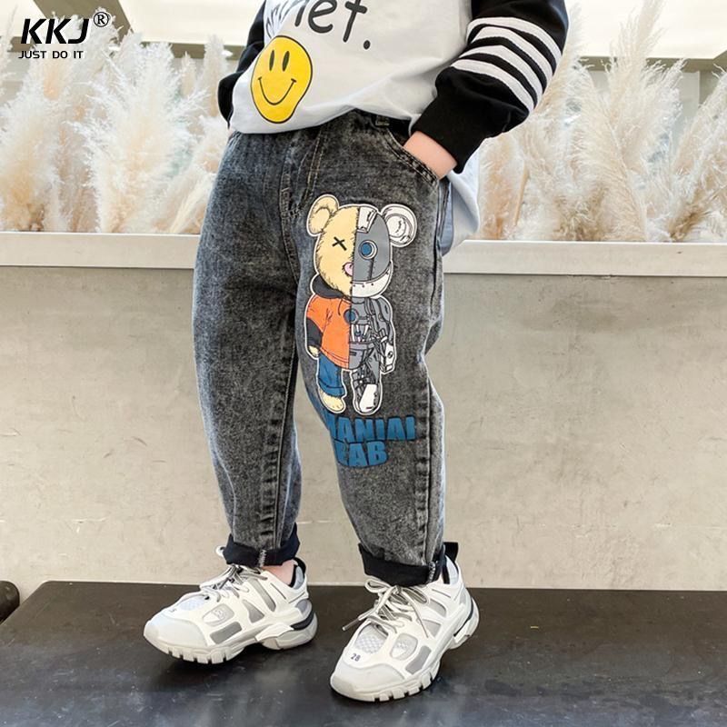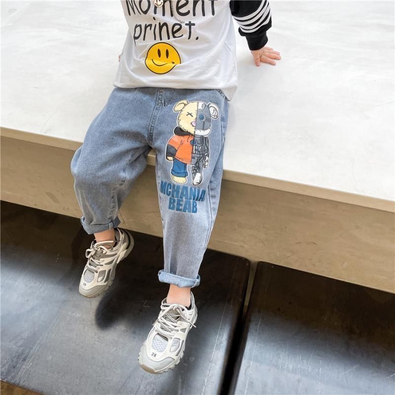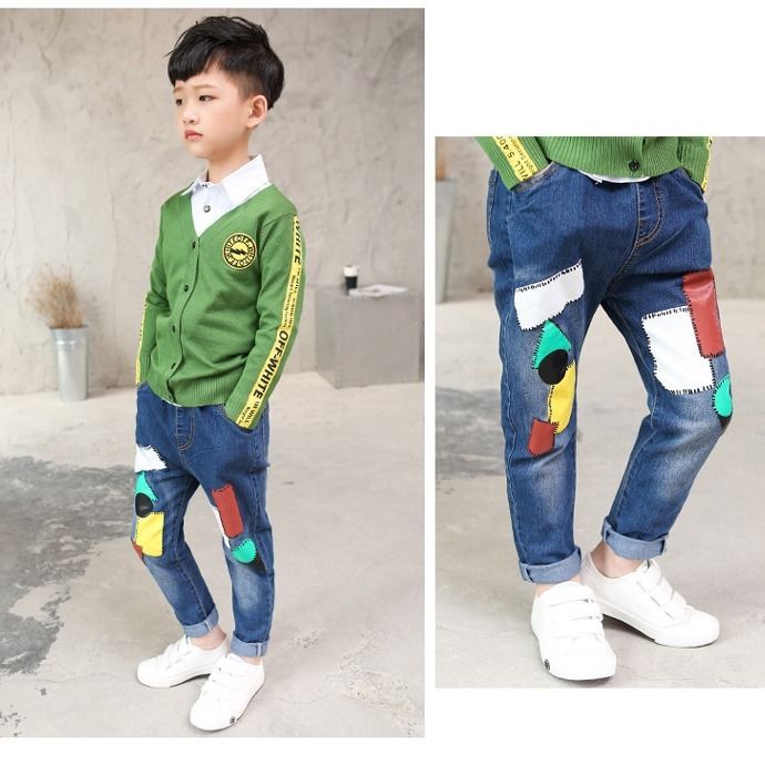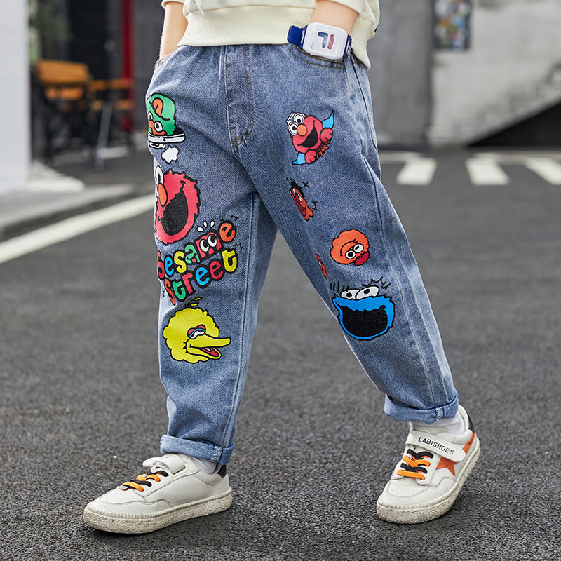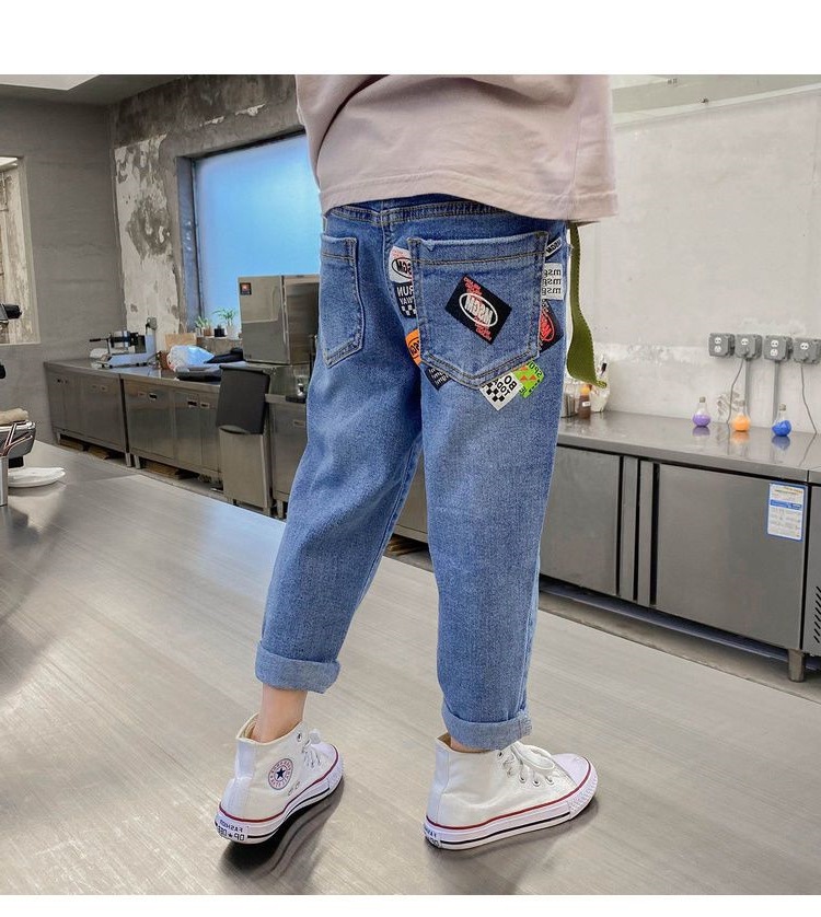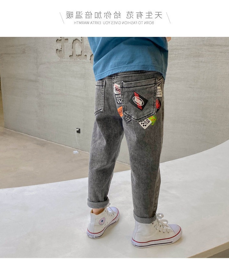 2021 년 새 봄 가을 소년 데님 바지 아동복 한국 캐주얼 바지 봄 청바지 트렌디스토어 가기