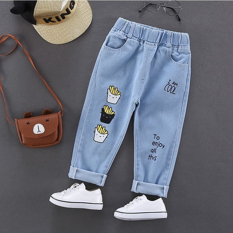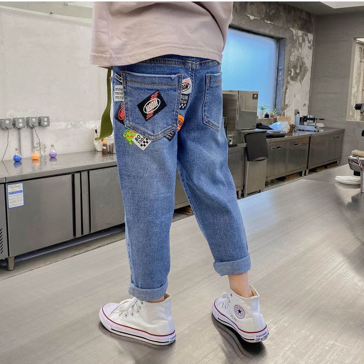 2021 년 새 봄 가을 소년 데님 바지 아동복 한국 캐주얼 바지 봄 청바지 트렌디
