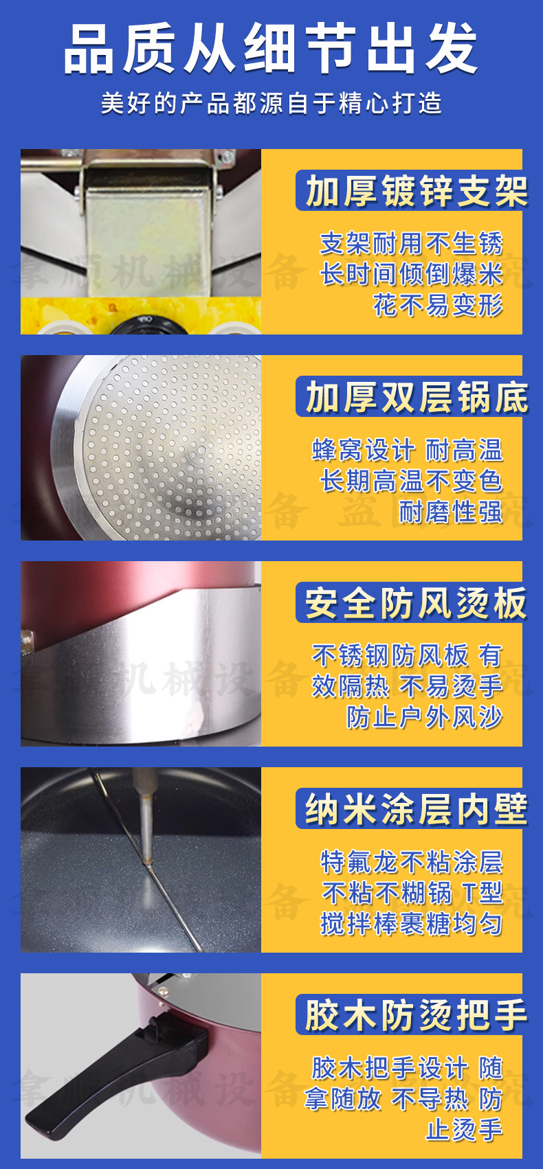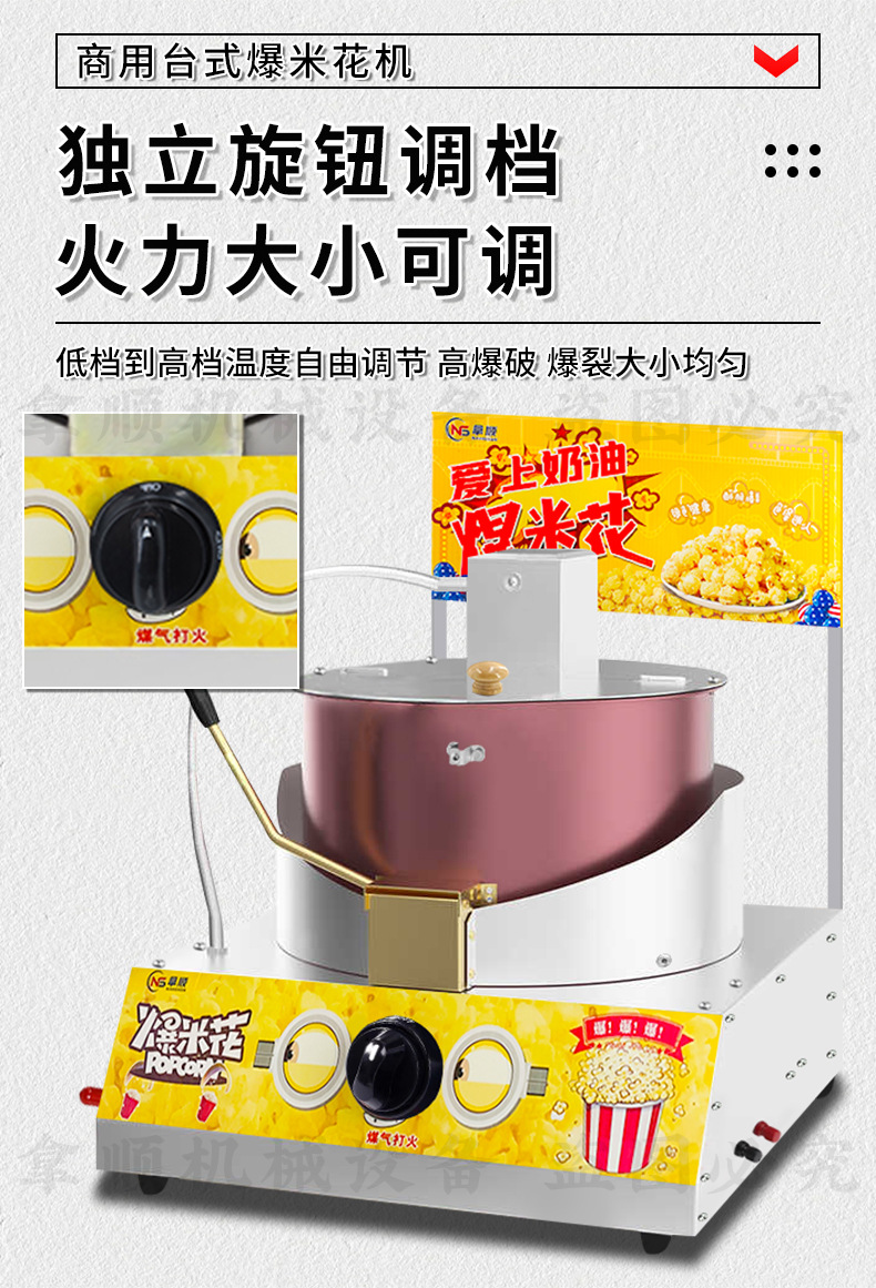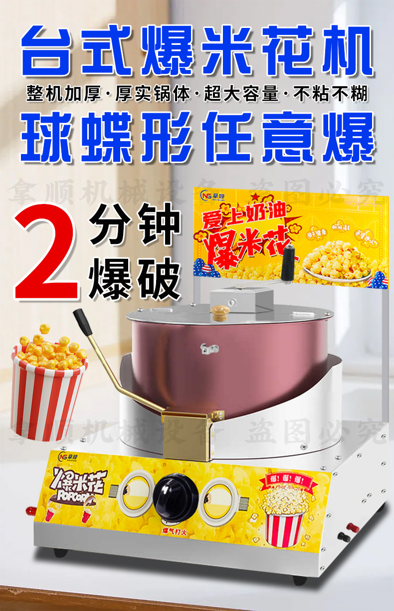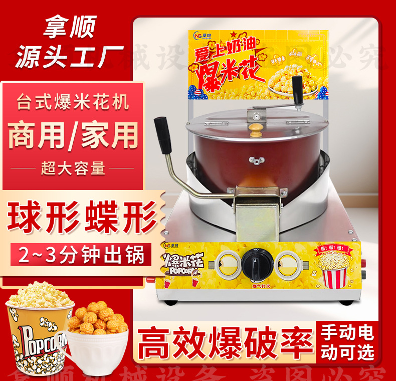 팝콘 기계 가스 탁상 상업용 스톨 핸드 크랭크 완전 자동 구형 나비 팝콘 냄비 기계
