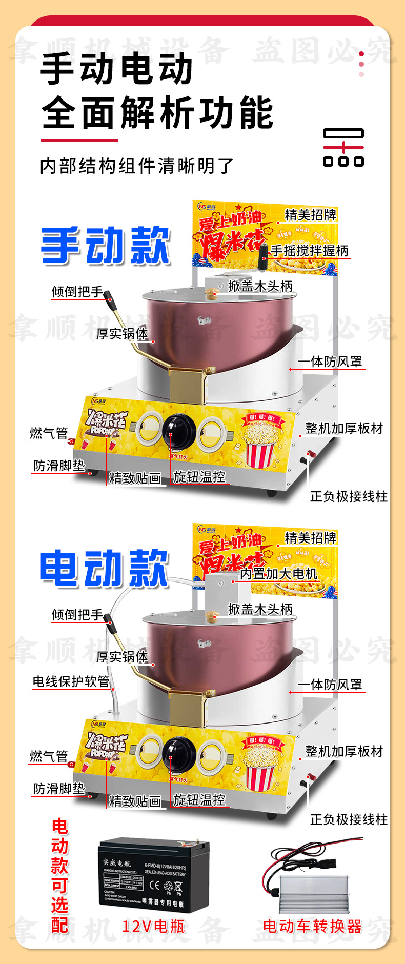 • 데스크탑 전기 팝콘 기계(업그레이드된 화염 차단 보호 모델) + 12V 배터리