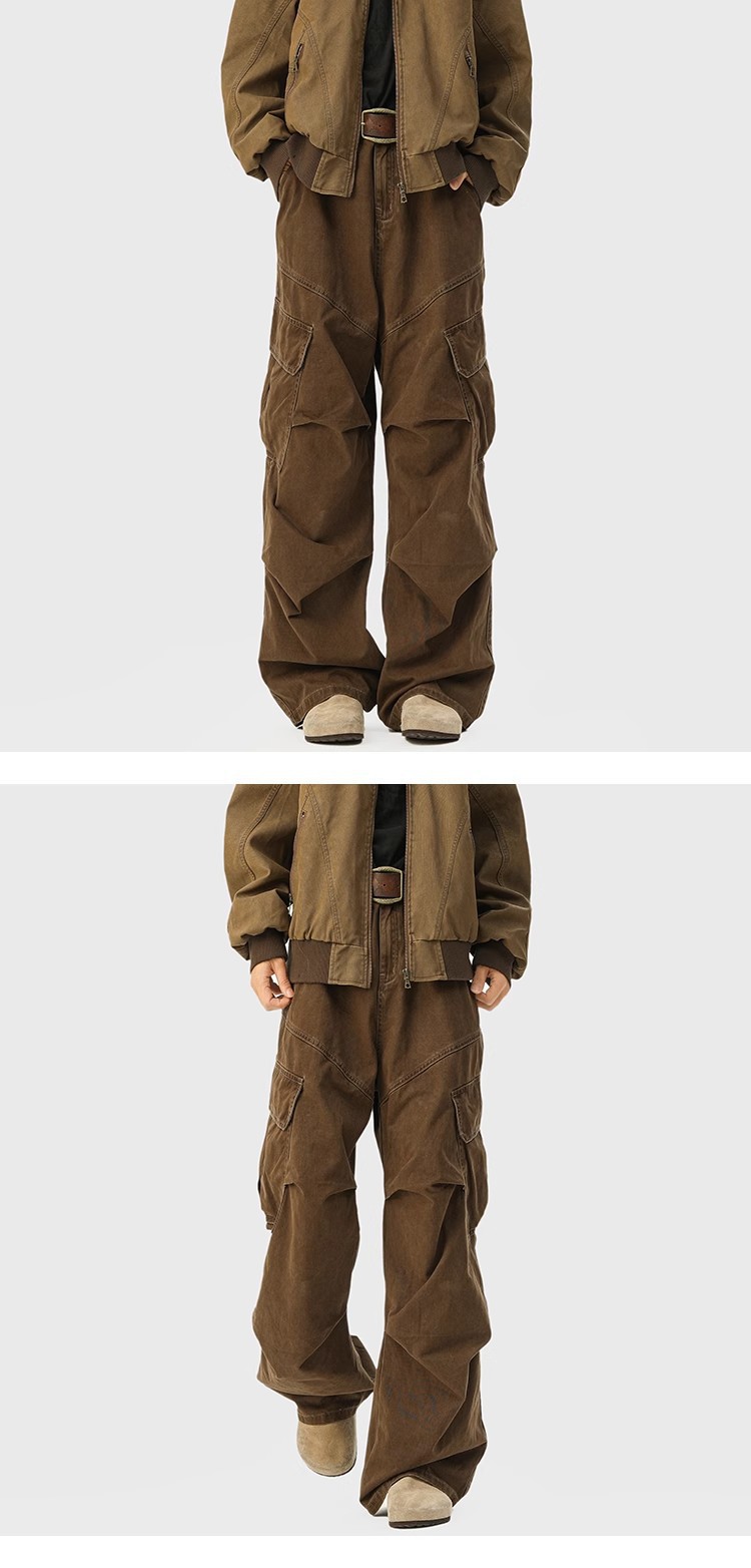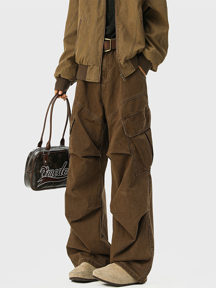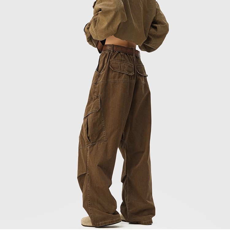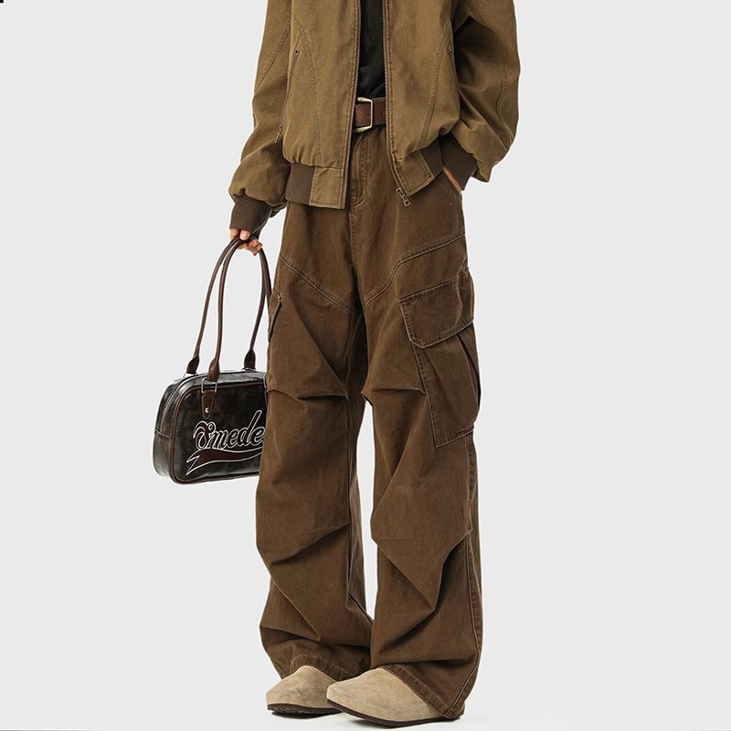 2025 뉴 아메리칸 레트로 멀티 포켓 오버올 남성 가을, 겨울 메일라드 커피 컬러 팬츠 마이크로 플레어 청바지스토어 가기