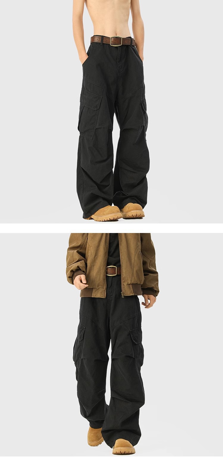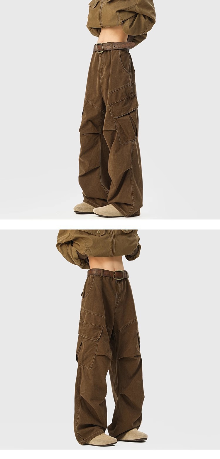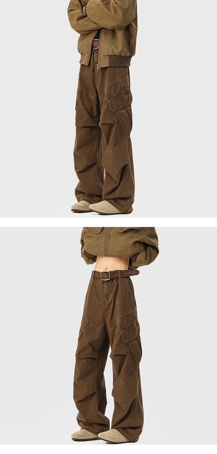 2025 뉴 아메리칸 레트로 멀티 포켓 오버올 남성 가을, 겨울 메일라드 커피 컬러 팬츠 마이크로 플레어 청바지스토어 가기