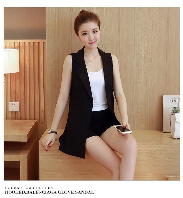 한국식 여름 새 조끼 여자 플러스 사이즈 올매치 슬림 룩 롱 카디건 세트 조끼 민소매 조끼 재킷스토어 가기