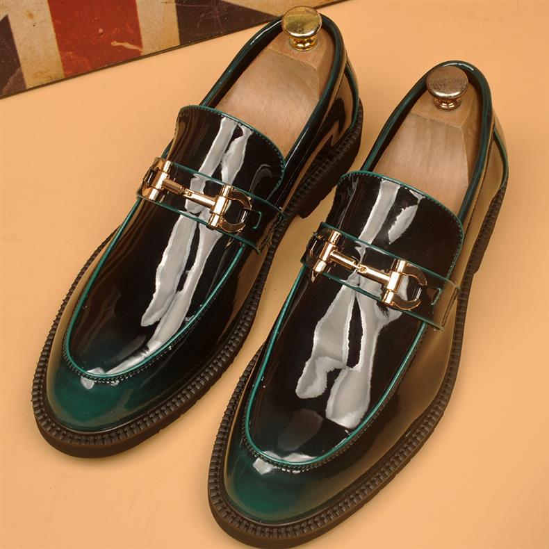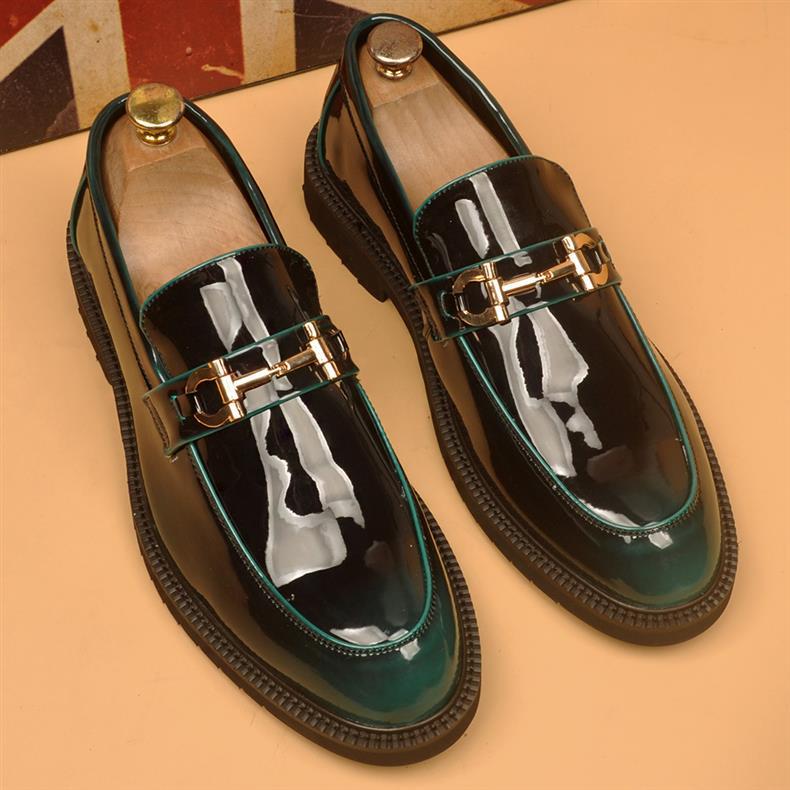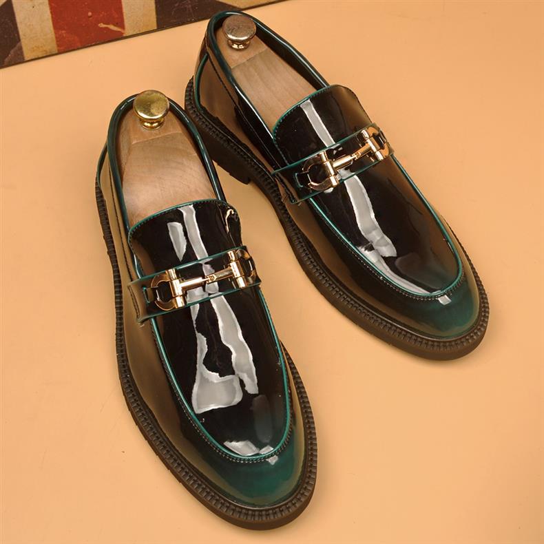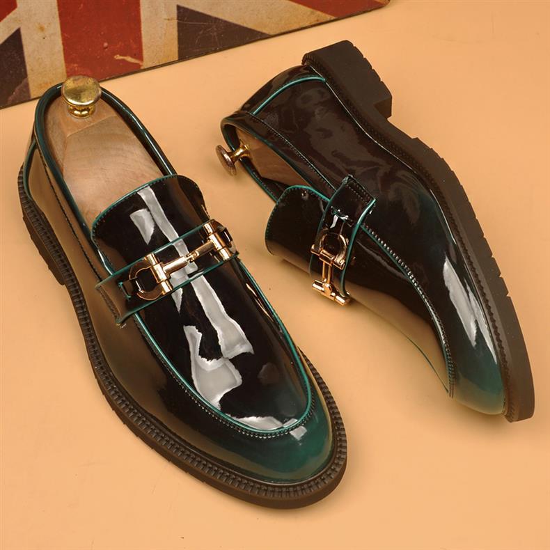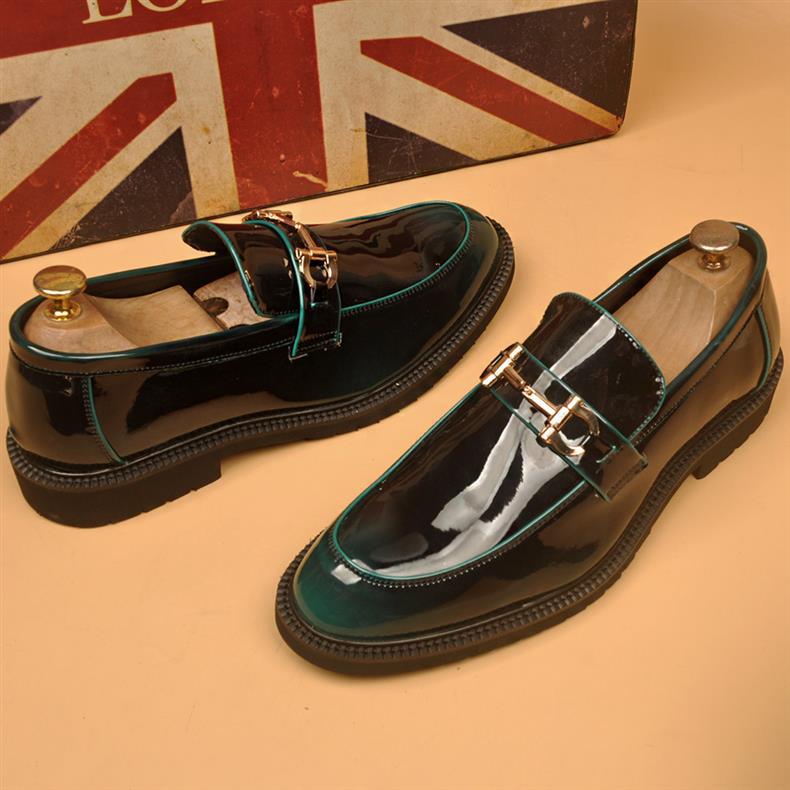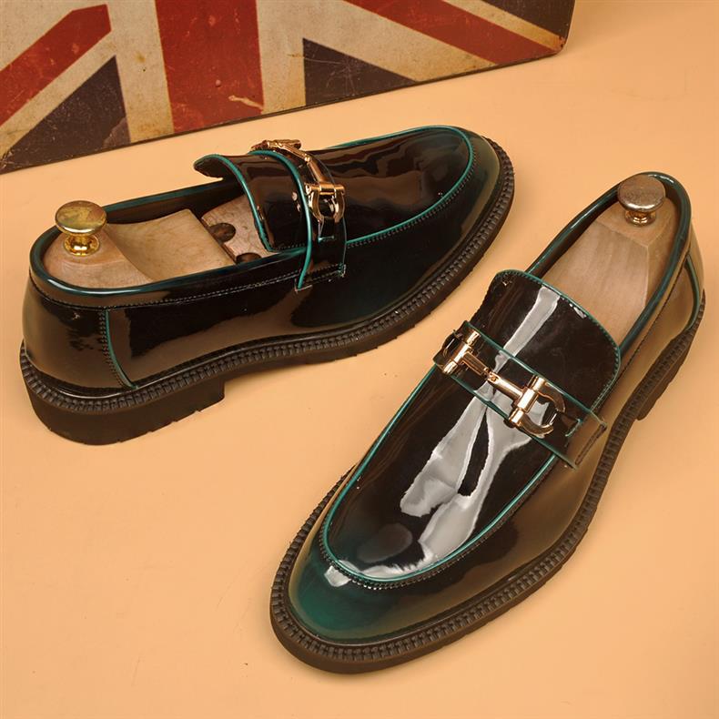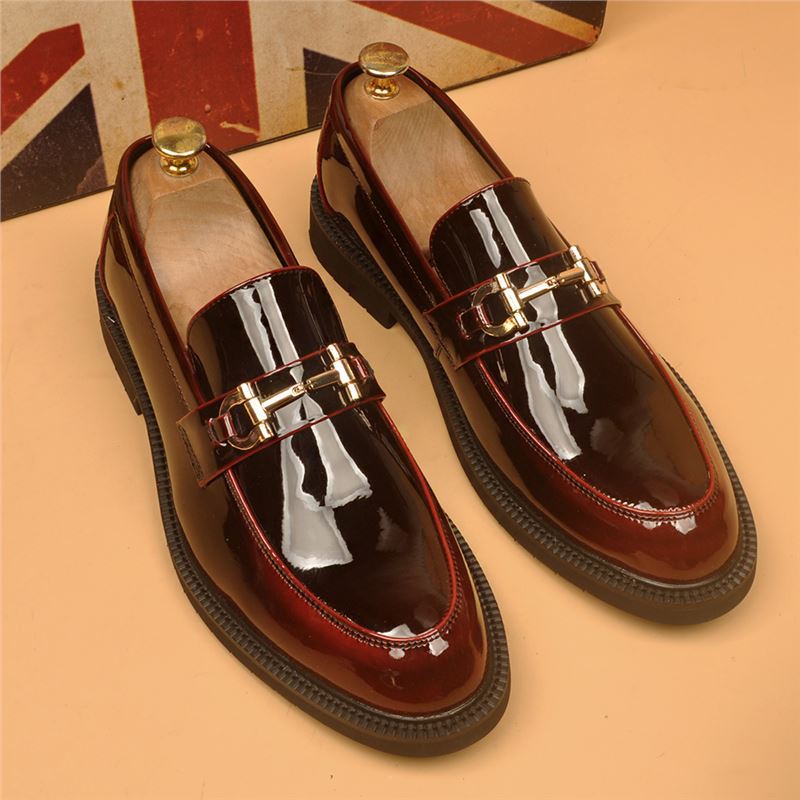 2025 새로운 밝은 가죽 비즈니스 정장 가죽 신발 남성용 슬립 온 그라데이션 컬러 패션 캐주얼 가죽 신발 남성용 다용도 결혼식 신발