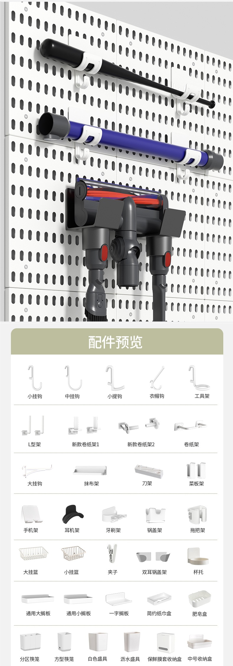 • 흰색 작은 리프팅 후크 7개(저희 매장의 천공 보드에만 사용됨)