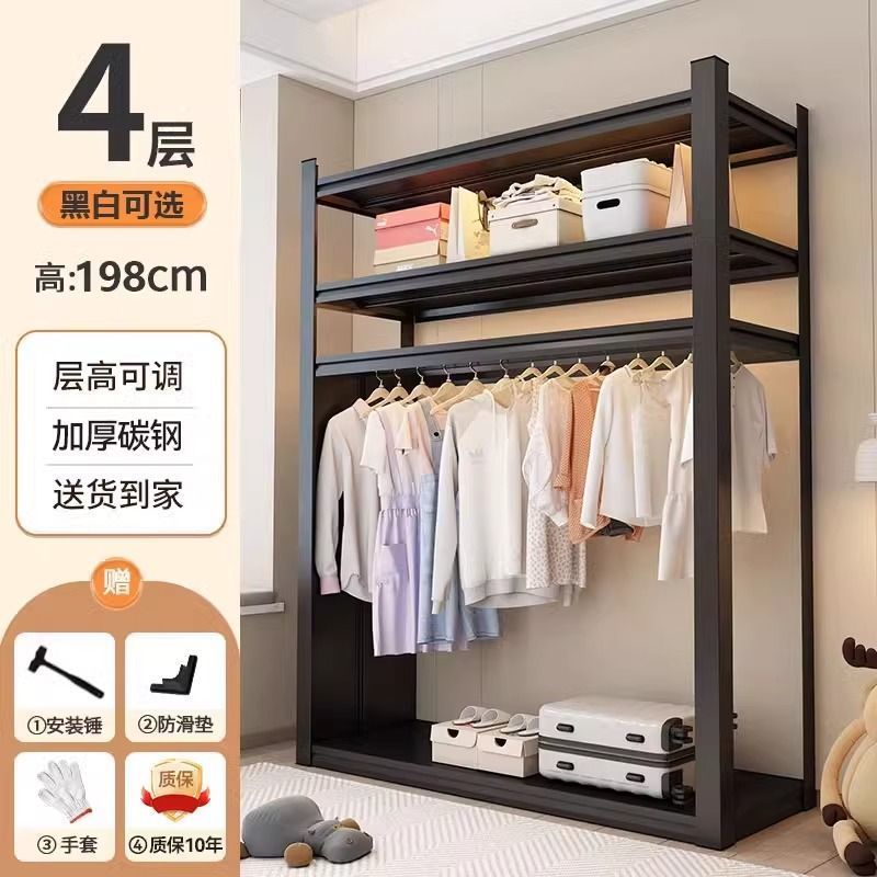 새로운 코트 랙 렌탈 하우스 기숙사 건조 옷걸이 강철 선반 옷장 간단한 다층 바닥 보관 랙스토어 가기