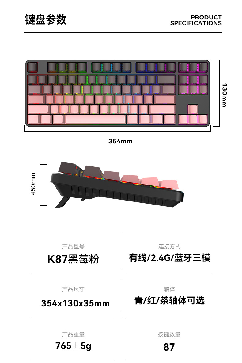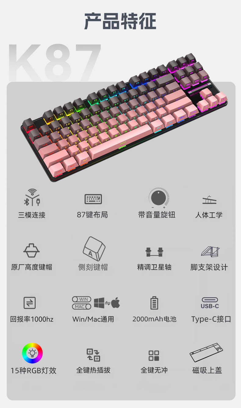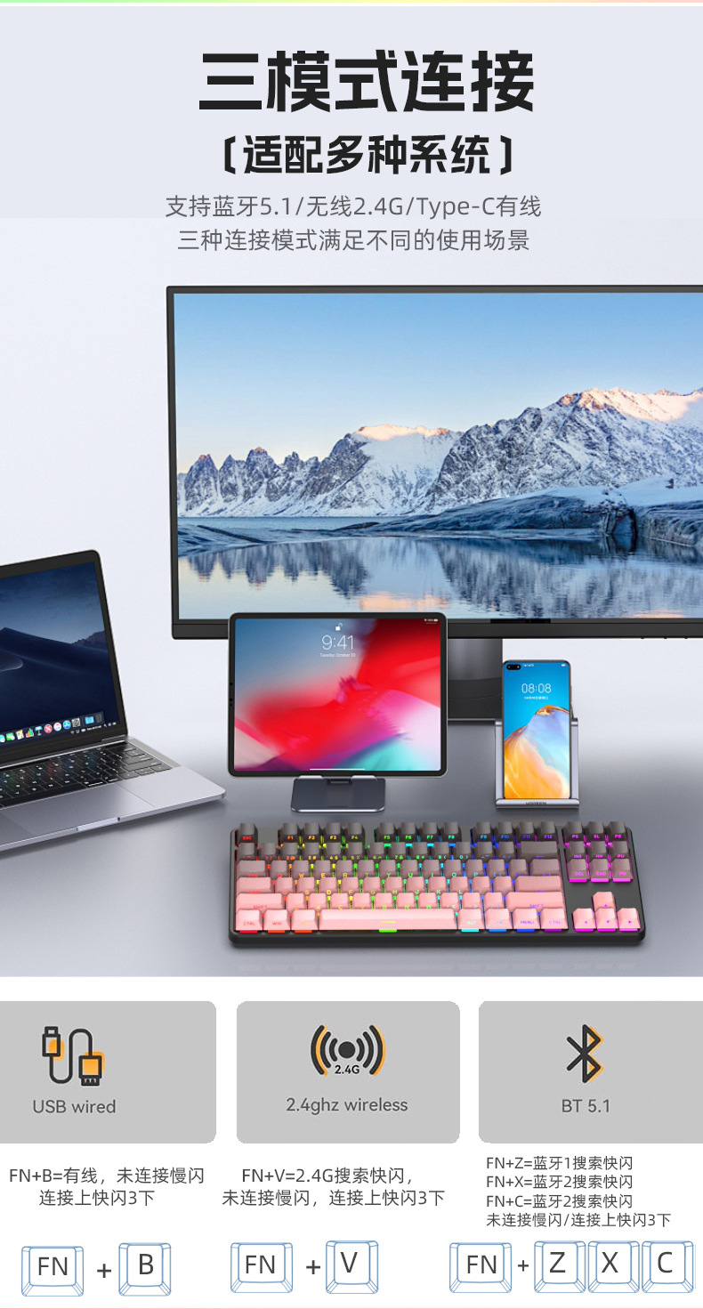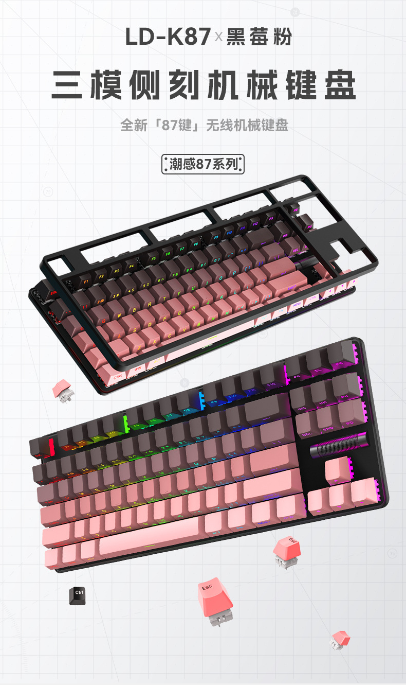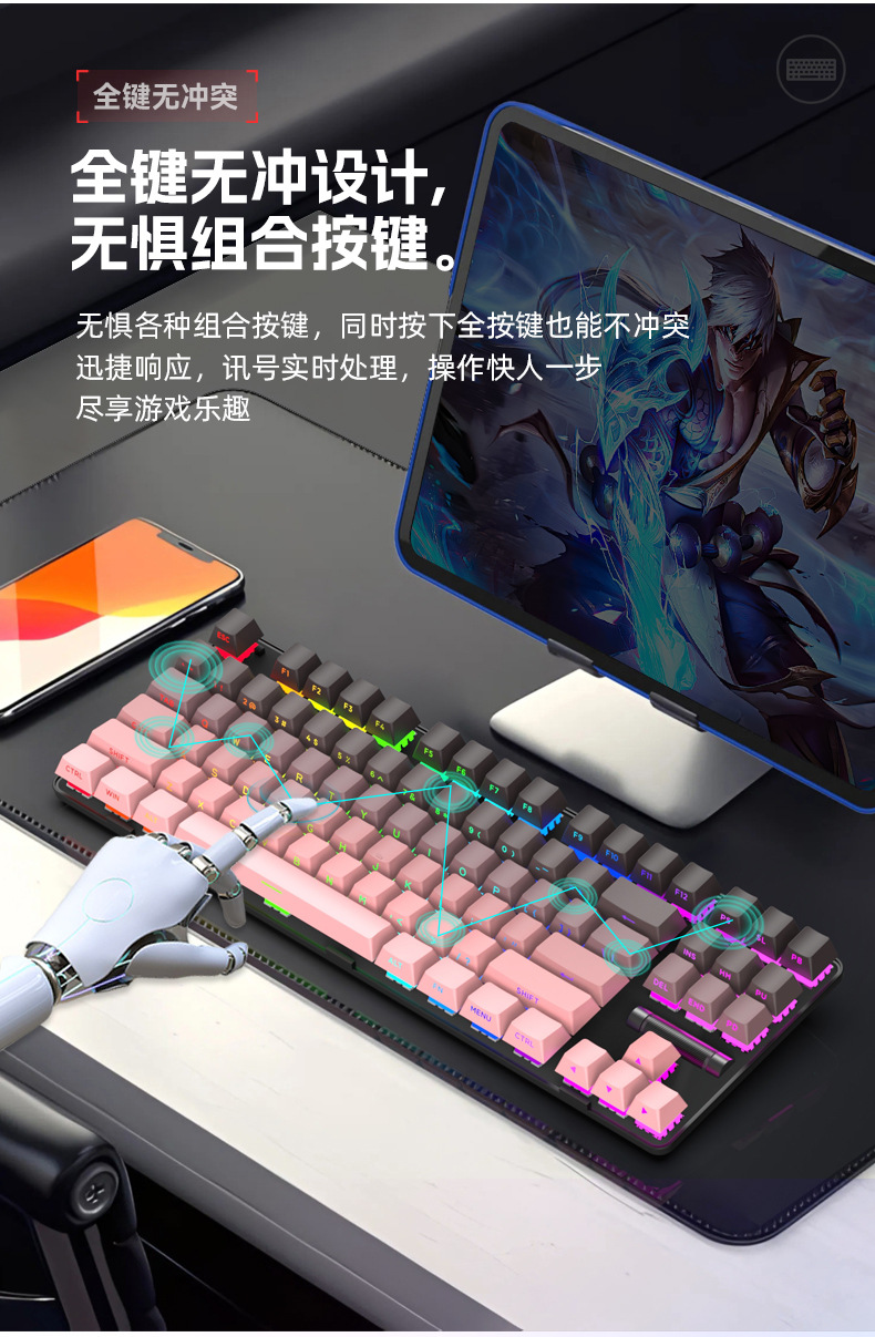 공장 재고 측면 새겨진 기계 키보드 K87 플러그인 3 모드 빨간 축 전자 경쟁 게임 데스크탑 노트북 유니버설