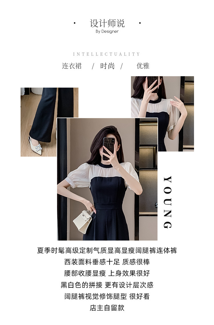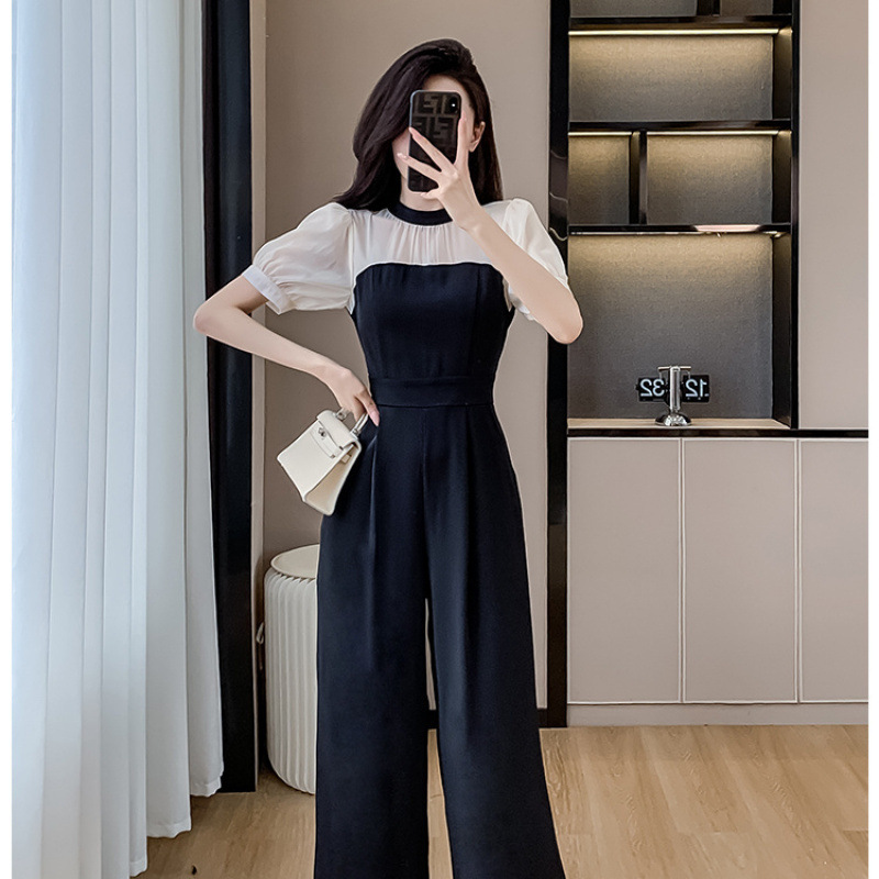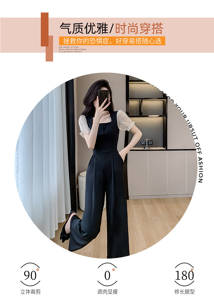 유럽식 고급 블랙 점프 수트 2024 세트 여름 새로운 여성 기질 사교계 세트 넓은 다리 점프 수트스토어 가기